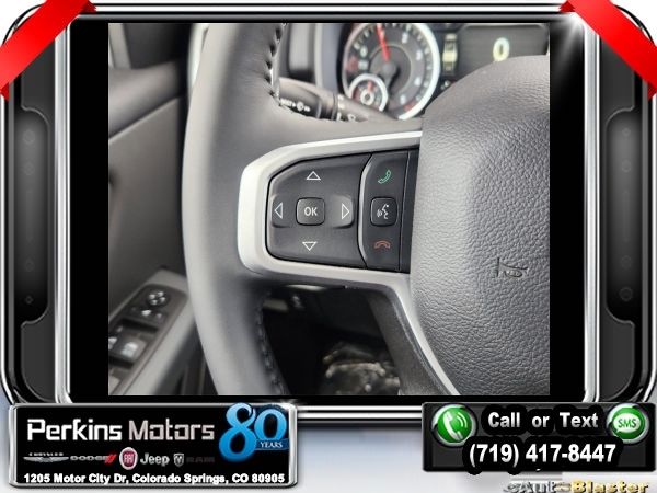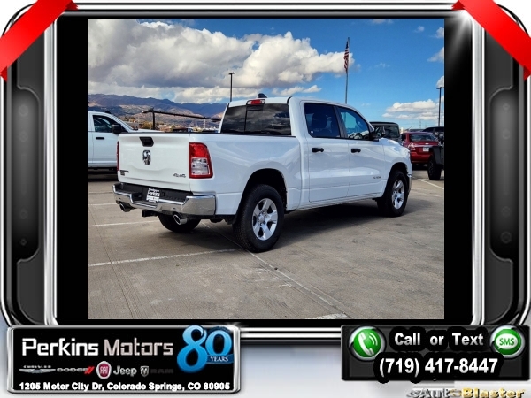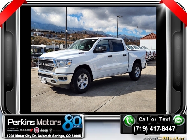 Factory MSRP: $61,630 $10,070 off MSRP! Priced below KBB Fair Purchase Price! Bright White Clearcoat 2023 Ram 1500 Big Horn/Lone Star 4WD 8-Speed Automatic EcoDiesel 3.0L V6<br><br>Check us out at www.perkinsmotors.com to see our specials! Since opening our doors in 1944, we’ve been proud to serve Colorado Springs, CO, and the surrounding areas of Pueblo, Castle Rock and Denver, CO. Throughout this time of being family owned for 80 years, we’ve maintained a firm commitment to our customers: to offer a wide selection of New Chrysler, Dodge, Fiat, Jeep, and Ram vehicles and quality pre-owned vehicles, and provide a quick, no-hassle car-buying process that ensures everyone drives off the lot satisfied with their purchase.<br><br>Big Horn Level B Equipment Group (115V Auxiliary Power Outlet, 12 Touchscreen Display, 2nd Row In Floor Storage Bins, 400W Inverter, 4G LTE Wi-Fi Hot Spot, 9 Amplified Speakers w/Subwoofer, Air Conditioning ATC w/Dual Zone Control, All R1 High Radios, All Radio Equipped Vehicles, Apple CarPlay, Auto-Dimming Exterior Driver Mirror, Auto-Dimming Rear-View Mirror, Black Exterior Mirrors, Black Premium Power Mirrors, Class IV Receiver Hitch, Cluster 7.0 TFT Color Display, Connected Travel & Traffic Services, Connectivity - US/Canada, Convex Wide-Angle Exterior Mirror Insert, Disassociated Touchscreen Display, Exterior Mirrors Courtesy Lamps, Exterior Mirrors w/Heating Element, Exterior Mirrors w/Supplemental Signals, For Details, Visit DriveUconnect.com, For More Info, Call 800-643-2112, Front Fog Lamps, Global Telematics Box Module (TBM), Glove Box Lamp, Google Android Auto, GPS Antenna Input, GPS Navigation, HD Radio, Heated Front Seats, Heated Steering Wheel, Integrated Center Stack Radio, Integrated Voice Command w/Bluetooth, LED Footwell Lighting, Media Hub w/2 Charge Only USBs, ParkSense Front/Rear Park Assist w/Stop, Power 2-Way Driver Lumbar Adjust, Power 8-Way Driver Seat, Power Adjustable Pedals, Power-Folding Mirrors, Radio: Uconnect 5 Nav w/12.0 Display, Rear Dome w/On/Off Switch Lamp, Rear Power Sliding Window, Rear Window Defroster, Remote Start System, Security Alarm, SiriusXM Radio Service, SiriusXM Satellite Radio, SiriusXM w/360L, Sun Visors w/Illuminated Vanity Mirrors, Universal Garage Door Opener, and USB Host Flip), 3 Rear Seat Head Restraints, 3.21 Rear Axle Ratio, 4 Way Front Headrests, 4-Wheel Disc Brakes, 48V Belt Starter Generator, 6 Speakers, ABS brakes, Air Conditioning, Alloy wheels, AM/FM radio, Big Horn Badge, Brake assist, Bumpers: chrome, Cloth Bench Seat, Compass, Cruise Control, Delay-off headlights, Driver door bin, Dual front impact airbags, Dual front side impact airbags, Electronic Stability Control, Emergency communication system: SiriusXM Guardian, Front anti-roll bar, Front Center Armrest w/Storage, Front License Plate Bracket, Front reading lights, Front Seat Back Map Pockets, Front wheel independent suspension, Fully automatic headlights, Heated door mirrors, Illuminated entry, Leather steering wheel, Low tire pressure warning, Manufacturer's Statement of Origin, MOPAR Front & Rear Rubber Floor Mats, Occupant sensing airbag, Outside temperature display, Overhead airbag, Overhead console, Panic alarm, ParkView Rear Back-Up Camera, Passenger door bin, Passenger vanity mirror, Power door mirrors, Power steering, Power windows, Radio data system, Radio: Uconnect 3 w/5 Display, RAM Grille Badge - Chrome, Rear 60/40 Folding Seat, Rear anti-roll bar, Rear seat center armrest, Rear step bumper, Rear Wheelhouse Liners, Remote keyless entry, Split folding rear seat, Steering wheel mounted audio controls, Tachometer, Telescoping steering wheel, Tilt steering wheel, Traction control, Trailer Brake Control, Trip computer, Variably intermittent wipers, Voltmeter, and Wheels: 18 x 8 Cast-Aluminum PainteD.<br><br>21/29 City/Highway MPG