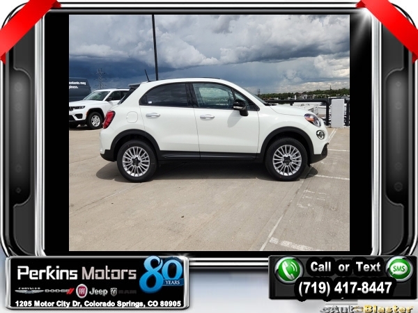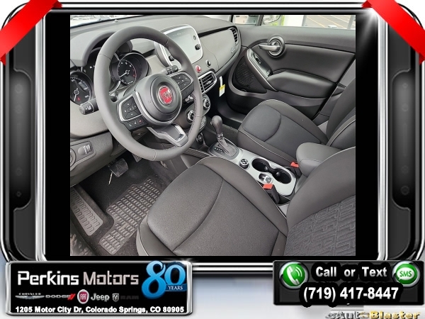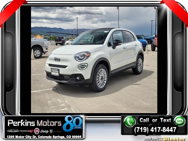 Factory MSRP: $32,305 $3,416 off MSRP! Priced below KBB Fair Purchase Price! Bianco Gelato (White Clearcoat) 2023 Fiat 500X Pop AWD 9-Speed 948TE Automatic 1.3L I4<br><br>Check us out at www.perkinsmotors.com to see our specials! Since opening our doors in 1944, we’ve been proud to serve Colorado Springs, CO, and the surrounding areas of Pueblo, Castle Rock and Denver, CO. Throughout this time of being family owned for 80 years, we’ve maintained a firm commitment to our customers: to offer a wide selection of New Chrysler, Dodge, Fiat, Jeep, and Ram vehicles and quality pre-owned vehicles, and provide a quick, no-hassle car-buying process that ensures everyone drives off the lot satisfied with their purchase.<br><br>MOPAR All Weather Package - Plus (MOPAR Cargo Area Slush Mat, MOPAR Front & Rear Slush Mats, MOPAR Front Splash Guards w/o Logo, MOPAR Rear Splash Guards w/Logo, and MOPAR Wheel Locks), Quick Order Package 22A, 3.734 Final Drive Ratio, 4-Wheel Disc Brakes, 6 Speakers, ABS brakes, Air Conditioning, Al Fresco Top, Alloy wheels, AM/FM radio: SiriusXM, Anti-whiplash front head restraints, Auto-dimming Rear-View mirror, Black SoftTop, Brake assist, Bumpers: body-color, Compass, Cruise Control, Delay-off headlights, Driver door bin, Driver vanity mirror, Dual front impact airbags, Dual front side impact airbags, Electronic Stability Control, Four wheel independent suspension, Front anti-roll bar, Front Bucket Seats, Front Center Armrest, Front fog lights, Front reading lights, Fully automatic headlights, Heated door mirrors, Heated front seats, Illuminated entry, Knee airbag, Leather steering wheel, Low tire pressure warning, Manufacturer's Statement of Origin, Monogrammed Cloth Bucket Seats, Occupant sensing airbag, Outside temperature display, Overhead airbag, Overhead console, Panic alarm, ParkView Rear Back-Up Camera, Passenger door bin, Passenger vanity mirror, Power door mirrors, Power steering, Power windows, Premium audio system: Uconnect 4, Radio data system, Radio: Uconnect 4 w/7 Display, Rain sensing wipers, Rear anti-roll bar, Rear window defroster, Rear window wiper, Remote keyless entry, Security system, Speed-sensing steering, Split folding rear seat, Spoiler, Steering wheel mounted audio controls, Tachometer, Telescoping steering wheel, Tilt steering wheel, Traction control, Trip computer, Turn signal indicator mirrors, Variably intermittent wipers, and Wheels: 17 x 7.0 Silver Aluminum.<br><br>24/30 City/Highway MPG Sale price includes all manufacture's incentives and dealer discounts. Sale price not available on lease or compatible with special APR. $1000 - National Retail Consumer Cash (Type 1/B) 23CP1. Exp. 06/03/2024