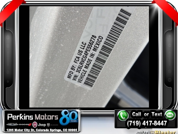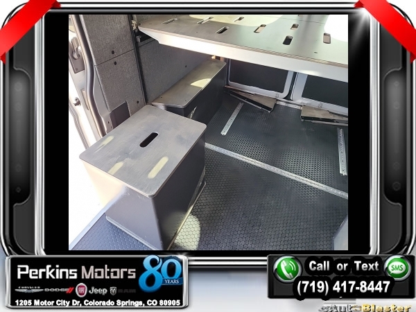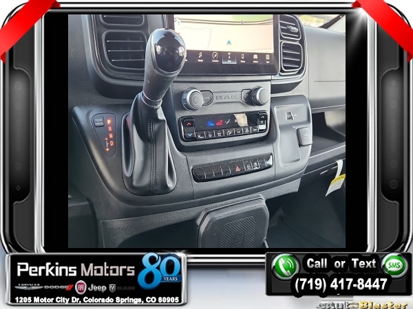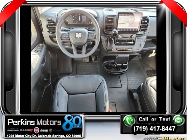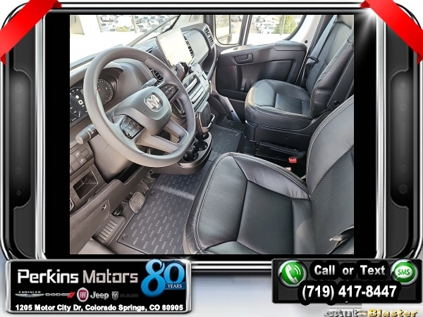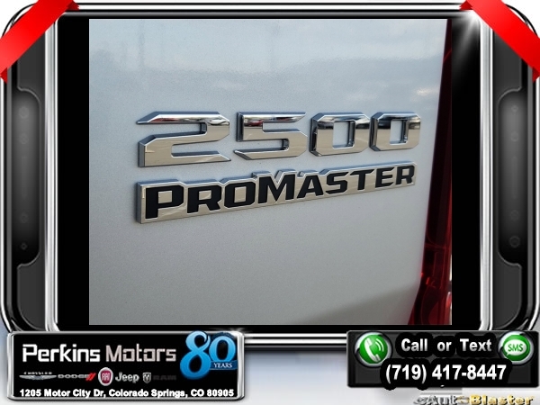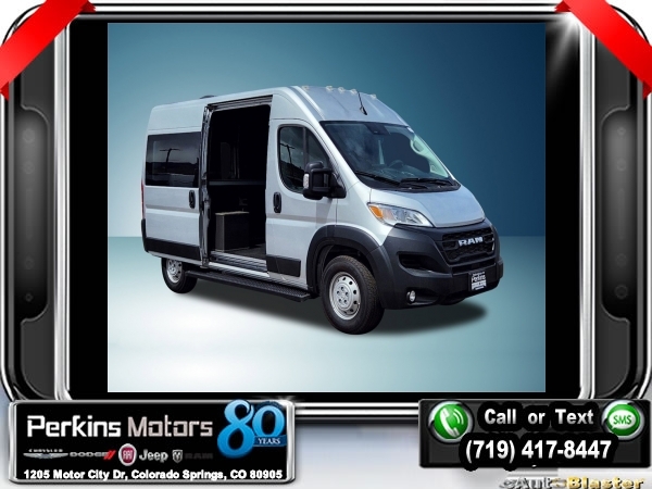 Factory MSRP: $59,295 Bright Silver Metallic Clearcoat 2023 Ram ProMaster 2500 High Roof FWD 9-Speed 948TE Automatic 3.6L V6 24V VVT<br><br>Check us out at www.perkinsmotors.com to see our specials! Since opening our doors in 1944, we’ve been proud to serve Colorado Springs, CO, and the surrounding areas of Pueblo, Castle Rock and Denver, CO. Throughout this time of being family owned for 80 years, we’ve maintained a firm commitment to our customers: to offer a wide selection of New Chrysler, Dodge, Fiat, Jeep, and Ram vehicles and quality pre-owned vehicles, and provide a quick, no-hassle car-buying process that ensures everyone drives off the lot satisfied with their purchase.<br><br>Premium Convenience Group (B) (Auto High Beam Headlamp Control, Automatic Headlamps, Cluster 7.0 TFT Color Display, Global Telematics Box Module (TBM), Radio: Uconnect 5 Nav w/10.1 Display, Rain Sensitive Windshield Wipers, Traffic Sign Information, and Wireless Charging Pad), Quick Order Package 22A, Safety Group (A) (Blind Spot & Cross Path Detection, Daytime Running Headlamps, Front Fog Lamps, and Power Folding/Heated Mirrors), 12V Rear Auxiliary Power Outlet, 220 Amp Alternator, 4 Speakers, 4-Wheel Disc Brakes, 4.08 Axle Ratio, 6-Way Manual Adjust Driver Seat, 6-Way Manual Adjust Front Passenger Seat, ABS brakes, Air Conditioning, AM/FM radio: SiriusXM, Apple CarPlay/Android Auto, Black Seats, Black/Gray Seats, Bodyside moldings, Brake assist, Center Wheel Cap, Class IV Receiver Hitch, Cloth Bucket Seats, Deep Tint Sunscreen Glass, Driver door bin, Driver Seat Armrest, Driver Swivel Seat, Driver's Seat Mounted Armrest, Electronic Stability Control, Front anti-roll bar, Front Bucket Seats, Front License Plate Bracket, Front reading lights, Front wheel independent suspension, Heavy Duty Suspension, Illuminated entry, Low tire pressure warning, Manual 2-Way Driver Lumbar Adjust, Manual 2-Way Passenger Lumbar Adjust, Manual Folding Exterior Mirrors, Manufacturer's Statement of Origin, Outside temperature display, Overhead airbag, Overhead console, ParkView Rear Back-Up Camera, Passenger Bucket Seat, Passenger door bin, Passenger Seat Armrest, Passenger Sliding Door w/Window (Polycarb), Passenger Swivel Seat, Power steering, Power windows, Radio: Uconnect 5 w/7 Display, Rear Hinged Doors w/Fixed Glass, Rear View Day/Night Mirror, Rear Window Defroster, Remote keyless entry, Remote Start System, Speed Control, Steering wheel mounted audio controls, Tachometer, Telescoping steering wheel, Traction control, Trip computer, Turn signal indicator mirrors, Variably intermittent wipers, and Wheels: 16 x 6.0 Steel. Price includes $25,995 in dealer added accessories.