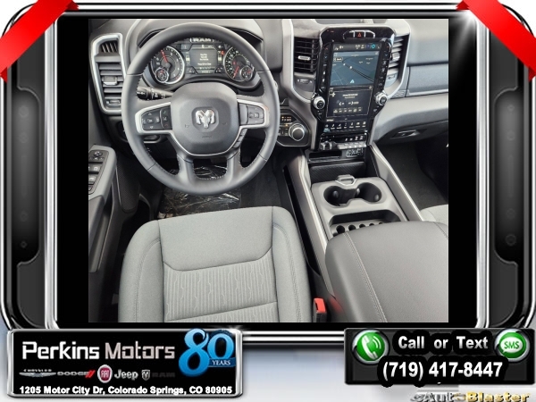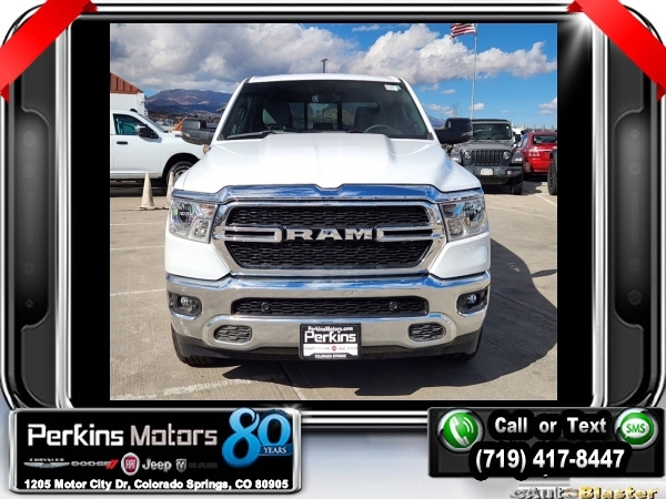 Factory MSRP: $61,630 $10,070 off MSRP! Priced below KBB Fair Purchase Price! Bright White Clearcoat 2023 Ram 1500 Big Horn/Lone Star 4WD 8-Speed Automatic EcoDiesel 3.0L V6<br><br>Check us out at www.perkinsmotors.com to see our specials! Since opening our doors in 1944, we’ve been proud to serve Colorado Springs, CO, and the surrounding areas of Pueblo, Castle Rock and Denver, CO. Throughout this time of being family owned for 80 years, we’ve maintained a firm commitment to our customers: to offer a wide selection of New Chrysler, Dodge, Fiat, Jeep, and Ram vehicles and quality pre-owned vehicles, and provide a quick, no-hassle car-buying process that ensures everyone drives off the lot satisfied with their purchase.<br><br>Big Horn Level B Equipment Group (115V Auxiliary Power Outlet, 12 Touchscreen Display, 2nd Row In Floor Storage Bins, 400W Inverter, 4G LTE Wi-Fi Hot Spot, 9 Amplified Speakers w/Subwoofer, Air Conditioning ATC w/Dual Zone Control, All R1 High Radios, All Radio Equipped Vehicles, Apple CarPlay, Auto-Dimming Exterior Driver Mirror, Auto-Dimming Rear-View Mirror, Black Exterior Mirrors, Black Premium Power Mirrors, Class IV Receiver Hitch, Cluster 7.0 TFT Color Display, Connected Travel & Traffic Services, Connectivity - US/Canada, Convex Wide-Angle Exterior Mirror Insert, Disassociated Touchscreen Display, Exterior Mirrors Courtesy Lamps, Exterior Mirrors w/Heating Element, Exterior Mirrors w/Supplemental Signals, For Details, Visit DriveUconnect.com, For More Info, Call 800-643-2112, Front Fog Lamps, Global Telematics Box Module (TBM), Glove Box Lamp, Google Android Auto, GPS Antenna Input, GPS Navigation, HD Radio, Heated Front Seats, Heated Steering Wheel, Integrated Center Stack Radio, Integrated Voice Command w/Bluetooth, LED Footwell Lighting, Media Hub w/2 Charge Only USBs, ParkSense Front/Rear Park Assist w/Stop, Power 2-Way Driver Lumbar Adjust, Power 8-Way Driver Seat, Power Adjustable Pedals, Power-Folding Mirrors, Radio: Uconnect 5 Nav w/12.0 Display, Rear Dome w/On/Off Switch Lamp, Rear Power Sliding Window, Rear Window Defroster, Remote Start System, Security Alarm, SiriusXM Radio Service, SiriusXM Satellite Radio, SiriusXM w/360L, Sun Visors w/Illuminated Vanity Mirrors, Universal Garage Door Opener, and USB Host Flip), Quick Order Package 28Z Big Horn (DISC) (Big Horn Badge), 3 Rear Seat Head Restraints, 3.21 Rear Axle Ratio, 4 Way Front Headrests, 4-Wheel Disc Brakes, 48V Belt Starter Generator, 6 Speakers, ABS brakes, Air Conditioning, Alloy wheels, AM/FM radio, Brake assist, Bumpers: chrome, Cloth Bench Seat, Compass, Cruise Control, Delay-off headlights, Driver door bin, Dual front impact airbags, Dual front side impact airbags, Electronic Stability Control, Emergency communication system: SiriusXM Guardian, Front anti-roll bar, Front Center Armrest w/Storage, Front License Plate Bracket, Front reading lights, Front Seat Back Map Pockets, Front wheel independent suspension, Fully automatic headlights, Heated door mirrors, Illuminated entry, Leather steering wheel, Low tire pressure warning, Manufacturer's Statement of Origin, MOPAR Front & Rear Rubber Floor Mats, Occupant sensing airbag, Outside temperature display, Overhead airbag, Overhead console, Panic alarm, ParkView Rear Back-Up Camera, Passenger door bin, Passenger vanity mirror, Power door mirrors, Power steering, Power windows, Radio data system, Radio: Uconnect 3 w/5 Display, RAM Grille Badge - Chrome, Rear 60/40 Folding Seat, Rear anti-roll bar, Rear seat center armrest, Rear step bumper, Rear Wheelhouse Liners, Remote keyless entry, Split folding rear seat, Steering wheel mounted audio controls, Tachometer, Telescoping steering wheel, Tilt steering wheel, Traction control, Trailer Brake Control, Trip computer, Variably intermittent wipers, Voltmeter, and Wheels: 18 x 8 Cast-Aluminum PainteD.<br><br>21/29 City/Highway MPG