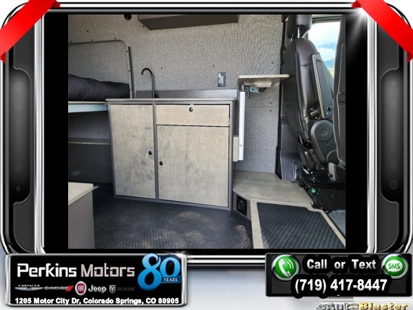 Factory MSRP: $53,385 Granite Crystal Metallic Clearcoat 2023 Ram ProMaster 1500 FWD 9-Speed 948TE Automatic 3.6L V6 24V VVT<br>Aerie Camper Van Conversion.<br>Check us out at www.perkinsmotors.com to see our specials! Since opening our doors in 1944, we’ve been proud to serve Colorado Springs, CO, and the surrounding areas of Pueblo, Castle Rock and Denver, CO. Throughout this time of being family owned for 80 years, we’ve maintained a firm commitment to our customers: to offer a wide selection of New Chrysler, Dodge, Fiat, Jeep, and Ram vehicles and quality pre-owned vehicles, and provide a quick, no-hassle car-buying process that ensures everyone drives off the lot satisfied with their purchase.<br><br>Driver Convenience Group (A) (DISC) (Blind Spot & Cross Path Detection, Front Fog Lamps, Power Folding/Heated Mirrors, Remote Start System, and Surround View Camera System), Premium Convenience Group (B) (Auto High Beam Headlamp Control, Automatic Headlamps, Cluster 7.0 TFT Color Display, Global Telematics Box Module (TBM), Radio: Uconnect 5 Nav w/10.1 Display, Rain Sensitive Windshield Wipers, Traffic Sign Information, and Wireless Charging Pad), Quick Order Package 22A, 12V Rear Auxiliary Power Outlet, 220 Amp Alternator, 4 Speakers, 4-Wheel Disc Brakes, 4.08 Axle Ratio, 6-Way Manual Adjust Driver Seat, 6-Way Manual Adjust Front Passenger Seat, ABS brakes, Air Conditioning, AM/FM radio: SiriusXM, Apple CarPlay/Android Auto, Black/Gray Seats, Bodyside moldings, Brake assist, Center Wheel Cap, Class IV Receiver Hitch, Cloth Bucket Seats, Deep Tint Sunscreen Glass, Driver door bin, Driver Seat Armrest, Driver Swivel Seat, Driver's Seat Mounted Armrest, Electronic Stability Control, Front anti-roll bar, Front Bucket Seats, Front License Plate Bracket, Front reading lights, Front wheel independent suspension, Illuminated entry, Low tire pressure warning, Manual 2-Way Driver Lumbar Adjust, Manual 2-Way Passenger Lumbar Adjust, Manual Folding Exterior Mirrors, Manufacturer's Statement of Origin, Medium Duty Suspension, Outside temperature display, Overhead airbag, ParkView Rear Back-Up Camera, Passenger Bucket Seat, Passenger door bin, Passenger Seat Armrest, Passenger Sliding Door w/Window (Polycarb), Passenger Swivel Seat, Power steering, Power windows, Radio: Uconnect 5 w/7 Display, Rear Hinged Doors w/Fixed Glass, Rear View Day/Night Mirror, Rear Window Defroster, Remote keyless entry, Speed Control, Steering wheel mounted audio controls, Tachometer, Telescoping steering wheel, Traction control, Trip computer, Turn signal indicator mirrors, Variably intermittent wipers, and Wheels: 16 x 6.0 Steel. Price includes $25,995 in dealer added accessories.