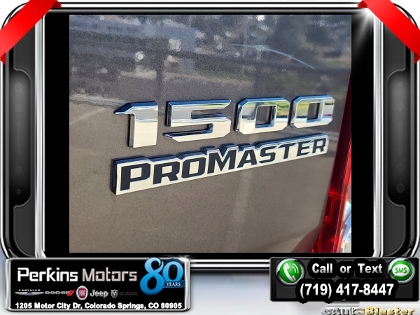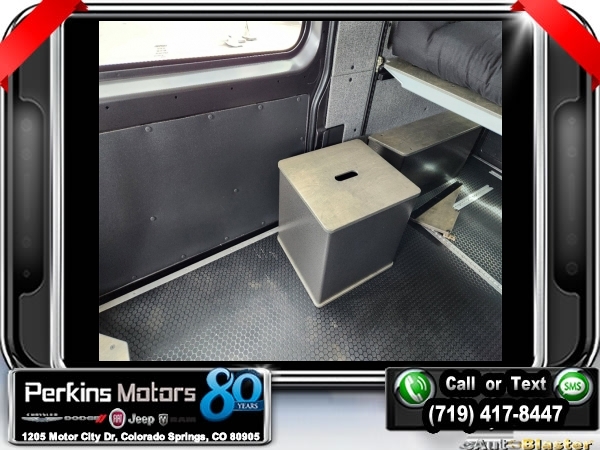 Factory MSRP: $53,385 Granite Crystal Metallic Clearcoat 2023 Ram ProMaster 1500 FWD 9-Speed 948TE Automatic 3.6L V6 24V VVT<br>Aerie Camper Van Conversion.<br>Check us out at www.perkinsmotors.com to see our specials! Since opening our doors in 1944, we’ve been proud to serve Colorado Springs, CO, and the surrounding areas of Pueblo, Castle Rock and Denver, CO. Throughout this time of being family owned for 80 years, we’ve maintained a firm commitment to our customers: to offer a wide selection of New Chrysler, Dodge, Fiat, Jeep, and Ram vehicles and quality pre-owned vehicles, and provide a quick, no-hassle car-buying process that ensures everyone drives off the lot satisfied with their purchase.<br><br>Driver Convenience Group (A) (DISC) (Blind Spot & Cross Path Detection, Front Fog Lamps, Power Folding/Heated Mirrors, Remote Start System, and Surround View Camera System), Premium Convenience Group (B) (Auto High Beam Headlamp Control, Automatic Headlamps, Cluster 7.0 TFT Color Display, Global Telematics Box Module (TBM), Radio: Uconnect 5 Nav w/10.1 Display, Rain Sensitive Windshield Wipers, Traffic Sign Information, and Wireless Charging Pad), Quick Order Package 22A, 12V Rear Auxiliary Power Outlet, 220 Amp Alternator, 4 Speakers, 4-Wheel Disc Brakes, 4.08 Axle Ratio, 6-Way Manual Adjust Driver Seat, 6-Way Manual Adjust Front Passenger Seat, ABS brakes, Air Conditioning, AM/FM radio: SiriusXM, Apple CarPlay/Android Auto, Black/Gray Seats, Bodyside moldings, Brake assist, Center Wheel Cap, Class IV Receiver Hitch, Cloth Bucket Seats, Deep Tint Sunscreen Glass, Driver door bin, Driver Seat Armrest, Driver Swivel Seat, Driver's Seat Mounted Armrest, Electronic Stability Control, Front anti-roll bar, Front Bucket Seats, Front License Plate Bracket, Front reading lights, Front wheel independent suspension, Illuminated entry, Low tire pressure warning, Manual 2-Way Driver Lumbar Adjust, Manual 2-Way Passenger Lumbar Adjust, Manual Folding Exterior Mirrors, Manufacturer's Statement of Origin, Medium Duty Suspension, Outside temperature display, Overhead airbag, ParkView Rear Back-Up Camera, Passenger Bucket Seat, Passenger door bin, Passenger Seat Armrest, Passenger Sliding Door w/Window (Polycarb), Passenger Swivel Seat, Power steering, Power windows, Radio: Uconnect 5 w/7 Display, Rear Hinged Doors w/Fixed Glass, Rear View Day/Night Mirror, Rear Window Defroster, Remote keyless entry, Speed Control, Steering wheel mounted audio controls, Tachometer, Telescoping steering wheel, Traction control, Trip computer, Turn signal indicator mirrors, Variably intermittent wipers, and Wheels: 16 x 6.0 Steel. Price includes $25,995 in dealer added accessories.