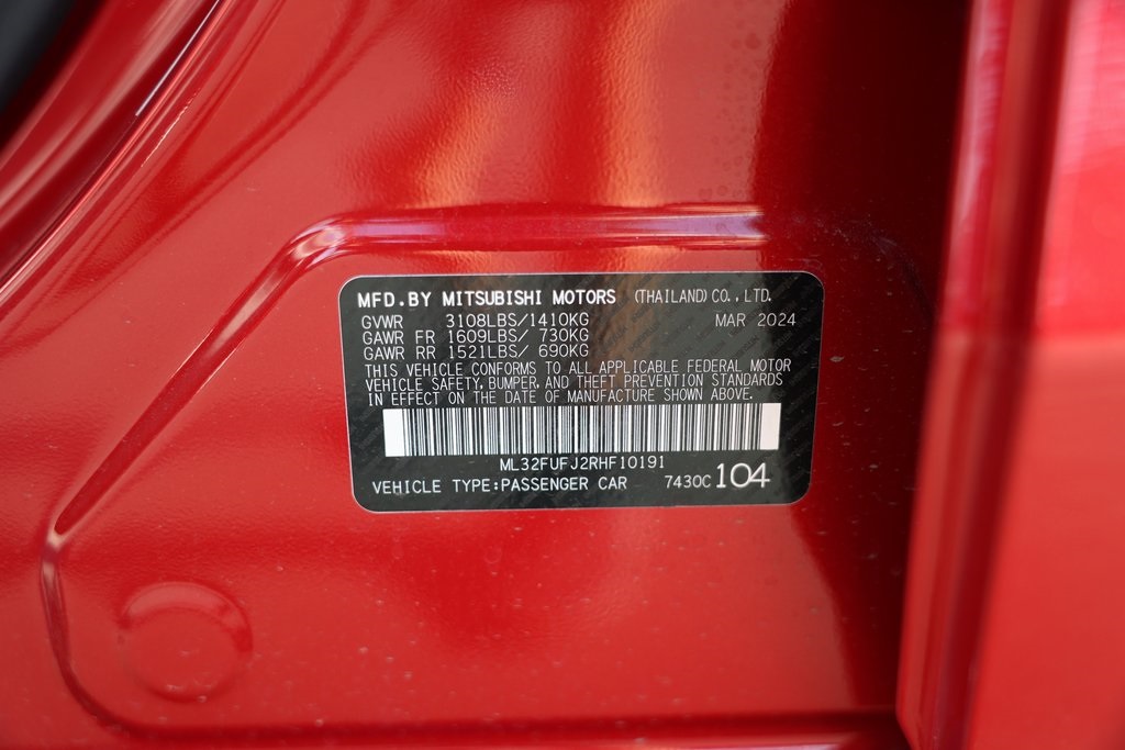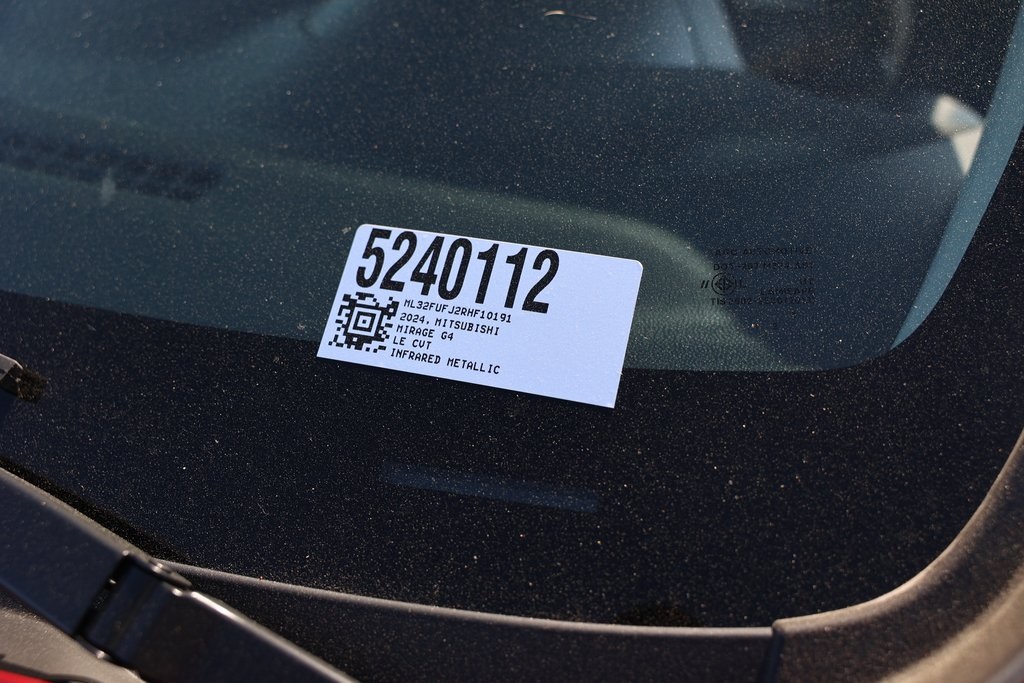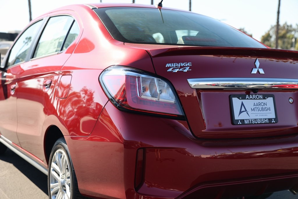 Infrared Metallic 2024 Mitsubishi Mirage G4 LE FWD CVT 1.2L 3-Cylinder DOHC MIVECFind your next ride at Aaron Mitsubishi of Corona, where we offer a wide range of new Mitsubishi vehicles. From the fuel-efficient Mirage to the versatile Outlander, our selection is designed to meet all your driving needs. Visit us and drive away in a stylish, reliable Mitsubishi today. 35/41 City/Highway MPG