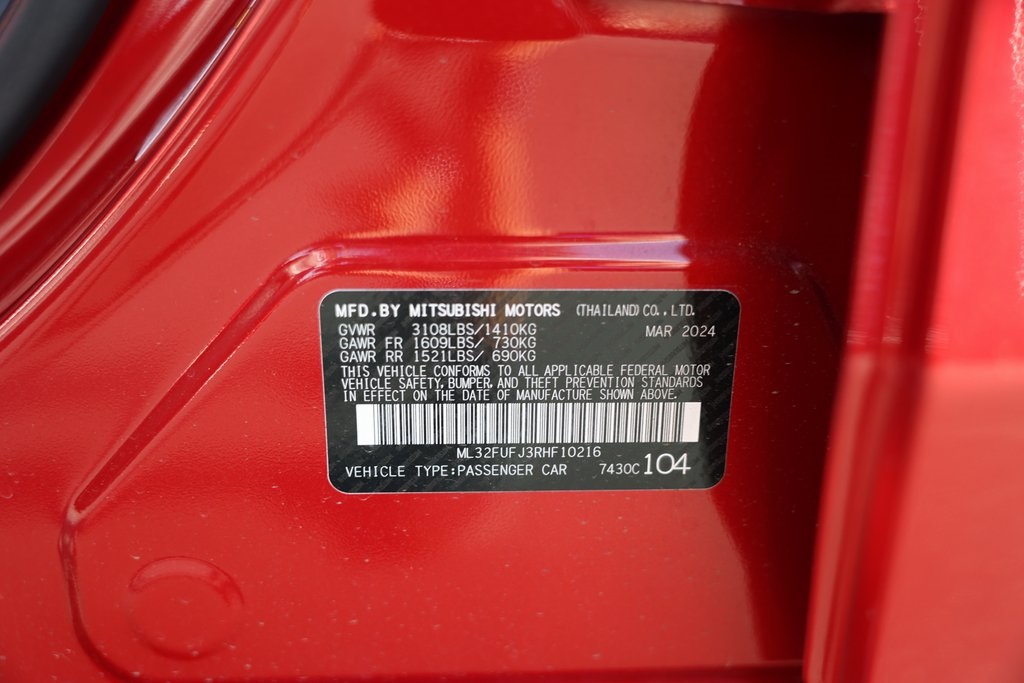 Infrared Metallic 2024 Mitsubishi Mirage G4 ES FWD CVT 1.2L 3-Cylinder DOHC MIVECFind your next ride at Aaron Mitsubishi of Corona, where we offer a wide range of new Mitsubishi vehicles. From the fuel-efficient Mirage to the versatile Outlander, our selection is designed to meet all your driving needs. Visit us and drive away in a stylish, reliable Mitsubishi today. 35/41 City/Highway MPG