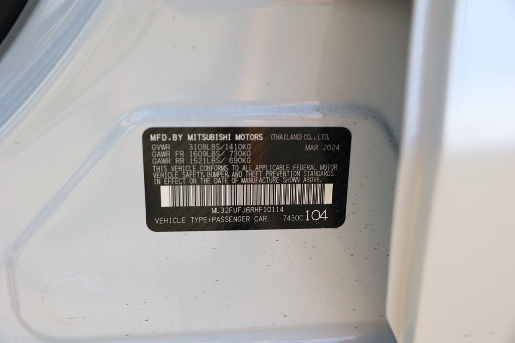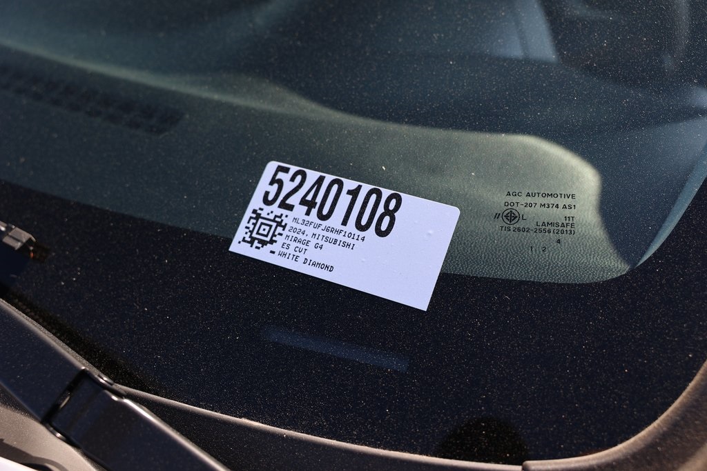 White Diamond 2024 Mitsubishi Mirage G4 ES FWD CVT 1.2L 3-Cylinder DOHC MIVECFind your next ride at Aaron Mitsubishi of Corona, where we offer a wide range of new Mitsubishi vehicles. From the fuel-efficient Mirage to the versatile Outlander, our selection is designed to meet all your driving needs. Visit us and drive away in a stylish, reliable Mitsubishi today. 35/41 City/Highway MPG