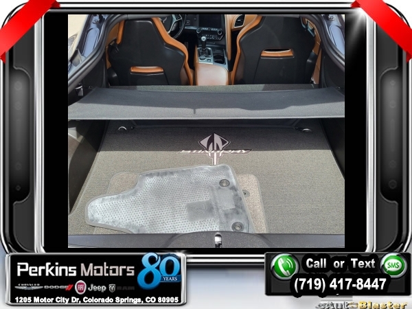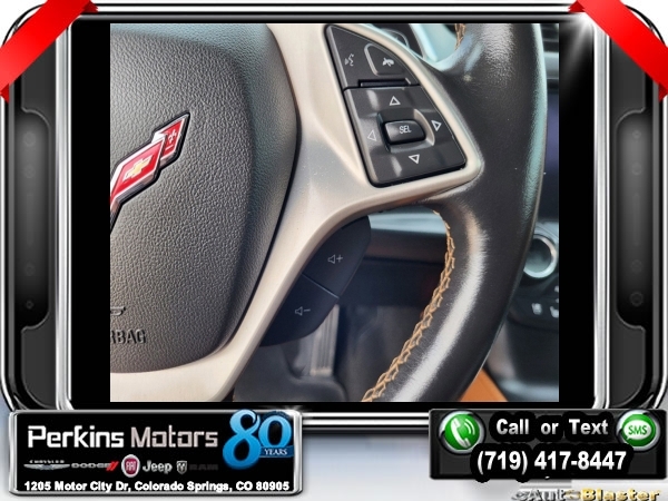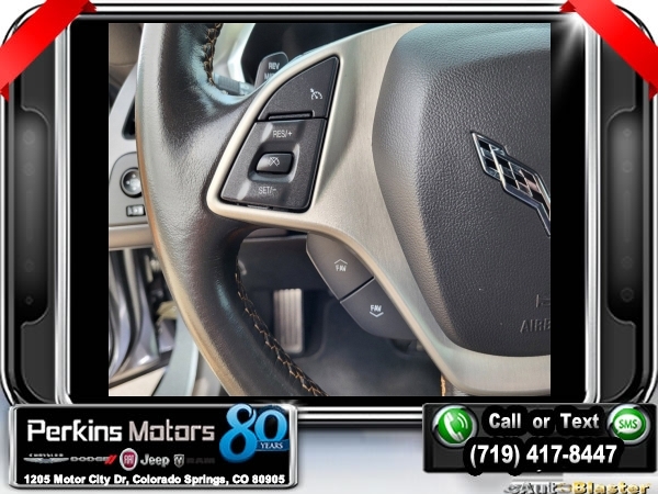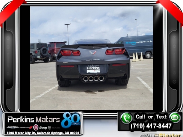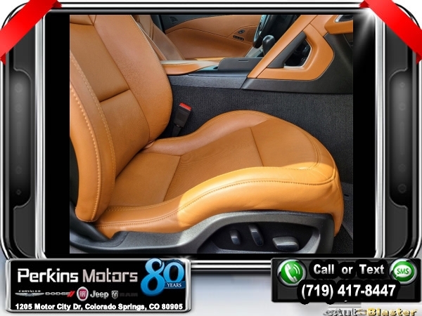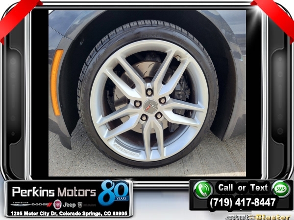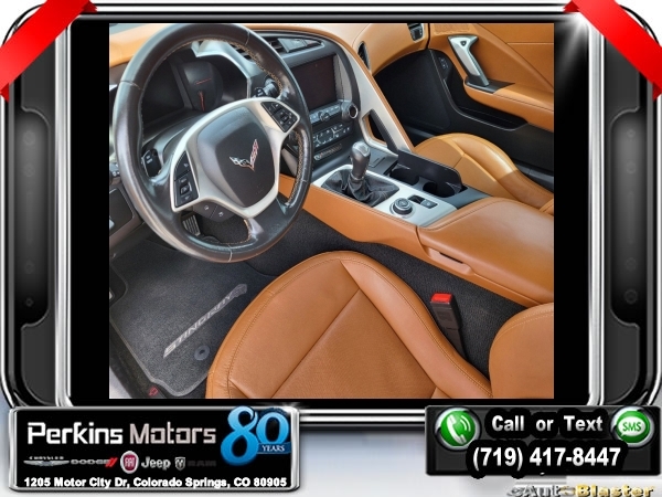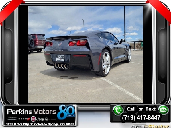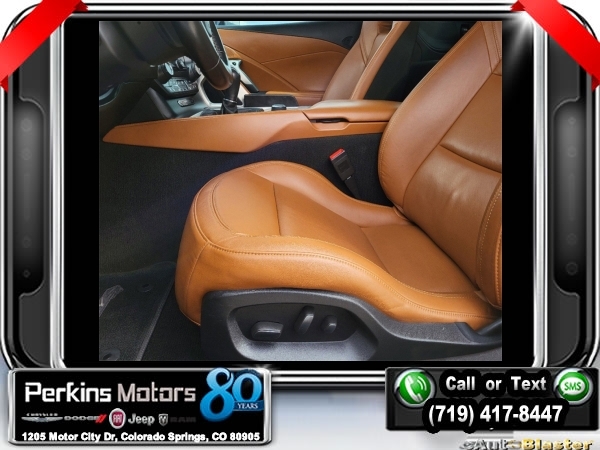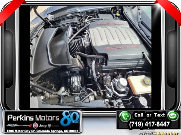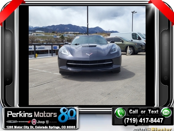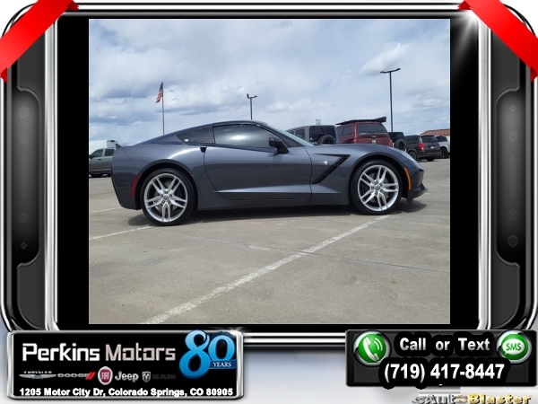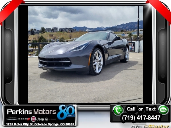 Cyber Gray Metallic RWD 6.2L V8 7-Speed Manual with Active Rev Matching<br><br><br>Clean CARFAX.<br><br>Check us out at www.perkinsmotors.com to see our specials! Since opening our doors in 1944, we’ve been proud to serve Colorado Springs, CO, and the surrounding areas of Pueblo, Castle Rock and Denver, CO. Throughout this time of being family owned for 80 years, we’ve maintained a firm commitment to our customers: to offer a wide selection of New Chrysler, Dodge, Fiat, Jeep, and Ram vehicles and quality pre-owned vehicles, and provide a quick, no-hassle car-buying process that ensures everyone drives off the lot satisfied with their purchase.<br><br>Reviews:<br> * If you like the idea of owning unimaginably good horsepower and performance value, and controlling it from a Ritz-Carlton of an interior, the Corvette Stingray couldn’t make more sense. Source: KBB.com<br> * Relentless V8 power; impressive handling and braking; upgraded interior with new electronic features; roomy cargo area; nifty rev-match manual transmission. Source: Edmunds<br> * With its sculpted athletic exterior and driver-oriented cockpit, Stingray is a beautiful weapon against the ordinary. But its ingenious design is purpose-driven. A lightweight aluminum space frame replaces steel. Carbon-fiber and carbon-nano-composite structures reduce weight even further to achieve optimal handling and acceleration. Provocative, purposeful and sculpted for optimal performance, the Stingray coupe is low, light and lean. Increased downforce keeps the vehicle planted, while its functional exterior vents create a totally new breathing experience to reduce lift and minimize drag. The advanced ventilation systems help air flow from front to back, cooling critical components of the perfectly balanced powertrain. Illuminated by innovative digital features and intelligent driver controls, the Stingray cockpit is a stunning change from your typical interior scenery. An ingenious available color Head-Up Display complements the customizable dual display featuring two 8-inch screens. A sweeping freeform line spans the instrument panel and flawlessly carries over into the door trim and console. And every inch is imbued with a deep respect for authentic materials. Real aluminum. Available carbon fiber. Grade A leather hand-selected and crafted to adorn a new generation of elegance. Completely redesigned, the 6.2L V8 engine boasts up to an estimated 460hp, 465 lb.-ft. of torque, plus 0-60 times of 3.8 seconds. This is complemented with an all-new 7-speed transmission. Intelligent sensors anticipate gear selections and match engine speed for smooth transitions during both upshifts and downshifts. The MyLink system begins with a retractable 8-inch diagonal high-definition color touch-screen. Using steering wheel controls, hand gesture and voice recognition capabilities, you can talk and text hands-free, stream HD Radio and third-party music services like Pandora, plus access a broad range of functions including OnStar and available navigation. Source: The Manufacturer Summary<br><br><br>Awards:<br> * Car and Driver 10 Best Cars * Ward's 10 Best Engines * NACTOY 2014 North American Car of the Year * 2014 KBB.com Brand Image Awards<br>Car and Driver, January 2017.<br><br>Custom Leather Wrapped Interior Package, Memory Package, Preferred Equipment Group 3LT (3LT Interior Trim, Cargo Net, Heated & Vented Driver & Passenger Seats, Luggage Shade, and Radio: Chevrolet MyLink AM/FM Stereo), 4-Wheel Disc Brakes, 8-Way Driver & Passenger Seat Adjusters, 9 Speakers, ABS brakes, Air Conditioning, Alloy wheels, AM/FM radio: SiriusXM, Automatic temperature control, Bose Premium 9-Speaker Audio System Feature, Bumpers: body-color, Carbon Flash-Painted Rear Spoiler, Compass, Cruise Control, Delay-off headlights, Driver door bin, Driver vanity mirror, Dual front impact airbags, Dual front side impact airbags, Electronic Stability Control, Emergency communication system: OnStar Directions