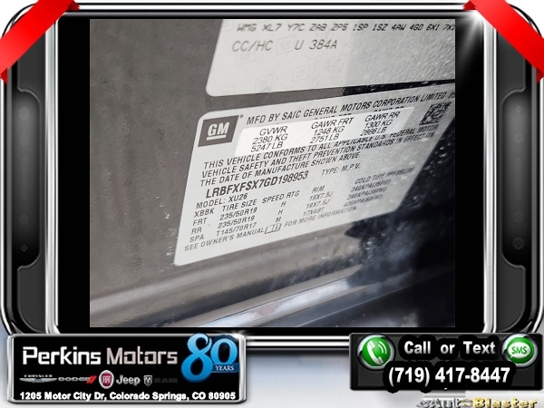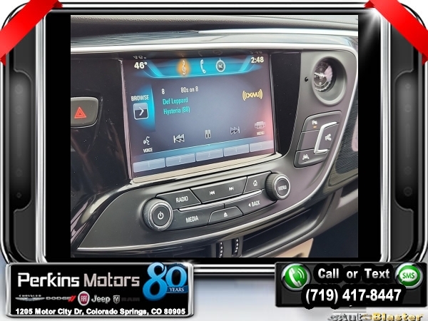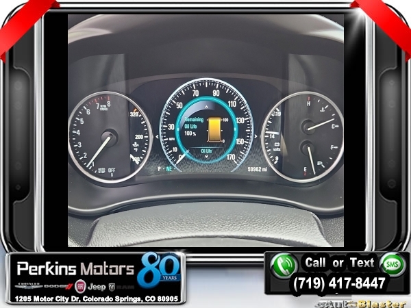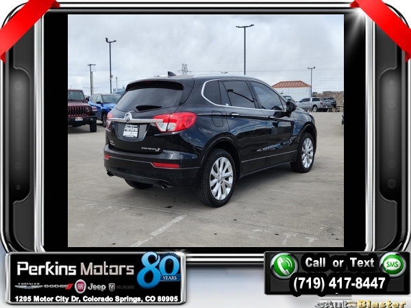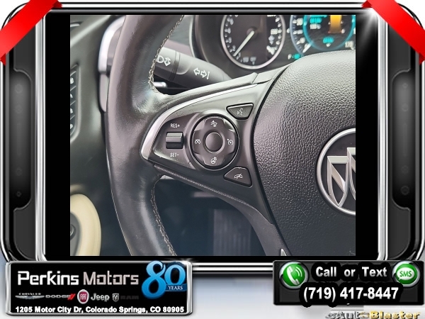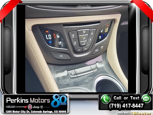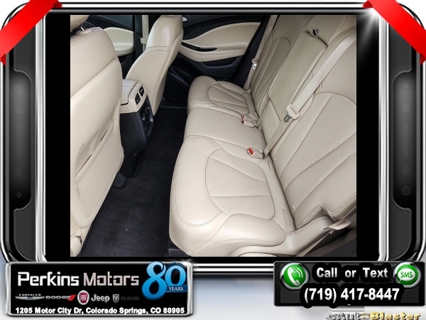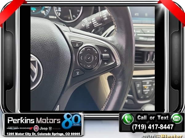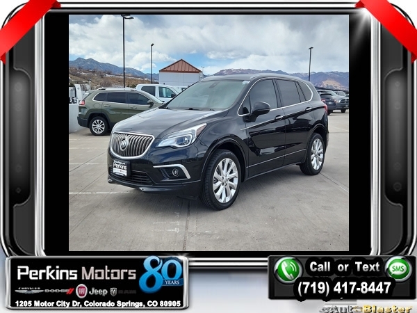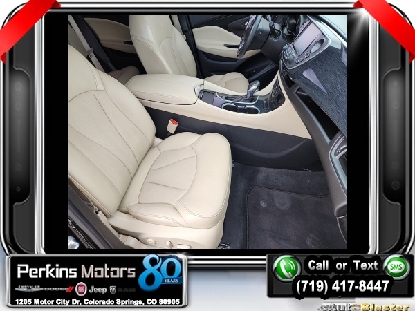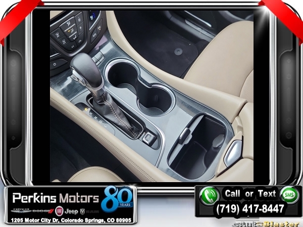 Ebony Twilight Metallic AWD 2.0L 4-Cylinder DGI DOHC VVT Turbocharged 6-Speed Automatic<br><br><br>Clean CARFAX.<br><br>Check us out at www.perkinsmotors.com to see our specials! Since opening our doors in 1944, we’ve been proud to serve Colorado Springs, CO, and the surrounding areas of Pueblo, Castle Rock and Denver, CO. Throughout this time of being family owned for 80 years, we’ve maintained a firm commitment to our customers: to offer a wide selection of New Chrysler, Dodge, Fiat, Jeep, and Ram vehicles and quality pre-owned vehicles, and provide a quick, no-hassle car-buying process that ensures everyone drives off the lot satisfied with their purchase.<br><br>Reviews:<br> * Comes with more features than similarly priced compact SUVs; impressively quiet interior when driving on the highway; manageable size makes it easy to drive and maneuver. Source: Edmunds<br><br><br>Awards:<br> * 2016 IIHS Top Safety Pick+ with optional front crash prevention * 2016 KBB.com Brand Image Awards<br><br>Preferred Equipment Group 1SP, 3.17 Final Drive Axle Ratio, 4-Wheel Disc Brakes, 7 Speakers, ABS brakes, Air Conditioning, Alloy wheels, AM/FM radio: SiriusXM, Auto High-beam Headlights, Auto-dimming door mirrors, Auto-dimming Rear-View mirror, Automatic temperature control, Blind spot sensor: warning, Bose Premium 7-Speaker System w/Amplifier, Brake assist, Bumpers: body-color, CD player, Compass, Cruise Control, Delay-off headlights, Driver 8-Way Power Seat Adjuster, Driver door bin, Driver vanity mirror, Dual front impact airbags, Dual front side impact airbags, Electronic Stability Control, Emergency communication system: OnStar Guidance, Exterior Parking Camera Rear, Four wheel independent suspension, Front anti-roll bar, Front Bucket Seats, Front Center Armrest, Front dual zone A/C, Front fog lights, Front Passenger 8-Way Power Seat Adjuster, Front reading lights, Fully automatic headlights, Garage door transmitter, Heads-Up Display, Heated door mirrors, Heated Driver & Front Passenger Seats, Heated front seats, Heated rear seats, Heated steering wheel, High-Intensity Discharge Headlights, Illuminated entry, Knee airbag, Lane Departure Warning System, Low tire pressure warning, Memory seat, Navigation System, Occupant sensing airbag, Outside temperature display, Overhead airbag, Overhead console, Panic alarm, Passenger door bin, Passenger vanity mirror, Perforated Leather-Appointed Seat Trim, Power door mirrors, Power driver seat, Power Liftgate, Power passenger seat, Power steering, Power windows, Premium audio system: IntelliLink, Radio data system, Radio: Buick IntelliLink AM/FM Stereo w/Navigation, Rain sensing wipers, Rear air conditioning, Rear anti-roll bar, Rear reading lights, Rear seat center armrest, Rear side impact airbag, Rear window defroster, Rear window wiper, Remote keyless entry, Roof rack: rails only, Security system, Single-Slot CD/MP3 Player, SiriusXM Satellite Radio, Speed-sensing steering, Split folding rear seat, Spoiler, Steering wheel mounted audio controls, Tachometer, Telescoping steering wheel, Tilt steering wheel, Traction control, Trip computer, Turn signal indicator mirrors, Variably intermittent wipers, Ventilated & Cooled Driver Seat, Ventilated & Cooled Front Passenger Seat, Ventilated front seats, and Wheels: 19 10-Spoke Aluminum.