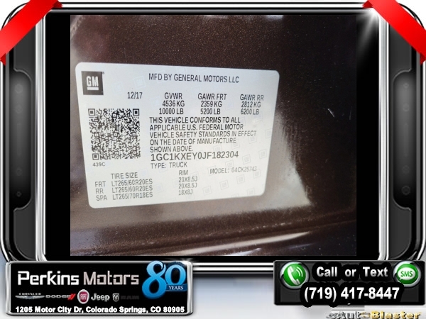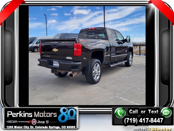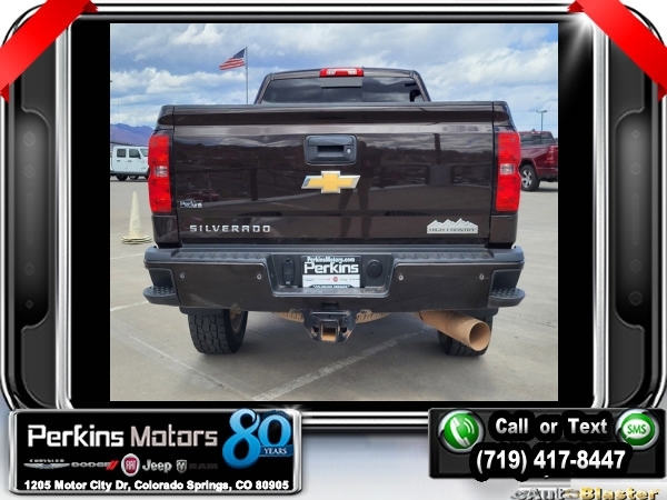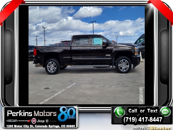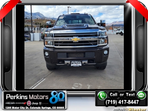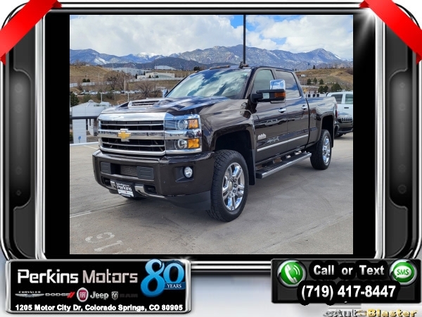 Havana Metallic 4WD Duramax 6.6L V8 Turbodiesel Allison 1000 6-Speed Automatic<br><br>Allison 1000 6-Speed Automatic, 4WD, Saddle Leather.<br><br><br>Check us out at www.perkinsmotors.com to see our specials! Since opening our doors in 1944, we’ve been proud to serve Colorado Springs, CO, and the surrounding areas of Pueblo, Castle Rock and Denver, CO. Throughout this time of being family owned for 80 years, we’ve maintained a firm commitment to our customers: to offer a wide selection of New Chrysler, Dodge, Fiat, Jeep, and Ram vehicles and quality pre-owned vehicles, and provide a quick, no-hassle car-buying process that ensures everyone drives off the lot satisfied with their purchase.<br><br><br>Awards:<br> * 2018 KBB.com 10 Most Awarded Brands<br><br>Driver Alert Package (Forward Collision Alert and Lane Departure Warning System), Duramax Plus Package (Chrome Power-Adjustable Heated Trailering Mirrors, Chrome Recovery Hooks, and Engine Block Heater), Preferred Equipment Group 3LZ (110-Volt AC Power Outlet, 4.2 Diagonal Color Display Driver Info Center, 6 Rectangular Chromed Assist Steps (LPO), Auto-Dimming Inside Rear-View Mirror, Bright Sill Plates, Chevrolet Connected Access, Chevrolet w/4G LTE, Chrome Bodyside Moldings, Chrome Door Handles, Chrome Mirror Caps, Color-Keyed Carpeting Floor Covering, Deep-Tinted Glass, Digital Steering Assist, Driver & Front Passenger Vanity Mirror Visors, Dual-Zone Automatic Climate Control, Electric Rear-Window Defogger, Electronic Shift Transfer Case, EZ-Lift & Lower Tailgate, Front Halogen Fog Lamps, HD Radio, Heated Power-Adjustable Outside Mirrors, Leather-Wrapped Steering Wheel, Manual Tilt-Wheel/Telescoping Steering Column, OnStar & Chevrolet Connected Services Capable, Power Sliding Rear Window w/Defogger, Power Windows w/Driver Express Up & Down, Rear 60/40 Folding Bench Seat (Folds Up), Rear Wheelhouse Liners, Remote Keyless Entry, Remote Locking Tailgate, Remote Vehicle Starter System, Single Slot CD/MP3 Player, SiriusXM Satellite Radio, Spray-On Pickup Box Bed Liner w/Bowtie Logo, Steering Wheel Audio Controls, Unauthorized Entry Theft-Deterrent System, and Universal Home Remote), Standard Suspension Package, Trailering Equipment, Allison 1000 6-Speed Automatic, 4WD, Saddle Leather, 3.73 Rear Axle Ratio, 4 Movable Upper Cargo Tie Downs, 4-Wheel Disc Brakes, 4.10 Rear Axle Ratio, 7 Speakers, ABS brakes, Adjustable pedals, Air Conditioning, Alloy wheels, AM/FM radio: SiriusXM, Auto-dimming door mirrors, Auto-dimming Rear-View mirror, Automatic temperature control, Black Recovery Hooks, Body-Color Front Bumper, Body-Color Rear Bumper, Bodyside moldings, BOSE Sound w/6 Speaker System, Brake assist, Bumpers: body-color, Camper & 5th Wheel Trailer Wiring Provisions, Carpeted Front & Rear Floor Mats, CD player, Chrome wheels, Compass, Cruise Control, Delay-off headlights, Driver door bin, Driver vanity mirror, Dual front impact airbags, Dual front side impact airbags, Electronic Stability Control, Exhaust Brake, Exterior Parking Camera Rear, Floor Mounted Console, Front anti-roll bar, Front Bucket Seats, Front Center Armrest w/Storage, Front dual zone A/C, Front fog lights, Front License Plate Kit, Front reading lights, Front wheel independent suspension, Fully automatic headlights, Garage door transmitter, Heated & Vented Front Seating, Heated door mirrors, Heated Driver & Front Passenger Seating, Heated Front Full Feature Bucket Seats, Heated front seats, Heated Leather Wrapped Steering Wheel, Heated steering wheel, Illuminated entry, Integrated Trailer Brake Controller, Low tire pressure warning, Memory seat, Navigation System, Occupant sensing airbag, Outside temperature display, Overhead airbag, Overhead console, Panic alarm, Passenger door bin, Passenger vanity mirror, Perforated Leather Appointed Seat Trim, Power door mirrors, Power driver seat, Power passenger seat, Power steering, Power windows, Power-Adjustable Pedals, Premium audio system: Chevrolet MyLink, Radio: