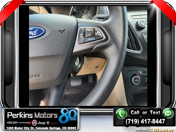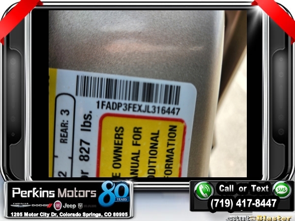 White Gold Metallic FWD EcoBoost 1.0L I3 GTDi DOHC Turbocharged VCT 6-Speed Automatic<br><br><br>Check us out at www.perkinsmotors.com to see our specials! Since opening our doors in 1944, we’ve been proud to serve Colorado Springs, CO, and the surrounding areas of Pueblo, Castle Rock and Denver, CO. Throughout this time of being family owned for 80 years, we’ve maintained a firm commitment to our customers: to offer a wide selection of New Chrysler, Dodge, Fiat, Jeep, and Ram vehicles and quality pre-owned vehicles, and provide a quick, no-hassle car-buying process that ensures everyone drives off the lot satisfied with their purchase.<br><br><br>Awards:<br> * 2018 KBB.com 10 Most Awarded Brands * 2018 KBB.com Brand Image Awards<br><br>Equipment Group 200A, 6 Speakers, ABS brakes, Air Conditioning, Alloy wheels, AM/FM radio: SiriusXM, Brake assist, Bumpers: body-color, Cloth Front Bucket Seats, Compass, Cruise Control, Delay-off headlights, Driver door bin, Driver vanity mirror, Dual front impact airbags, Dual front side impact airbags, Electronic Stability Control, Emergency communication system, Exterior Parking Camera Rear, Four wheel independent suspension, Front anti-roll bar, Front Bucket Seats, Front Center Armrest, Front reading lights, Fully automatic headlights, Illuminated entry, Knee airbag, Low tire pressure warning, Occupant sensing airbag, Outside temperature display, Overhead airbag, Overhead console, Panic alarm, Passenger door bin, Passenger vanity mirror, Power door mirrors, Power steering, Power windows, Radio data system, Radio: AM/FM/MP3-Capable, Rear anti-roll bar, Rear window defroster, Remote keyless entry, Split folding rear seat, Steering wheel mounted audio controls, SYNC Communications & Entertainment System, Tachometer, Telescoping steering wheel, Tilt steering wheel, Traction control, Trip computer, Variably intermittent wipers, and Wheels: 16 Sparkle Silver Painted Aluminum.
