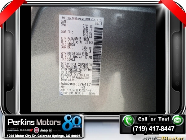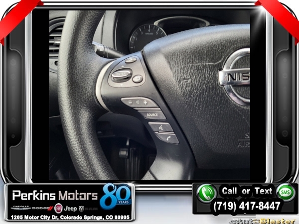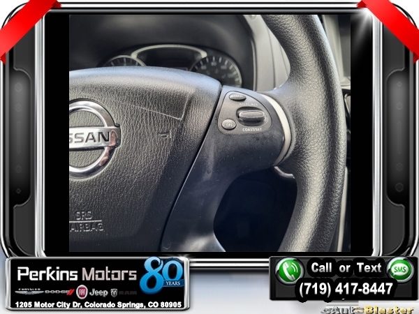 Gun Metallic FWD V6 CVT with Xtronic<br><br><br>Check us out at www.perkinsmotors.com to see our specials! Since opening our doors in 1944, we’ve been proud to serve Colorado Springs, CO, and the surrounding areas of Pueblo, Castle Rock and Denver, CO. Throughout this time of being family owned for 80 years, we’ve maintained a firm commitment to our customers: to offer a wide selection of New Chrysler, Dodge, Fiat, Jeep, and Ram vehicles and quality pre-owned vehicles, and provide a quick, no-hassle car-buying process that ensures everyone drives off the lot satisfied with their purchase.<br><br><br>3rd row seats: bench, 4-Wheel Disc Brakes, 5.25 Axle Ratio, 6 Speakers, ABS brakes, Air Conditioning, Alloy wheels, AM/FM radio: SiriusXM, Automatic temperature control, Black Mold-in-Color Splash Guards, Brake assist, Bumpers: body-color, Carpeted Floor Mats (4-pc Set), CD player, Cloth Seating Surfaces, Cross Bars, Cruise Control, Delay-off headlights, Driver door bin, Driver vanity mirror, Dual front impact airbags, Dual front side impact airbags, Electronic Stability Control, Four wheel independent suspension, Front anti-roll bar, Front Bucket Seats, Front Center Armrest, Front dual zone A/C, Front reading lights, Illuminated entry, Low tire pressure warning, Occupant sensing airbag, Outside temperature display, Overhead airbag, Overhead console, Panic alarm, Passenger door bin, Passenger vanity mirror, Power door mirrors, Power steering, Power windows, Radio data system, Radio: AM/FM/CD Audio System w/NissanConnect, Rear air conditioning, Rear anti-roll bar, Rear Bumper Protector, Rear Parking Sensors, Rear reading lights, Rear seat center armrest, Rear window defroster, Rear window wiper, Reclining 3rd row seat, Remote keyless entry, Roof rack: rails only, Security system, Speed-sensing steering, Split folding rear seat, Spoiler, Steering wheel mounted audio controls, Tachometer, Telescoping steering wheel, Tilt steering wheel, Traction control, Trip computer, Turn signal indicator mirrors, Variably intermittent wipers, and Wheels: 18 x 7.5 J Machined Aluminum-Alloy.