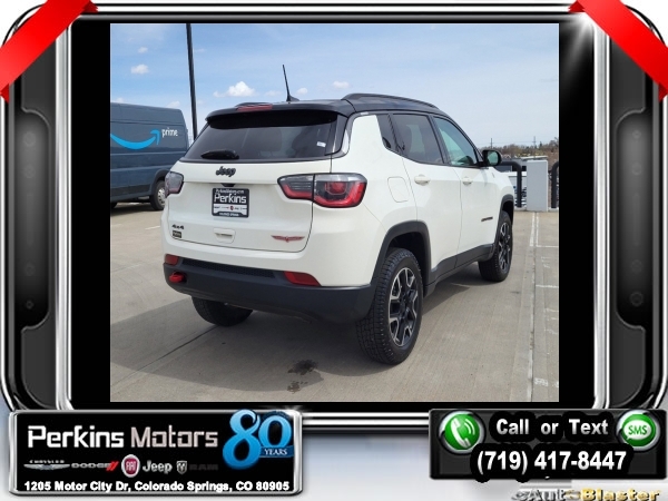 White Clearcoat 4WD 2.4L I4 9-Speed 948TE Automatic<br><br>4WD.<br><br><br>CARFAX One-Owner.<br><br>Check us out at www.perkinsmotors.com to see our specials! Since opening our doors in 1944, we’ve been proud to serve Colorado Springs, CO, and the surrounding areas of Pueblo, Castle Rock and Denver, CO. Throughout this time of being family owned for 80 years, we’ve maintained a firm commitment to our customers: to offer a wide selection of New Chrysler, Dodge, Fiat, Jeep, and Ram vehicles and quality pre-owned vehicles, and provide a quick, no-hassle car-buying process that ensures everyone drives off the lot satisfied with their purchase.<br><br><br>Cold Weather Group (Heated Front Seats, Heated Steering Wheel, Remote Start System, and Windshield Wiper De-Icer), Premium Lighting Group (Bi-Xenon HID Headlamps w/LED Signature and LED Taillamps), Quick Order Package 2GE, 4WD, 17 x 6.5 Aluminum Wheels, 4-Wheel Disc Brakes, 4.334 Axle Ratio, 6 Speakers, 8.4 Touch Screen Display, ABS brakes, Air Conditioning, Air Vents Center Console/Rear Seats, Alloy wheels, AM/FM radio: SiriusXM, Anti-whiplash front head restraints, Apple CarPlay, Apple CarPlay/Android Auto, Automatic temperature control, Autostick Automatic Transmission, Bluetooth® Streaming Audio, Brake assist, Bumpers: body-color, Compass, Cruise Control, Delay-off headlights, Driver door bin, Driver vanity mirror, Dual front impact airbags, Dual front side impact airbags, Electronic Stability Control, Four wheel independent suspension, Front anti-roll bar, Front Bucket Seats, Front Center Armrest w/Storage, Front dual zone A/C, Front fog lights, Front License Plate Bracket, Front reading lights, Fully automatic headlights, Google Android Auto, GPS Antenna Input, Heated door mirrors, Illuminated entry, Knee airbag, Leather Shift Knob, Leather Wrapped Shift Knob, Low tire pressure warning, Manufacturer's Statement of Origin (DISC), Media Hub (USB, AUX), Occupant sensing airbag, Outside temperature display, Overhead airbag, Overhead console, Panic alarm, ParkView Rear Back-Up Camera, Passenger door bin, Passenger vanity mirror, Power door mirrors, Power steering, Power windows, Premium Cloth/Leather Trim Bucket Seats, Radio: Uconnect 4 w/8.4 Display, Rear anti-roll bar, Rear seat center armrest, Rear window defroster, Rear window wiper, Remote keyless entry, Roof rack: rails only, Split folding rear seat, Spoiler, Steering wheel mounted audio controls, Tachometer, Telescoping steering wheel, Tilt steering wheel, Traction control, Trip computer, Turn signal indicator mirrors, USB Host Flip, and Variably intermittent wipers.