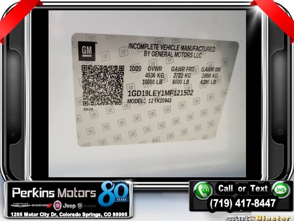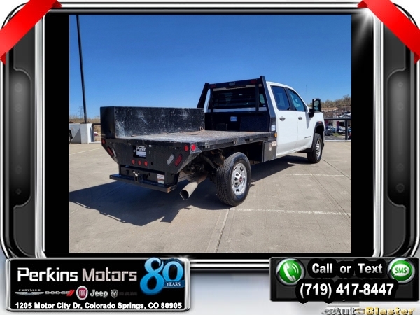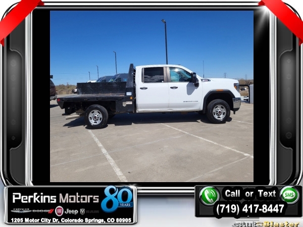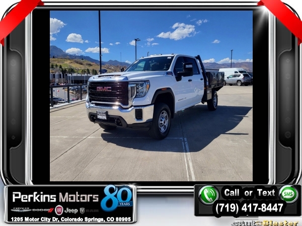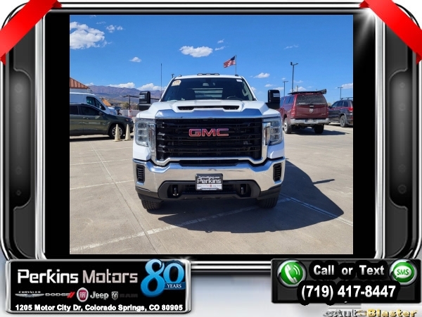 Summit White 4WD Duramax 6.6L V8 Turbodiesel 10-Speed Automatic<br><br>10-Speed Automatic, 4WD, Jet Black Vinyl.<br><br><br>CARFAX One-Owner. Clean CARFAX.<br><br>Check us out at www.perkinsmotors.com to see our specials! Since opening our doors in 1944, we’ve been proud to serve Colorado Springs, CO, and the surrounding areas of Pueblo, Castle Rock and Denver, CO. Throughout this time of being family owned for 80 years, we’ve maintained a firm commitment to our customers: to offer a wide selection of New Chrysler, Dodge, Fiat, Jeep, and Ram vehicles and quality pre-owned vehicles, and provide a quick, no-hassle car-buying process that ensures everyone drives off the lot satisfied with their purchase.<br><br><br>Convenience Package (Deep-Tinted Glass, Electric Rear-Window Defogger, EZ Lift Power Lock & Release Tailgate, LED Cargo Area Lighting, Outside Power-Adjustable Black Mirrors, Remote Keyless Entry, and Steering Wheel-Mounted Cruise Control), Preferred Equipment Group 1SA (2-Speed Electronic Shift Transfer Case, Chrome Surround Grille w/Black Mesh, Power Rear Windows w/Express Down, and Solar Absorbing Glass), Snow Plow Prep/Camper Package (220 Amps Alternator), Suspension Package, 10-Speed Automatic, 4WD, Jet Black Vinyl, 120-Volt Instrument Panel Power Outlet, 17 Steel Wheels, 3.42 Axle Ratio, 3.73 Rear Axle Ratio, 4-Way Manual Driver Seat Adjuster, 4-Way Manual Passenger Seat Adjuster, 4-Wheel Disc Brakes, 6 Speakers, 6-Speaker Audio System Feature, ABS brakes, Air Conditioning, AM/FM radio, AppLink/Apple CarPlay and Android Auto, Brake assist, Bumpers: chrome, Delay-off headlights, Driver door bin, Dual front impact airbags, Dual front side impact airbags, Electronic Stability Control, Engine Block Heater, Exhaust Brake, Front 40/20/40 Split-Bench Seats, Front anti-roll bar, Front Center Armrest w/Storage, Front License Plate Kit, Front reading lights, Front wheel independent suspension, Fully automatic headlights, Heavy-Duty 80 Amp Battery, Integrated Trailer Brake Controller, LED Smoked Amber Roof Marker Lamps, Low tire pressure warning, Occupant sensing airbag, Outside temperature display, Overhead airbag, Overhead console, Passenger door bin, Passenger vanity mirror, Pickup Box, Power steering, Power windows, Premium audio system: GMC Infotainment System, Radio: AM/FM w/GMC Infotainment System, Rear reading lights, Rear step bumper, Split folding rear seat, Tachometer, Tilt steering wheel, Traction control, Trip computer, Variably intermittent wipers, Vinyl Seat Trim, Voltmeter, and Winter Grille Cover.