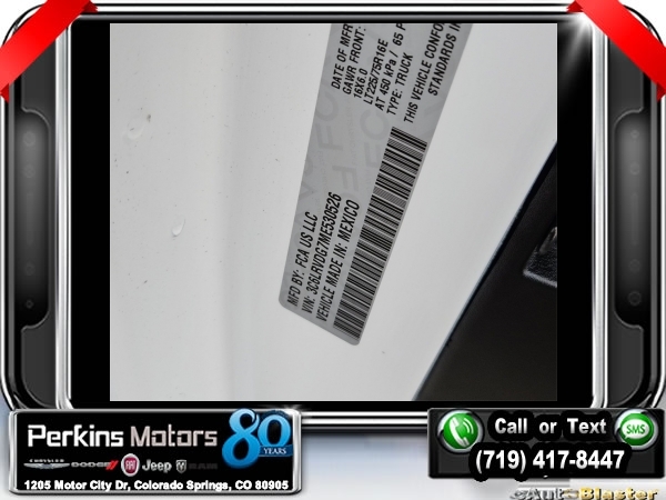 Bright White Clearcoat FWD 3.6L V6 24V VVT 6-Speed Automatic<br><br><br>CARFAX One-Owner. Clean CARFAX.<br><br>Check us out at www.perkinsmotors.com to see our specials! Since opening our doors in 1944, we’ve been proud to serve Colorado Springs, CO, and the surrounding areas of Pueblo, Castle Rock and Denver, CO. Throughout this time of being family owned for 80 years, we’ve maintained a firm commitment to our customers: to offer a wide selection of New Chrysler, Dodge, Fiat, Jeep, and Ram vehicles and quality pre-owned vehicles, and provide a quick, no-hassle car-buying process that ensures everyone drives off the lot satisfied with their purchase.<br><br><br>MOPAR Side Wall Paneling U & L (Side Wall Paneling Lower), Quick Order Package 21A, 3.86 Axle Ratio, 4 Speakers, 4-Wheel Disc Brakes, 5.0 Touchscreen Display, 96 Wide Exterior Mirrors, ABS brakes, Air Conditioning, AM/FM radio, Bodyside moldings, Brake assist, Center Wheel Cap, Cloth Bucket Seats, Deep Tint Sunscreen Glass, Driver door bin, Dual front impact airbags, Dual front side impact airbags, Electronic Stability Control, Front anti-roll bar, Front Bucket Seats, Front License Plate Bracket, Front reading lights, Front wheel independent suspension, Heavy Duty Suspension, Illuminated entry, Integrated Voice Command w/Bluetooth, Low tire pressure warning, Manufacturer's Statement of Origin, Media Hub (USB, AUX), Media Input Hub, Outside temperature display, Overhead airbag, ParkView Rear Back-Up Camera, Passenger door bin, Power steering, Power windows, Radio: Uconnect 3 w/5 Display, Rear Hinged Doors w/Fixed Glass, Remote keyless entry, Speed Control, Steering Wheel Mounted Audio Controls, Steering wheel mounted audio controls, Tachometer, Telescoping steering wheel, Traction control, Trip computer, Turn signal indicator mirrors, Variably intermittent wipers, Wheels: 16 x 6.0 Steel, and Wide Power Heated Mirrors.