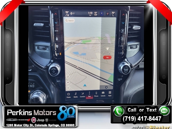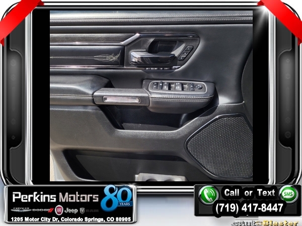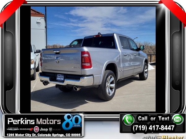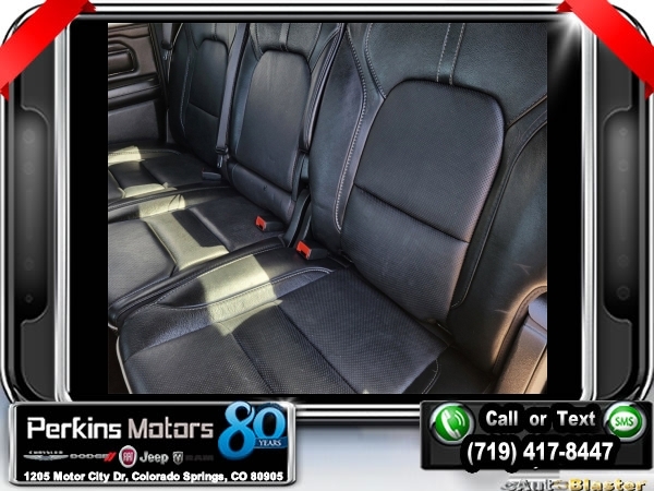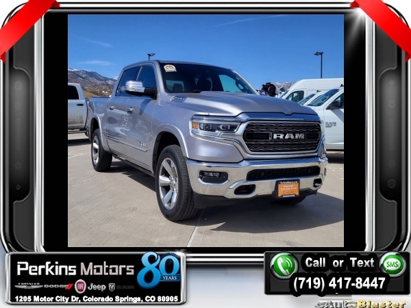 Billet Silver Metallic Clearcoat 4WD HEMI 5.7L V8 Multi Displacement VVT 8-Speed Automatic<br><br><br>Certified. FCA US LLC Certified Pre-Owned Details:<br><br> * Roadside Assistance<br> * Vehicle History<br> * Limited Warranty: 3 Month/3,000 Mile (whichever comes first) after new car warranty expires or from certified purchase date<br> * Warranty Deductible: $100<br> * Includes First Day Rental, Car Rental Allowance, and Trip Interruption Benefits. SiriusXM 3 month trial subscription.<br> * Transferable Warranty<br> * Powertrain Limited Warranty: 84 Month/100,000 Mile (whichever comes first) from original in-service date<br> * 125 Point Inspection<br><br><br>CARFAX One-Owner. Clean CARFAX.<br><br>Check us out at www.perkinsmotors.com to see our specials! Since opening our doors in 1944, we’ve been proud to serve Colorado Springs, CO, and the surrounding areas of Pueblo, Castle Rock and Denver, CO. Throughout this time of being family owned for 80 years, we’ve maintained a firm commitment to our customers: to offer a wide selection of New Chrysler, Dodge, Fiat, Jeep, and Ram vehicles and quality pre-owned vehicles, and provide a quick, no-hassle car-buying process that ensures everyone drives off the lot satisfied with their purchase.<br><br><br>Quick Order Package 27M Limited, FCA US LLC Certified Pre-Owned Certified, 10 Speakers, 3.21 Rear Axle Ratio, 4 Way Front Headrests, 4-Wheel Disc Brakes, 48V Belt Starter Generator, ABS brakes, Active Noise Control System, Adjustable pedals, Air Conditioning, Alloy wheels, AM/FM radio: SiriusXM with 360L, Apple CarPlay/Android Auto, Audio memory, Auto High-beam Headlights, Auto-dimming door mirrors, Auto-Dimming Exterior Driver Mirror, Auto-Dimming Exterior Passenger Mirror, Auto-dimming Rear-View mirror, Auto-leveling suspension, Automatic temperature control, Bodyside moldings, Brake assist, Bucket Seats, Bumpers: chrome, Chrome Exterior Mirrors, Compass, Convex Wide-Angle Mirror Insert, Cruise Control, Delay-off headlights, Delete Spray In Bedliner, Driver door bin, Driver Seat Memory, Driver vanity mirror, Dual front impact airbags, Dual front side impact airbags, Dual Rear Exhaust w/Bright Tips, Electronic Stability Control, Exterior Mirrors Courtesy Lamps, Exterior Mirrors w/Heating Element, Exterior Mirrors w/Memory, Exterior Mirrors w/Supplemental Signals, Front anti-roll bar, Front Bucket Seats, Front Center Armrest w/Storage, Front dual zone A/C, Front fog lights, Front License Plate Bracket, Front reading lights, Front Seat Back Map Pockets, Front wheel independent suspension, Full Length Premium Floor Console, Fully automatic headlights, Garage door transmitter, Genuine wood console insert, Genuine wood dashboard insert, Genuine wood door panel insert, Heated door mirrors, Heated Front Seats, Heated front seats, Heated rear seats, Heated Second Row Seats, Heated Steering Wheel, Heated steering wheel, Heavy-Duty Engine Cooling, HEMI Badge, Illuminated entry, Leather steering wheel, Low tire pressure warning, Manufacturer's Statement of Origin, Memory seat, Navigation System, Occupant sensing airbag, Outside temperature display, Overhead airbag, Overhead console, Panic alarm, ParkView Rear Back-Up Camera, Passenger door bin, Passenger vanity mirror, Pedal memory, Power 4-Way Driver Lumbar Adjust, Power 4-Way Passenger Lumbar Adjust, Power 8-Way Driver & Passenger Seats, Power door mirrors, Power driver seat, Power passenger seat, Power steering, Power windows, Power-Folding Mirrors, Premium Leather Trimmed Bucket Seats, Radio data system, Radio: Uconnect 5 Nav w/12.0 Display, Rain sensing wipers, Rear 60/40 Folding Split Recline Seat, Rear anti-roll bar, Rear seat center armrest, Rear step bumper, Rear window defroster, Remote keyless entry, Security system, Split folding rear seat, Steering wheel mounted audio controls, Tachometer, Telescoping steering wheel, Tilt steering wheel, Traction control, Trip computer, Turn signal indicator mirrors, Variably intermitte