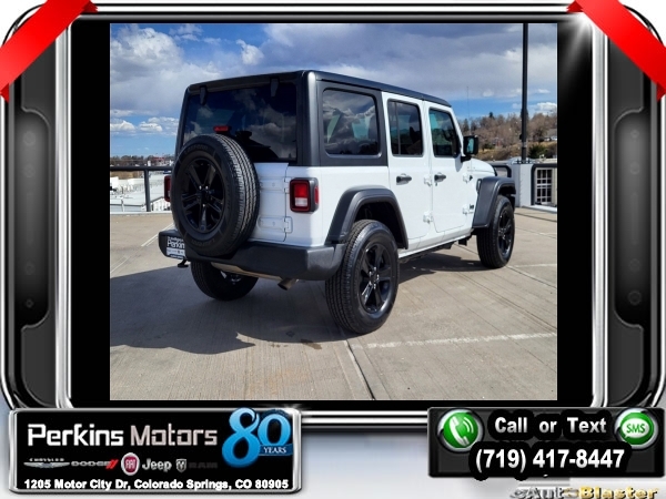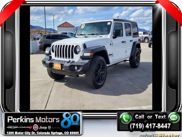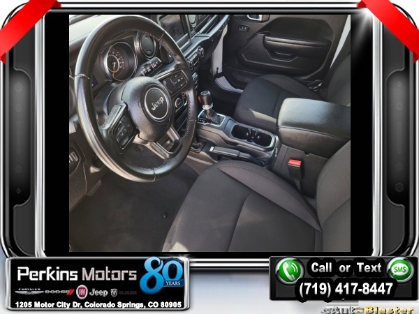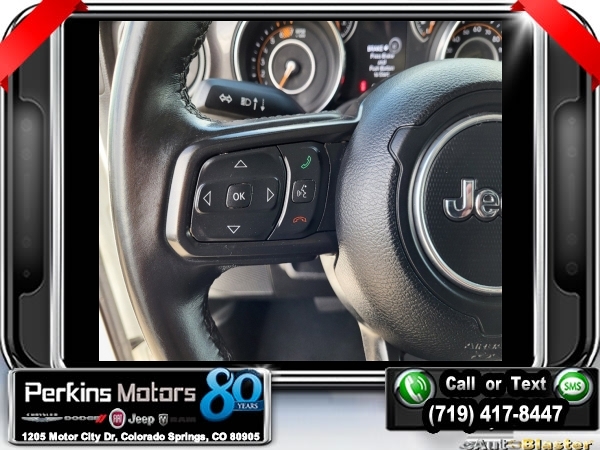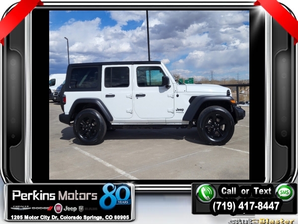 Bright White Clearcoat 4WD 2.0L I4 DOHC 8-Speed Automatic<br><br>110 MPH Vehicle Max Speed Calibration, 8 Speakers, Automatic Headlamps, Black 3-Piece Hard Top, Black Interior Accents, Black Trail Rated Badge, Body Color Grille w/Gloss Black Rings, Bridgestone Brand Tires, Deep Tint Sunscreen Windows, Front 1-Touch Down Power Windows, Heavy Duty Suspension w/Gas Shocks, Leather Wrapped Steering Wheel, Matte Black Jeep Badge, MOPAR Hardtop Headliner, Power Heated Mirrors, Quick Order Package 22L Altitude, Radio: Uconnect 4 w/7 Display, Remote Keyless Entry, Security Alarm, Speed Sensitive Power Locks, Sun Visors w/Illuminated Vanity Mirrors, Wheels: 18 x 7.5 Gloss Black Aluminum, Wizard Black Instrument Panel Bezels.<br><br>Certified. FCA US LLC Certified Pre-Owned Details:<br><br> * Warranty Deductible: $100<br> * Roadside Assistance<br> * Transferable Warranty<br> * Vehicle History<br> * 125 Point Inspection<br> * Powertrain Limited Warranty: 84 Month/100,000 Mile (whichever comes first) from original in-service date<br> * Includes First Day Rental, Car Rental Allowance, and Trip Interruption Benefits. SiriusXM 3 month trial subscription<br> * Limited Warranty: 3 Month/3,000 Mile (whichever comes first) after new car warranty expires or from certified purchase date<br><br><br>CARFAX One-Owner. Clean CARFAX.<br><br>Check us out at www.perkinsmotors.com to see our specials! Since opening our doors in 1944, we’ve been proud to serve Colorado Springs, CO, and the surrounding areas of Pueblo, Castle Rock and Denver, CO. Throughout this time of being family owned for 80 years, we’ve maintained a firm commitment to our customers: to offer a wide selection of New Chrysler, Dodge, Fiat, Jeep, and Ram vehicles and quality pre-owned vehicles, and provide a quick, no-hassle car-buying process that ensures everyone drives off the lot satisfied with their purchase.<br><br><br>Quick Order Package 22L Altitude (110 MPH Vehicle Max Speed Calibration, Automatic Headlamps, Black 3-Piece Hard Top, Black Interior Accents, Black Trail Rated Badge, Body Color Grille w/Gloss Black Rings, Bridgestone Brand Tires, Deep Tint Sunscreen Windows, Front 1-Touch Down Power Windows, Heavy Duty Suspension w/Gas Shocks, Leather Wrapped Steering Wheel, Matte Black Jeep Badge, MOPAR Hardtop Headliner, Power Heated Mirrors, Remote Keyless Entry, Security Alarm, Speed Sensitive Power Locks, Sun Visors w/Illuminated Vanity Mirrors, Wheels: 18 x 7.5 Gloss Black Aluminum, and Wizard Black Instrument Panel Bezels), FCA US LLC Certified Pre-Owned Certified, 8 Speakers, Radio: Uconnect 4 w/7 Display, 3.45 Rear Axle Ratio, 4-Wheel Disc Brakes, ABS brakes, Air Conditioning, AM/FM radio, Apple CarPlay/Android Auto, Aux Battery, Brake assist, Cloth Low-Back Bucket Seats, Compass, Cruise Control, Delay-off headlights, Driver door bin, Driver vanity mirror, Dual front impact airbags, Dual front side impact airbags, Electronic Stability Control, Emergency communication system: SiriusXM Guardian, Engine Oil Cooler, Front anti-roll bar, Front Bucket Seats, Front Center Armrest w/Storage, Front fog lights, Front reading lights, Integrated roll-over protection, Low tire pressure warning, Manufacturer's Statement of Origin, Non-Lock Fuel Cap w/o Discriminator, Normal Duty Suspension, Occupant sensing airbag, Outside temperature display, ParkView Rear Back-Up Camera, Passenger door bin, Passenger vanity mirror, Power steering, Radio data system, Rear anti-roll bar, Rear reading lights, Split folding rear seat, Steering wheel mounted audio controls, Stop-Start Dual Battery System, Tachometer, Telescoping steering wheel, Tilt steering wheel, Traction control, Trip computer, Variably intermittent wipers, and Wheels: 17 x 7.5 Black Steel Styled.
