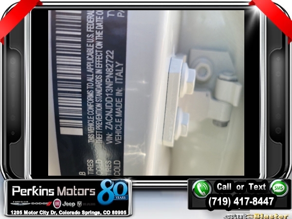 Alpine White Clearcoat 4WD 1.3L I4 9-Speed 948TE Automatic<br><br><br>Certified. FCA US LLC Certified Pre-Owned Details:<br><br> * Transferable Warranty<br> * Limited Warranty: 3 Month/3,000 Mile (whichever comes first) after new car warranty expires or from certified purchase date<br> * Warranty Deductible: $100<br> * Powertrain Limited Warranty: 84 Month/100,000 Mile (whichever comes first) from original in-service date<br> * Roadside Assistance<br> * Vehicle History<br> * Includes First Day Rental, Car Rental Allowance, and Trip Interruption Benefits. SiriusXM 3 month trial subscription<br> * 125 Point Inspection<br><br><br>CARFAX One-Owner.<br><br>Check us out at www.perkinsmotors.com to see our specials! Since opening our doors in 1944, we’ve been proud to serve Colorado Springs, CO, and the surrounding areas of Pueblo, Castle Rock and Denver, CO. Throughout this time of being family owned for 80 years, we’ve maintained a firm commitment to our customers: to offer a wide selection of New Chrysler, Dodge, Fiat, Jeep, and Ram vehicles and quality pre-owned vehicles, and provide a quick, no-hassle car-buying process that ensures everyone drives off the lot satisfied with their purchase.<br><br><br>Quick Order Package 22D, FCA US LLC Certified Pre-Owned Certified, 3.734 Final Drive Ratio, 4-Wheel Disc Brakes, 6 Speakers, ABS brakes, Air Conditioning, Alloy wheels, AM/FM radio: SiriusXM, Anti-whiplash front head restraints, Apple CarPlay/Android Auto, Auto-dimming Rear-View mirror, Automatic temperature control, Brake assist, Compass, Cruise Control, Delay-off headlights, Driver door bin, Driver vanity mirror, Dual front impact airbags, Dual front side impact airbags, Electronic Stability Control, Emergency communication system: SiriusXM Guardian, Four wheel independent suspension, Front anti-roll bar, Front Bucket Seats, Front Center Armrest, Front dual zone A/C, Front fog lights, Front reading lights, Fully automatic headlights, Heated door mirrors, Heated front seats, Heated steering wheel, Illuminated entry, Knee airbag, Leather Shift Knob, Leather steering wheel, Leather Trimmed Bucket Seats, Low tire pressure warning, Navigation System, Normal Duty Suspension, Occupant sensing airbag, Outside temperature display, Overhead airbag, Panic alarm, ParkView Rear Back-Up Camera, Passenger door bin, Passenger vanity mirror, Power door mirrors, Power driver seat, Power steering, Power windows, Radio data system, Radio: Uconnect 4C Nav w/8.4 Display, Rain sensing wipers, Rear anti-roll bar, Rear seat center armrest, Rear window defroster, Rear window wiper, Remote keyless entry, Roof rack: rails only, Security system, Split folding rear seat, Spoiler, Steering wheel mounted audio controls, Tachometer, Telescoping steering wheel, Tilt steering wheel, Traction control, Trip computer, Turn signal indicator mirrors, Variably intermittent wipers, Voltmeter, and Wheels: 18 x 7.0 Painted Aluminum.