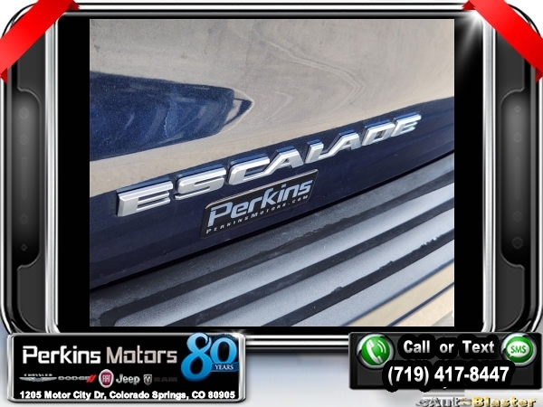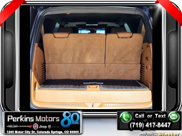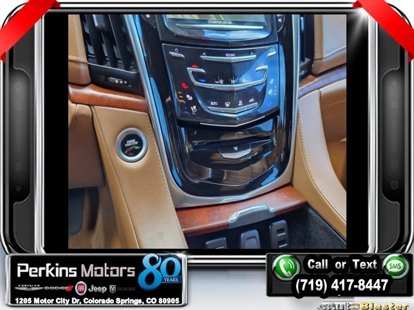 Dark Adriatic Blue Metallic 4WD 6.2L Variable Valve Timing V8 SIDI 8-Speed Automatic<br><br>4WD, Tuscan Brown Leather.<br><br><br>Clean CARFAX.<br><br>Check us out at www.perkinsmotors.com to see our specials! Since opening our doors in 1944, we’ve been proud to serve Colorado Springs, CO, and the surrounding areas of Pueblo, Castle Rock and Denver, CO. Throughout this time of being family owned for 80 years, we’ve maintained a firm commitment to our customers: to offer a wide selection of New Chrysler, Dodge, Fiat, Jeep, and Ram vehicles and quality pre-owned vehicles, and provide a quick, no-hassle car-buying process that ensures everyone drives off the lot satisfied with their purchase.<br><br>Reviews:<br> * More than enough power from the standard 6.2-liter V8 engine; luxurious cabin remains pleasantly quiet in nearly any circumstance; optional second-row bench increases seating capacity to eight; impressive towing abilities that most competitors can't match. Source: Edmunds<br><br><br>Awards:<br> * JD Power Automotive Performance, Execution and Layout (APEAL) Study * 2017 KBB.com 10 Best Luxury SUVs<br><br>Driver Assist Package (Adaptive Full-Speed Range Cruise Control, Automatic Safety Belt Tightening, Electronic Powered Parking Brake, and Front & Rear Automatic Braking), Platinum Package (Cooled Console w/Covered Storage, Dual DVD Screens, Leather Wrapped IP/Console/Door, Microfiber Sueded Headliner, Platinum Sill Plates, Premium Floor Mats, Unique Exotic Wood, and Unique Grille Design), Preferred Equipment Group 1SD (Forward Collision Alert, Illuminated Door Handles, IntelliBeam Headlamps, Lane Change Alert, Lane Keep Assist w/Lane Departure Warning, Power Tilt-Sliding Sunroof w/Express-Open/Close, Power-Retractable Assist Steps, Rear Camera Mirror, Rear Camera Washer, Rear Cross-Traffic Alert, Rear Seat Entertainment System, Reconfigurable 4-Color Head-Up Display, Second Row Bucket Seats, Side Blind Zone Alert, and VAC Power 17 Disc Brakes), Theft-Deterrent Package (Inclination Sensor, Theft-Deterrent Alarm System, and Vehicle Interior Movement Sensor), 4WD, Tuscan Brown Leather, 16 Speakers, 2-Position Memory For Driver's Seat Adjuster, 3.23 Axle Ratio, 3rd row seats: split-bench, 4-Wheel Disc Brakes, A/V remote, ABS brakes, Adaptive suspension, Adjustable pedals, Air Conditioning, Alloy wheels, AM/FM radio: SiriusXM, Apple CarPlay, Auto High-beam Headlights, Auto tilt-away steering wheel, Auto-dimming door mirrors, Auto-leveling suspension, Automatic temperature control, Black Front License Plate Bracket, Bodyside moldings, Bose Centerpoint Surround Sound System, Brake assist, Bumpers: body-color, CD player, Compass, Cruise Control, Delay-off headlights, Driver door bin, Driver vanity mirror, Dual front impact airbags, Dual front side impact airbags, DVD-Audio, Electronic Stability Control, Emergency communication system: OnStar Protection, Engine Block Heater, Exterior Parking Camera Rear, Front anti-roll bar, Front Bucket Seats, Front Center Armrest w/Storage, Front dual zone A/C, Front reading lights, Front wheel independent suspension, Fully automatic headlights, Garage door transmitter, Genuine wood dashboard insert, HD Radio, Headphones, Heads-Up Display, Heated & Cooled Front Bucket Seats, Heated door mirrors, Heated front seats, Heated rear seats, Heated steering wheel, Illuminated entry, Leather Shift Knob, Leather steering wheel, Low tire pressure warning, Magnetic Ride Control Suspension, Memory seat, Navigation System, NavTraffic, Occupant sensing airbag, Outside temperature display, Overhead airbag, Overhead console, Panic alarm, Passenger door bin, Passenger vanity mirror, Pedal memory, Power door mirrors, Power driver seat, Power Liftgate, Power moonroof, Power passenger seat, Power steering, Power windows, Radio data system, Radio: Cadillac CUE Info/Media Ctrl Sys w/Embd Nav, Rain sensing wipers, Rear air conditioning, Rear anti-roll bar, Rear audio controls, Rear reading lights, Rear window