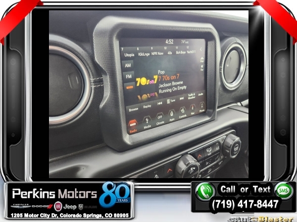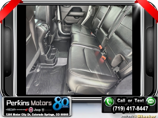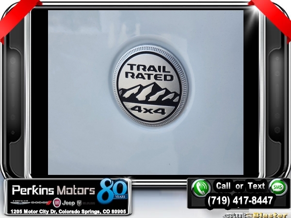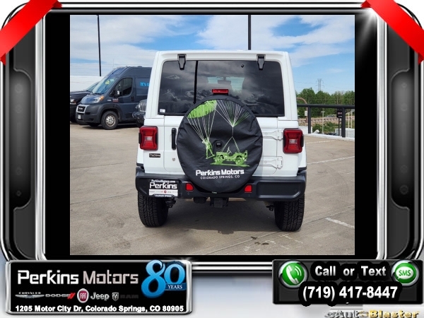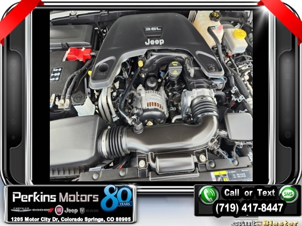 Bright White Clearcoat 4WD 3.6L V6 24V VVT 8-Speed Automatic<br><br>1-Year SiriusXM Guardian Trial, 240 Amp Alternator, 4G LTE Wi-Fi Hot Spot, 5-Year SiriusXM Traffic Service, 5-Year SiriusXM Travel Link Service, 7 & 4 Pin Wiring Harness, 700 Amp Maintenance Free Battery, 8.4 Radio & Premium Audio Group, 8.4 Touchscreen Display, Auto-Dimming Rear-View Mirror, Auxiliary Switches, Blind Spot & Cross Path Detection, Body Color 3-Piece Hard Top, Class II Receiver Hitch, Cold Weather Group, Daytime Running Lamps LED Accents, Emergency/Assistance Call, For Details, Visit DriveUconnect.ca, Freedom Panel Storage Bag, Front LED Fog Lamps, GPS Navigation, HD Radio, Heated Front Seats, Heated Steering Wheel, LED Lighting Group, LED Reflector Headlamps, LED Taillamps, Navigation System, No Soft Top, ParkSense Rear Park Assist System, Quick Order Package 24G, Radio: Uconnect 4C Nav w/8.4 Display, Rear Window Defroster, Rear Window Wiper/Washer, Safety Group, SiriusXM Traffic Plus, SiriusXM Travel Link, Trailer Tow & HD Electrical Group.<br><br><br>Clean CARFAX.<br><br>Check us out at www.perkinsmotors.com to see our specials! Since opening our doors in 1944, we’ve been proud to serve Colorado Springs, CO, and the surrounding areas of Pueblo, Castle Rock and Denver, CO. Throughout this time of being family owned for 80 years, we’ve maintained a firm commitment to our customers: to offer a wide selection of New Chrysler, Dodge, Fiat, Jeep, and Ram vehicles and quality pre-owned vehicles, and provide a quick, no-hassle car-buying process that ensures everyone drives off the lot satisfied with their purchase.<br><br><br>8.4 Radio & Premium Audio Group (1-Year SiriusXM Guardian Trial, 4G LTE Wi-Fi Hot Spot, 5-Year SiriusXM Traffic Service, 5-Year SiriusXM Travel Link Service, 8.4 Touchscreen Display, Auto-Dimming Rear-View Mirror, Emergency/Assistance Call, For Details, Visit DriveUconnect.ca, GPS Navigation, HD Radio, Radio: Uconnect 4C Nav w/8.4 Display, SiriusXM Traffic Plus, and SiriusXM Travel Link), Cold Weather Group (Heated Front Seats and Heated Steering Wheel), LED Lighting Group (Daytime Running Lamps LED Accents, Front LED Fog Lamps, LED Reflector Headlamps, and LED Taillamps), Quick Order Package 24G, Safety Group (Blind Spot & Cross Path Detection and ParkSense Rear Park Assist System), Trailer Tow & HD Electrical Group (240 Amp Alternator, 7 & 4 Pin Wiring Harness, 700 Amp Maintenance Free Battery, Auxiliary Switches, and Class II Receiver Hitch), Body Color 3-Piece Hard Top, Freedom Panel Storage Bag, Navigation System, No Soft Top, Rear Window Defroster, Rear Window Wiper/Washer, 3.45 Rear Axle Ratio, 4-Wheel Disc Brakes, 8 Speakers, ABS brakes, Air Conditioning, Alloy wheels, Alpine Premium Audio System, AM/FM radio: SiriusXM, Apple CarPlay/Android Auto, Automatic temperature control, Brake assist, Cloth Low-Back Bucket Seats, Compass, Cruise Control, Delay-off headlights, Driver door bin, Driver vanity mirror, Dual front impact airbags, Dual front side impact airbags, Electronic Stability Control, Front anti-roll bar, Front Bucket Seats, Front Center Armrest w/Storage, Front dual zone A/C, Front fog lights, Front reading lights, Fully automatic headlights, Garage door transmitter, Heated door mirrors, Heavy Duty Suspension w/Gas Shocks, Illuminated entry, Integrated roll-over protection, Leather steering wheel, Low tire pressure warning, MOPAR All-Weather Floor Mats, MOPAR Hardtop Headliner, Non-Lock Fuel Cap w/o Discriminator, Occupant sensing airbag, Outside temperature display, Panic alarm, ParkView Rear Back-Up Camera, Passenger door bin, Passenger vanity mirror, Power door mirrors, Power steering, Power windows, Radio data system, Radio: Uconnect 4 w/7 Display, Rear anti-roll bar, Rear reading lights, Remote keyless entry, Remote Proximity Keyless Entry, Remote Start System, Security system, Split folding rear seat, Steering wheel mounted audio controls, Tachometer, Telescoping steering wheel, Tilt steering wh