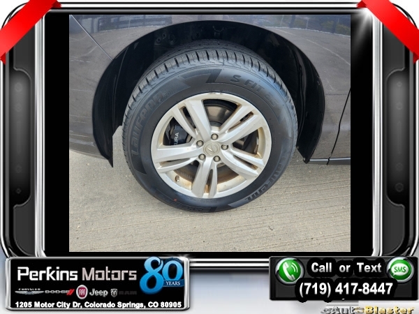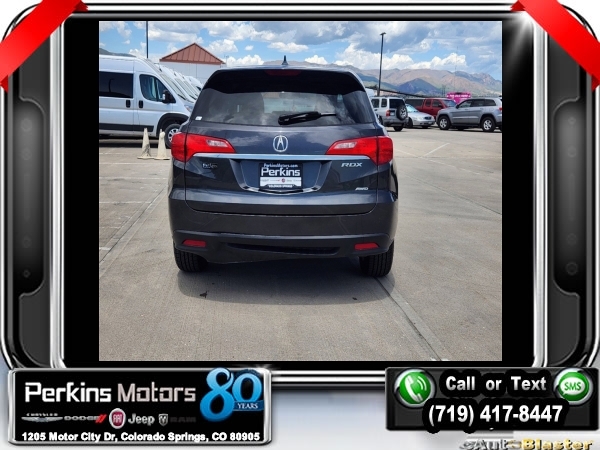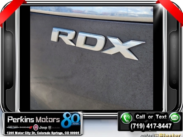 Graphite AWD 3.5L V6 SOHC i-VTEC 24V 6-Speed Automatic<br><br>AWD.<br><br><br>CARFAX One-Owner.<br><br>Check us out at www.perkinsmotors.com to see our specials! Since opening our doors in 1944, we’ve been proud to serve Colorado Springs, CO, and the surrounding areas of Pueblo, Castle Rock and Denver, CO. Throughout this time of being family owned for 80 years, we’ve maintained a firm commitment to our customers: to offer a wide selection of New Chrysler, Dodge, Fiat, Jeep, and Ram vehicles and quality pre-owned vehicles, and provide a quick, no-hassle car-buying process that ensures everyone drives off the lot satisfied with their purchase.<br><br>Reviews:<br> * The 2015 RDX is the ideal choice if you want a luxury SUV but not the sticker shock and questionable reliability that can be associated with one. Above-average resale value and Acura’s reputation for quality add further peace of mind. Source: KBB.com<br> * Strong yet fuel-efficient V6; generous rear legroom; lengthy standard features list; competitive price. Source: Edmunds<br> * The 2015 Acura RDX is a powerful compact crossover that offers a stylish exterior with a luxury interior. The RDX is equipped with a 3.5-liter, i-VTEC V-6 Engine, that produces 273 Horsepower. Despite its power it remains fuel efficient with the front-wheel drive model getting an EPA rating of 20 MPG City, 28 MPG Highway, and a combined 23 MPG. The all-wheel drive version is impressive as well with 19 MPG City, 27 MPG Highway, and 22 MPG combined. The Engine in the RDX comes with Variable Cylinder Management that automatically makes changes to the number of cylinders used at any given time. It enables it so the engine can run on six, four, or three cylinders depending on power demand, allowing for the most fuel efficiency possible. The RDX comes standard with a Sequential SportShift Automatic Transmission with steering-mounted paddle shifters. You have the option to choose either Drive mode for smooth shifting and optimal fuel efficiency, or you can go into Sport mode for performance driving and quick, precise shifts at your fingertips. If you choose to upgrade into the All-Wheel Drive model, it comes with Intelligent Control. This uses the front wheels only to propel the vehicle during regular cruising, and supplies more power to the rear depending on how slippery the surface you are driving on is. The interior of the RDX offers comfortable seating for up to five passengers with its plush leather seats in front and back. The driver and front passenger get dual-level heaters in seats and dual-zone climate controls. The driver's seat also comes equipped with a lumbar adjustment feature to keep your back comfortable. For safety, the RDX comes with a rearview camera, which activates whenever the vehicle is put into reverse. Also included is the Bluetooth HandsFreeLink, as well as the text message function that can read your texts to you and supply you with your choice of six pre-loaded responses. The Technology Package includes a Navigation System and a Destination Database to direct you to nearby ATMs, restaurants, and more. It also comes with AcuraLink, an easy to use data network that reminds you about maintenance appointments and communicates directly with your dealer. If you are looking for comfort without compromise, step into the 2015 Acura RDX. Source: The Manufacturer Summary<br><br><br>Awards:<br> * 2015 KBB.com 10 Best Luxury Cars Under $35,000<br>For more information, visit www.kbb.com. Kelley Blue Book is a registered trademark of Kelley Blue Book Co., Inc.<br><br>AWD, 10 Speakers, 18 x 7.5 Aluminum Alloy Wheels, 4-Wheel Disc Brakes, 4.25 Axle Ratio, ABS brakes, Air Conditioning, Alloy wheels, AM/FM radio: SiriusXM, Anti-whiplash front head restraints, Auto-dimming Rear-View mirror, Automatic temperature control, Brake assist, Bumpers: body-color, CD player, Cruise Control, Delay-off headlights, Driver door bin, Driver vanity mirror, Dual front impact airbags, Dual fron