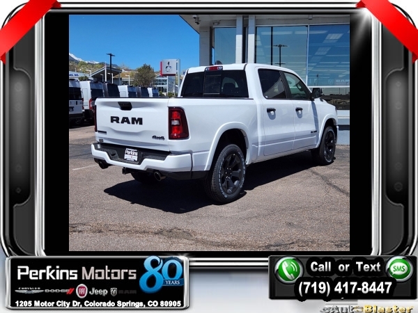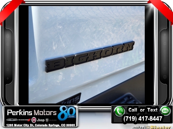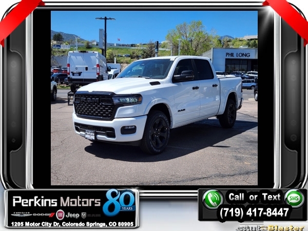 Factory MSRP: $62,270 $11,705 off MSRP! Bright White Clearcoat 2025 Ram 1500 Big Horn/Lone Star 4WD 8-Speed Automatic 3.0L I6<br><br>Check us out at www.perkinsmotors.com to see our specials! Since opening our doors in 1944, we’ve been proud to serve Colorado Springs, CO, and the surrounding areas of Pueblo, Castle Rock and Denver, CO. Throughout this time of being family owned for 80 years, we’ve maintained a firm commitment to our customers: to offer a wide selection of New Chrysler, Dodge, Fiat, Jeep, and Ram vehicles and quality pre-owned vehicles, and provide a quick, no-hassle car-buying process that ensures everyone drives off the lot satisfied with their purchase.<br><br>Big Horn Level 2 Equipment Group (115V Auxiliary Power Outlet, 115V Auxiliary Rear Power Outlet, 12 Touchscreen Display, 2nd Row In Floor Storage Bins, 400W Inverter, 4G LTE Wi-Fi Hot Spot, 9 Amplified Speakers w/Subwoofer, Air Conditioning ATC w/Dual Zone Control, Apple CarPlay, Auto Power-Folding Mirrors, Auto-Dimming Exterior Driver Mirror, Auto-Dimming Rear-View Mirror, Black Exterior Mirrors, Black Premium Power Mirrors, Cluster 7.0 TFT Color Display, Configurable Drive Mode, Connected Travel & Traffic Services, Connectivity - US/Canada, Convex Wide-Angle Exterior Mirror Insert, Exterior Mirrors Courtesy Lamps, Exterior Mirrors w/Heating Element, Exterior Mirrors w/Supplemental Signals, Glove Box Lamp, Google Android Auto, GPS Antenna Input, GPS Navigation, HD Radio, Heated Front Seats, Heated Steering Wheel, Integrated Voice Command w/Bluetooth, Leather Wrapped Steering Wheel, LED Dome Lamp w/On/Off Switch, LED Footwell Lighting, Media Hub w/2 Charge Only USBs, Overhead LED Lamps, Power 2-Way Driver Lumbar Adjust, Power Adjust 8-Way Driver Seat, Power Adjustable Pedals, Premium Overhead Console, Radio: Uconnect 5 Nav w/12.0 Display, Rear Power Sliding Window, Rear Window Defroster, Remote Tailgate Release, Security Alarm, SiriusXM w/360L, Sun Visors w/Illuminated Vanity Mirrors, Universal Garage Door Opener, and USB Host Flip), Night Edition (3 Rear Seat Head Restraints, 4 Way Front Headrests, Accent Color Door Handles, Accent Color Premium Power Mirrors, Anti-Spin Differential Rear Axle, Black Exterior Truck Badging, Black Headlamp Bezels, Black Interior Accents, Black Painted Exterior Mirrors Caps, Black Tail Lamp Bezels, Body Color Front Bumper, Body Color Rear Bumper w/Step Pads, Bucket Seats, Deluxe Cloth Bucket Seats, Front Seat Back Map Pockets, Full Length Floor Console, Grille Black Surround Black Mesh, Manual Adjust 4-Way Front Passenger Seat, RAM Grille Badge - Black, Rear 60/40 Folding Seat, Rear Center Armrest, and Wheels: 20 x 9.0 Aluminum Painted Clad), Quick Order Package 21Z Big Horn, 3.21 Rear Axle Ratio, 3.55 Rear Axle Ratio, 4-Wheel Disc Brakes, 6 Speakers, ABS brakes, Air Conditioning, Alloy wheels, AM/FM radio, Apple CarPlay/Android Auto, Auto High-beam Headlights, Brake assist, Bumpers: chrome, Cloth Bench Seat, Compass, Cruise Control, Delay-off headlights, Driver door bin, Dual front impact airbags, Dual front side impact airbags, Electronic Stability Control, Engine Block Heater, Front anti-roll bar, Front Center Armrest w/Storage, Front fog lights, Front License Plate Bracket, Front reading lights, Front wheel independent suspension, Fully automatic headlights, Heated door mirrors, Illuminated entry, Low tire pressure warning, Manual Folding Exterior Mirrors, MOPAR Front & Rear Rubber Floor Mats, Occupant sensing airbag, Outside temperature display, Overhead airbag, Overhead console, Panic alarm, ParkView Rear Back-Up Camera, Passenger door bin, Passenger vanity mirror, Sale price includes all manufacture's incentives and dealer discounts. Sale price not available on lease or compatible with special APR. $1500 - 2025 National Bonus Cash . Exp. 10/31/2024 $2000 - 2025 Denver BC SFS Bonus Cash . Exp. 10/31/2024 $4000 - 2025 National Retail Consumer Cash. Exp. 10/31/2024 Price includes $795 in dealer added a