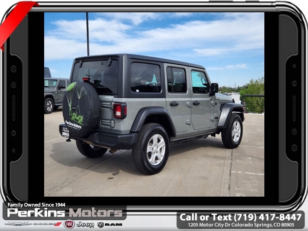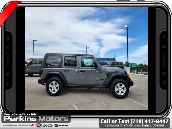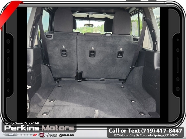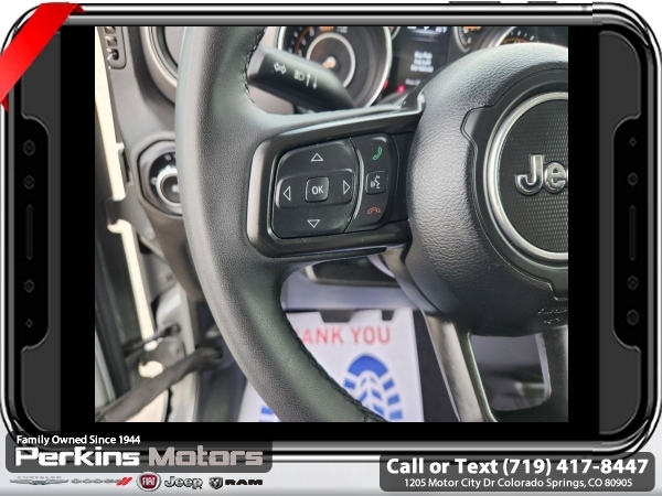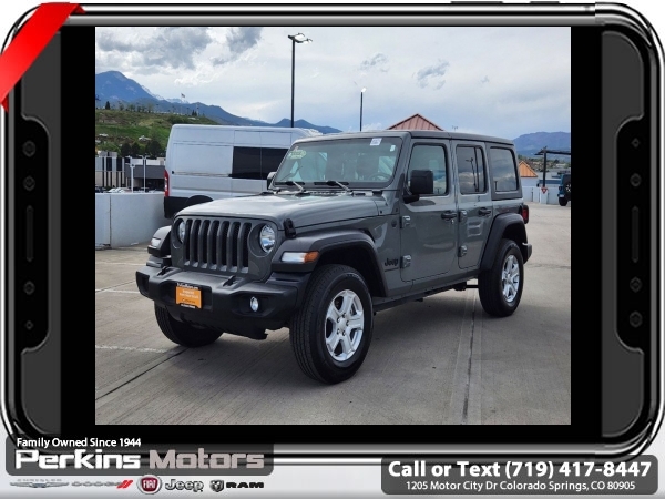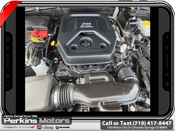 Sting-Gray Clearcoat 4WD 2.0L I4 DOHC 8-Speed Automatic<br><br>8 Speakers, Automatic Headlamps, Deep Tint Sunscreen Windows, Front 1-Touch Down Power Windows, Power Heated Mirrors, Premium Wrapped Steering Wheel, Quick Order Package 22S Sport S, Radio: Uconnect 4 w/7 Display, Remote Keyless Entry, Security Alarm, Speed Sensitive Power Locks, Sport S, Sun Visors w/Illuminated Vanity Mirrors, Wheels: 17 x 7.5 Tech Silver Aluminum.<br><br>Certified. FCA US LLC Certified Pre-Owned Details:<br><br> * Warranty Deductible: $100<br> * Includes First Day Rental, Car Rental Allowance, and Trip Interruption Benefits. SiriusXM 3 month trial subscription<br> * Limited Warranty: 3 Month/3,000 Mile (whichever comes first) after new car warranty expires or from certified purchase date<br> * Vehicle History<br> * Transferable Warranty<br> * Powertrain Limited Warranty: 84 Month/100,000 Mile (whichever comes first) from original in-service date<br> * 125 Point Inspection<br> * Roadside Assistance<br><br><br>CARFAX One-Owner. Clean CARFAX.<br><br>Check us out at www.perkinsmotors.com to see our specials! Since opening our doors in 1944, we’ve been proud to serve Colorado Springs, CO, and the surrounding areas of Pueblo, Castle Rock and Denver, CO. Throughout this time of being family owned for 80 years, we’ve maintained a firm commitment to our customers: to offer a wide selection of New Chrysler, Dodge, Fiat, Jeep, and Ram vehicles and quality pre-owned vehicles, and provide a quick, no-hassle car-buying process that ensures everyone drives off the lot satisfied with their purchase.<br><br><br>Quick Order Package 22S Sport S (Automatic Headlamps, Deep Tint Sunscreen Windows, Front 1-Touch Down Power Windows, Power Heated Mirrors, Premium Wrapped Steering Wheel, Remote Keyless Entry, Security Alarm, Speed Sensitive Power Locks, Sport S, Sun Visors w/Illuminated Vanity Mirrors, and Wheels: 17 x 7.5 Tech Silver Aluminum), FCA US LLC Certified Pre-Owned Certified, 8 Speakers, Radio: Uconnect 4 w/7 Display, 3.45 Overall Top Gear Ratio, 4-Wheel Disc Brakes, ABS brakes, Air Conditioning, AM/FM radio, Apple CarPlay, Apple CarPlay/Android Auto, Aux Battery, Black 3-Piece Hard Top, Brake assist, Cloth Low-Back Bucket Seats, Compass, Cruise Control, Delay-off headlights, Driver door bin, Driver vanity mirror, Dual front impact airbags, Dual front side impact airbags, Electronic Stability Control, Emergency communication system: SiriusXM Guardian, Engine Oil Cooler, Front anti-roll bar, Front Bucket Seats, Front Center Armrest w/Storage, Front fog lights, Front reading lights, Google Android Auto, GPS Antenna Input, Integrated Center Stack Radio, Integrated roll-over protection, Integrated Voice Command w/Bluetooth, Low tire pressure warning, Non-Lock Fuel Cap w/o Discriminator, Normal Duty Suspension, Occupant sensing airbag, Outside temperature display, ParkView Rear Back-Up Camera, Passenger door bin, Passenger vanity mirror, Power steering, Radio data system, Rear anti-roll bar, Rear reading lights, Split folding rear seat, Steering wheel mounted audio controls, Stop-Start Dual Battery System, Tachometer, Telescoping steering wheel, Tilt steering wheel, Traction control, Trip computer, USB Host Flip, Variably intermittent wipers, Wheels: 17 x 7.5 Black Steel Styled, and Wheels: 17 x 7.5 Tech Silver Aluminum (DISC)
