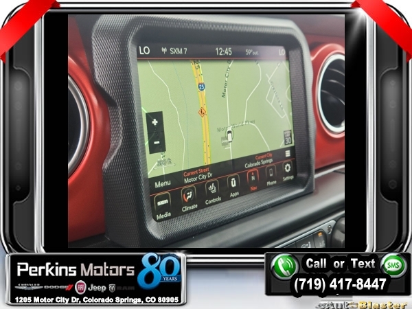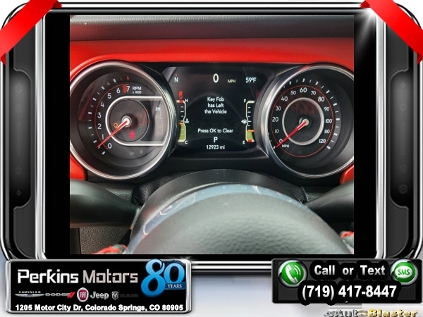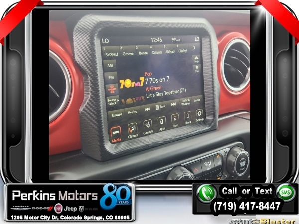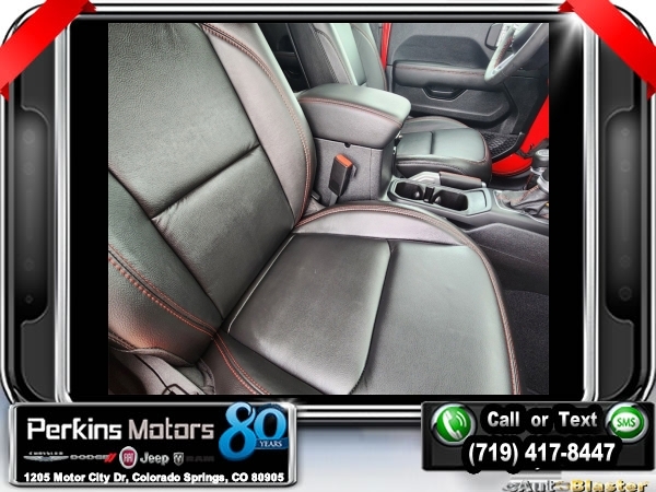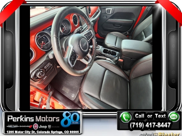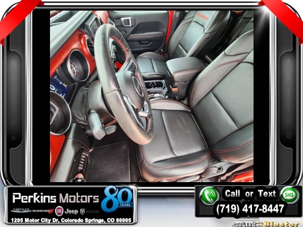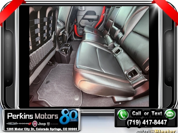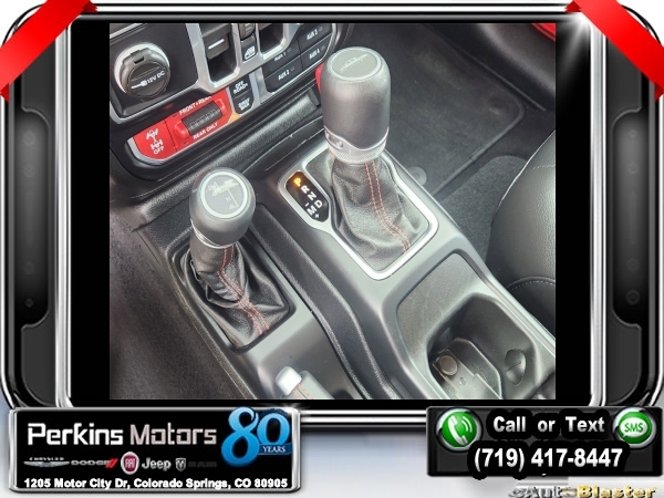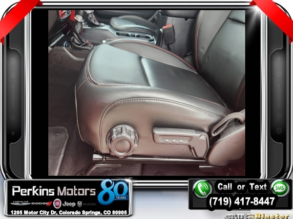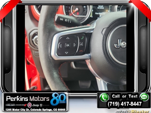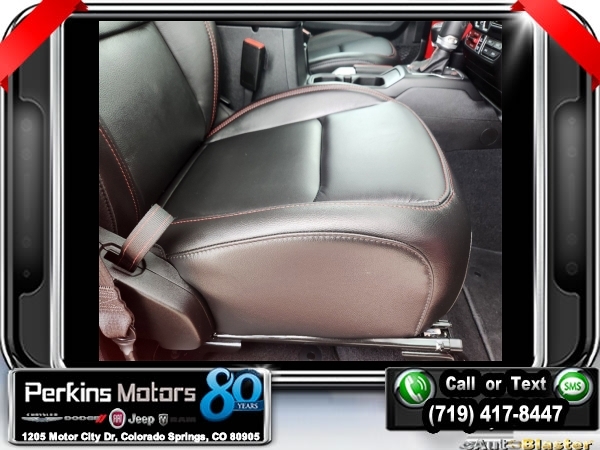 Firecracker Red Clearcoat 4WD 3.6L V6 24V VVT 8-Speed Automatic<br><br><br>Certified. FCA US LLC Certified Pre-Owned Details:<br><br> * Vehicle History<br> * Transferable Warranty<br> * 125 Point Inspection<br> * Roadside Assistance<br> * Powertrain Limited Warranty: 84 Month/100,000 Mile (whichever comes first) from original in-service date<br> * Limited Warranty: 3 Month/3,000 Mile (whichever comes first) after new car warranty expires or from certified purchase date<br> * Warranty Deductible: $100<br> * Includes First Day Rental, Car Rental Allowance, and Trip Interruption Benefits. SiriusXM 3 month trial subscription<br><br><br>CARFAX One-Owner. Clean CARFAX.<br><br>Check us out at www.perkinsmotors.com to see our specials! Since opening our doors in 1944, we’ve been proud to serve Colorado Springs, CO, and the surrounding areas of Pueblo, Castle Rock and Denver, CO. Throughout this time of being family owned for 80 years, we’ve maintained a firm commitment to our customers: to offer a wide selection of New Chrysler, Dodge, Fiat, Jeep, and Ram vehicles and quality pre-owned vehicles, and provide a quick, no-hassle car-buying process that ensures everyone drives off the lot satisfied with their purchase.<br><br><br>8.4 Radio & Premium Audio Group (1-Year SiriusXM Guardian Trial, 8.4 Touchscreen Display, Alpine Premium Audio System, Auto-Dimming Rear-View Mirror, GPS Navigation, Radio: Uconnect 4C Nav w/8.4 Display, SiriusXM Traffic Plus, and SiriusXM Travel Link), Advanced Safety Group (Advanced Brake Assist and Auto High Beam Headlamp Control), Auxiliary Switch Group (Auxiliary Switches), Cold Weather Group (Heated Front Seats), GVWR: 6,250 lbs w/Max Tow Package, LED Lighting Group, Quick Order Package 24R, Safety Group (Blind Spot & Cross Path Detection), Trail Rail Management System (Exterior 115V AC Outlet), Trailer Tow Package (Class IV Hitch Receiver, Heavy-Duty Engine Cooling, and Trailer Hitch Zoom), FCA US LLC Certified Pre-Owned Certified, 4-Wheel Disc Brakes, 4.10 Rear Axle Ratio, 8 Speakers, 97 mph Maximum Speed Calibration, ABS brakes, Air Conditioning, Alloy wheels, AM/FM radio: SiriusXM, Apple CarPlay/Android Auto, Automatic temperature control, Bluetooth Wireless Speaker, Body Color 3-Piece Hard Top, Body Color Fender Flares (2-Piece), Brake assist, Compass, Cruise Control, Delay-off headlights, Driver door bin, Driver vanity mirror, Dual front impact airbags, Dual front side impact airbags, Electronic Stability Control, Engine Block Heater, Freedom Panel Storage Bag, Front anti-roll bar, Front Bucket Seats, Front Center Armrest w/Storage, Front dual zone A/C, Front fog lights, Front License Plate Bracket, Front reading lights, Fully automatic headlights, Garage door transmitter, Heated door mirrors, Illuminated entry, Integrated Off-Road Camera, Integrated roll-over protection, Leather steering wheel, Low tire pressure warning, Manufacturer's Statement of Origin, MOPAR Cold Air Intake System, MOPAR Hardtop Headliner, MOPAR Spray In Bedliner, Occupant sensing airbag, Outside temperature display, Panic alarm, ParkView Rear Back-Up Camera, Passenger door bin, Passenger vanity mirror, Performance Suspension, Power door mirrors, Power steering, Power windows, Premium Cloth Low-Back Bucket Seats, Radio data system, Radio: Uconnect 4 w/7 Display, Rear anti-roll bar, Rear reading lights, Rear Sliding Window, Redical Instrument Panel Bezels, Remote keyless entry, Remote Proximity Keyless Entry, Remote Start System, Roll-Up Tonneau Cover, Security system, Split folding rear seat, Steel Front Bumper, Steering wheel mounted audio controls, Tachometer, Telescoping steering wheel, Tilt steering wheel, Traction control, Trip computer, Variably intermittent wipers, Voltmeter, and Wheels: 17 x 7.5 Granite Crystal Aluminum.