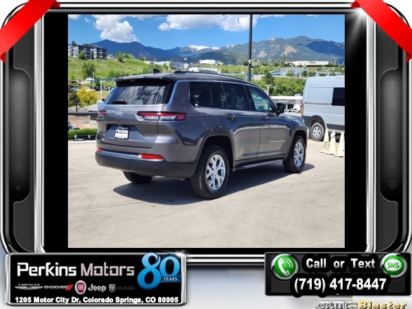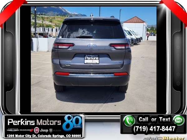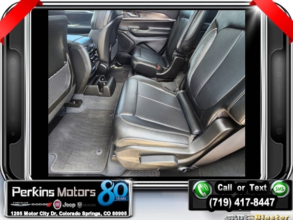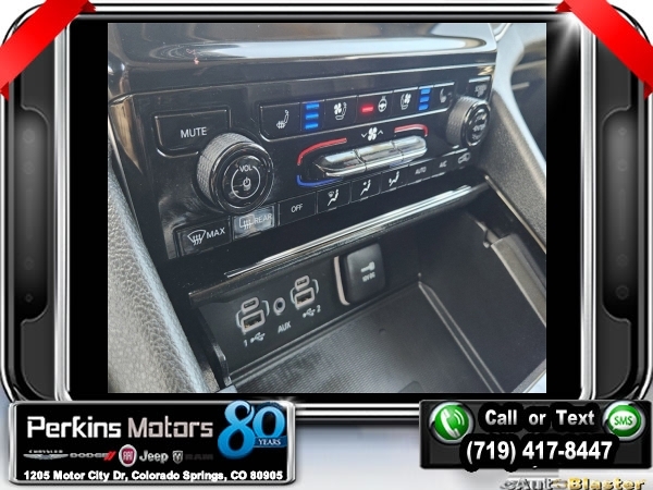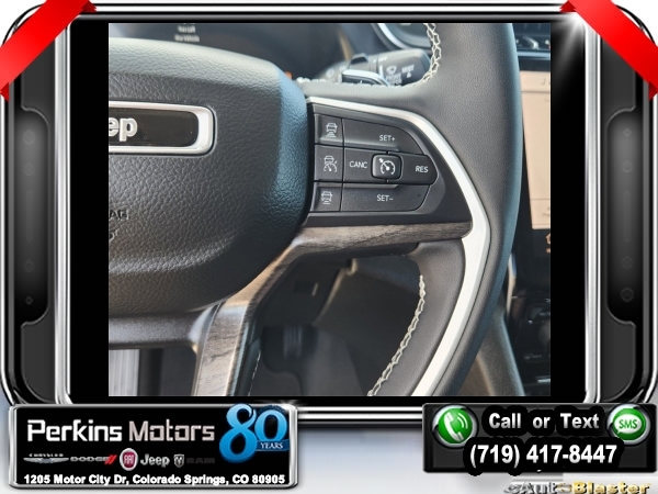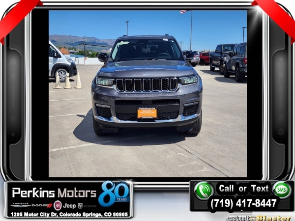 Baltic Gray Metallic Clearcoat 4WD 3.6L V6 24V VVT 8-Speed Automatic<br><br><br>CARFAX One-Owner. Clean CARFAX.<br><br>Check us out at www.perkinsmotors.com to see our specials! Since opening our doors in 1944, we’ve been proud to serve Colorado Springs, CO, and the surrounding areas of Pueblo, Castle Rock and Denver, CO. Throughout this time of being family owned for 80 years, we’ve maintained a firm commitment to our customers: to offer a wide selection of New Chrysler, Dodge, Fiat, Jeep, and Ram vehicles and quality pre-owned vehicles, and provide a quick, no-hassle car-buying process that ensures everyone drives off the lot satisfied with their purchase.<br><br><br>Luxury Tech Group II (2nd Row Manual Window Shades, Auto-Dimming Exterior Driver Mirror, Capri Leatherette w/Axis II Seats, Integrated Off-Road Camera, Intersection Collision Assist System, Memory Steering Column, ParkSense Front/Rear Park Assist w/Stop, Passive Entry - Front/Rear Doors, Liftgate, Power Tilt/Telescope Steering Column, Rain Sensitive Windshield Wipers, Rear Back Up Camera Washer, Rearview Autodim Digital Display Mirror, Surround View Camera System, Ventilated Front Seats, and Wireless Charging Pad), Quick Order Package 23E, Trailer Tow Group (B) (DISC) (220 Amp Alternator, Automatic Headlamp Leveling System, Heavy-Duty Engine Cooling, Rear Load Leveling Suspension, and Trailer Hitch Zoom), 3.45 Rear Axle Ratio, 3rd row seats: split-bench, 4-Wheel Disc Brakes, 6 Speakers, ABS brakes, Active Noise Control System, Air Conditioning, Alloy wheels, AM/FM radio: SiriusXM with 360L, Anti-whiplash front head restraints, Audio memory, Auto High-beam Headlights, Automatic temperature control, Brake assist, Bumpers: body-color, Capri Leatherette Seats, Compass, Cruise Control, Delay-off headlights, Driver door bin, Driver vanity mirror, Dual front impact airbags, Dual front side impact airbags, Electronic Stability Control, Emergency communication system, Four wheel independent suspension, Front anti-roll bar, Front Bucket Seats, Front Center Armrest w/Storage, Front dual zone A/C, Front fog lights, Front License Plate Bracket, Front reading lights, Fully automatic headlights, Garage door transmitter, Heated door mirrors, Heated front seats, Heated rear seats, Heated steering wheel, Illuminated entry, Knee airbag, Low tire pressure warning, Manual Fold Seatbacks, Memory seat, Molded In Color Black/Gloss Black Roof Rails, MOPAR Bright Side Steps, Navigation System, Normal Duty Suspension, Occupant sensing airbag, Outside temperature display, Overhead airbag, Overhead console, Panic alarm, ParkView Rear Back-Up Camera, Passenger door bin, Passenger vanity mirror, Power door mirrors, Power driver seat, Power Liftgate, Power passenger seat, Power steering, Power windows, Radio data system, Radio: Uconnect 5 Nav w/10.1 Display, Rear air conditioning, Rear anti-roll bar, Rear reading lights, Rear window defroster, Rear window wiper, Reclining 3rd row seat, Remote keyless entry, Roof rack: rails only, Security system, Speed-Sensitive Wipers, Split folding rear seat, Spoiler, Steering wheel mounted audio controls, Tachometer, Telescoping steering wheel, Tilt steering wheel, Traction control, Trip computer, Turn signal indicator mirrors, Variably intermittent wipers, Voltmeter, and Wheels: 18 x 8.0 Fully Painted Aluminum.