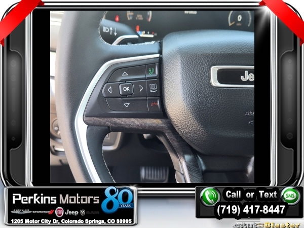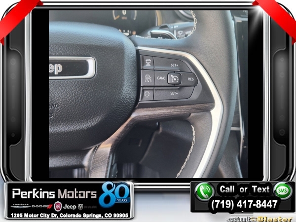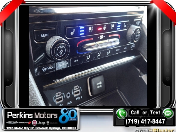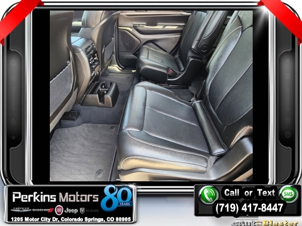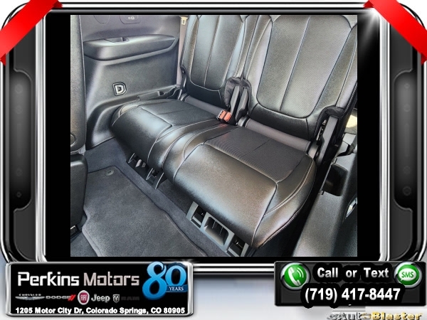 Diamond Black Crystal Pearlcoat 4WD 3.6L V6 24V VVT 8-Speed Automatic<br><br>220 Amp Alternator, 2nd Row Manual Window Shades, 6 Speakers, Auto-Dimming Exterior Driver Mirror, Automatic Headlamp Leveling System, Capri Leatherette w/Axis II Seats, Heavy-Duty Engine Cooling, Integrated Off-Road Camera, Intersection Collision Assist System, Luxury Tech Group II, Memory Steering Column, Navigation System, ParkSense Front/Rear Park Assist w/Stop, Passive Entry - Front/Rear Doors, Liftgate, Power Tilt/Telescope Steering Column, Quick Order Package 23E, Radio: Uconnect 5 Nav w/10.1 Display, Rain Sensitive Windshield Wipers, Rear Back Up Camera Washer, Rear Load Leveling Suspension, Rearview Autodim Digital Display Mirror, Surround View Camera System, Trailer Hitch Zoom, Trailer Tow Group (B) (DISC), Ventilated Front Seats, Wireless Charging Pad.<br><br>Certified. FCA US LLC Certified Pre-Owned Details:<br><br> * Vehicle History<br> * Powertrain Limited Warranty: 84 Month/100,000 Mile (whichever comes first) from original in-service date<br> * Transferable Warranty<br> * Warranty Deductible: $100<br> * Limited Warranty: 3 Month/3,000 Mile (whichever comes first) after new car warranty expires or from certified purchase date<br> * Roadside Assistance<br> * Includes First Day Rental, Car Rental Allowance, and Trip Interruption Benefits. SiriusXM 3 month trial subscription<br> * 125 Point Inspection<br><br><br>CARFAX One-Owner. Clean CARFAX.<br><br>Check us out at www.perkinsmotors.com to see our specials! Since opening our doors in 1944, we’ve been proud to serve Colorado Springs, CO, and the surrounding areas of Pueblo, Castle Rock and Denver, CO. Throughout this time of being family owned for 80 years, we’ve maintained a firm commitment to our customers: to offer a wide selection of New Chrysler, Dodge, Fiat, Jeep, and Ram vehicles and quality pre-owned vehicles, and provide a quick, no-hassle car-buying process that ensures everyone drives off the lot satisfied with their purchase.<br><br><br>Luxury Tech Group II (2nd Row Manual Window Shades, Auto-Dimming Exterior Driver Mirror, Capri Leatherette w/Axis II Seats, Integrated Off-Road Camera, Intersection Collision Assist System, Memory Steering Column, ParkSense Front/Rear Park Assist w/Stop, Passive Entry - Front/Rear Doors, Liftgate, Power Tilt/Telescope Steering Column, Rain Sensitive Windshield Wipers, Rear Back Up Camera Washer, Rearview Autodim Digital Display Mirror, Surround View Camera System, Ventilated Front Seats, and Wireless Charging Pad), Quick Order Package 23E, Trailer Tow Group (B) (DISC) (220 Amp Alternator, Automatic Headlamp Leveling System, Heavy-Duty Engine Cooling, Rear Load Leveling Suspension, and Trailer Hitch Zoom), FCA US LLC Certified Pre-Owned Certified, 6 Speakers, Navigation System, Radio: Uconnect 5 Nav w/10.1 Display, 3.45 Rear Axle Ratio, 3rd row seats: split-bench, 4-Wheel Disc Brakes, ABS brakes, Active Noise Control System, Air Conditioning, Alloy wheels, AM/FM radio: SiriusXM with 360L, Anti-whiplash front head restraints, Audio memory, Auto High-beam Headlights, Automatic temperature control, Brake assist, Bumpers: body-color, Capri Leatherette Seats, Compass, Cruise Control, Delay-off headlights, Driver door bin, Driver vanity mirror, Dual front impact airbags, Dual front side impact airbags, Electronic Stability Control, Emergency communication system, Four wheel independent suspension, Front anti-roll bar, Front Bucket Seats, Front Center Armrest w/Storage, Front dual zone A/C, Front fog lights, Front License Plate Bracket, Front reading lights, Fully automatic headlights, Garage door transmitter, Heated door mirrors, Heated front seats, Heated rear seats, Heated steering wheel, Illuminated entry, Knee airbag, Low tire pressure warning, Manual Fold Seatbacks, Memory seat, Molded In Color Black/Gloss Black Roof Rails, MOPAR Black Side Steps, Normal Duty Suspension, Occupant sensing airbag, Outside temperature display, Overhead