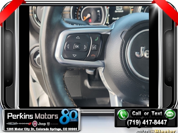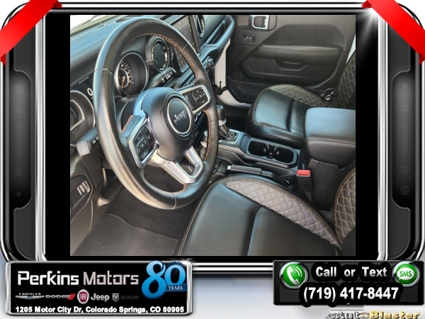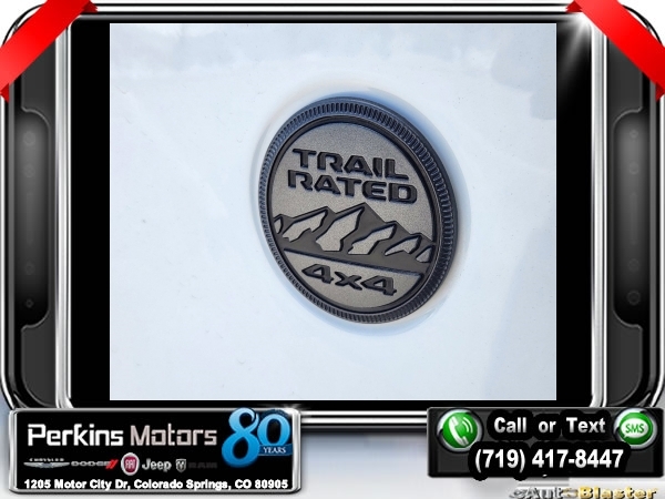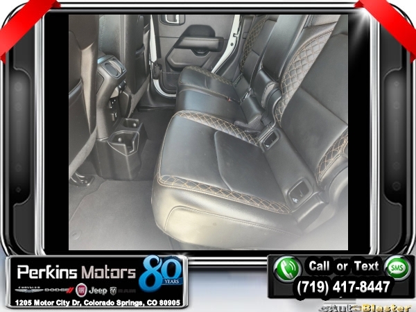 Bright White Clearcoat 4WD 3.6L V6 24V VVT 8-Speed Automatic<br><br>9 Speakers, ABS 4-Wheel HD Disc Brakes w/CI Knuckle, Blind Spot & Cross Path Detection, Body Color 3-Piece Hard Top, Body Color Front Bumper, Body Color Grille w/Gloss Black Rings, Body Color Rear Bumper w/Step Pads, Body-Color Door & Tailgate Handles, Caramel Interior Accents, Cold Weather Group, Dana M210 Wide Front Axle, Dana M220 Wide Rear Axle, Daytime Running Lamps LED Accents, Exterior Mirrors w/Supplemental Signals, Front LED Fog Lamps, Full Body Color Fender Flares, Full Length Floor Console Premium Armrest, Gloss Black Limited Badge, Gray/Black Trail Rated Badge, Heated Front Seats, Heated Steering Wheel, High Altitude Package, Leather Wrapped Park Brake Handle, Leather Wrapped Shift Knob, LED Lighting Group, LED Park Turn Lamps, LED Premium Reflector Headlamps, LED Taillamps, Nappa Leather Seats, Navigation System, ParkSense Rear Park Assist System, Premium Dark Exterior Accents, Quick Order Package 24N High Altitude, Radio: Uconnect 4C Nav w/8.4 Display, Rear Armrest w/Cupholder Seat, Remote Start System, Safety Group, Side Steps, Sport Front Shock Absorbers, Sport Rear Shock Absorbers, Sport Suspension, Wheels: 20 x 8 Gloss Black Aluminum, Wrapped I/P Bezel w/Caramel Stitch.<br><br>Certified. FCA US LLC Certified Pre-Owned Details:<br><br> * 125 Point Inspection<br> * Limited Warranty: 3 Month/3,000 Mile (whichever comes first) after new car warranty expires or from certified purchase date<br> * Powertrain Limited Warranty: 84 Month/100,000 Mile (whichever comes first) from original in-service date<br> * Transferable Warranty<br> * Includes First Day Rental, Car Rental Allowance, and Trip Interruption Benefits. SiriusXM 3 month trial subscription<br> * Roadside Assistance<br> * Warranty Deductible: $100<br> * Vehicle History<br><br><br>CARFAX One-Owner. Clean CARFAX.<br><br>Check us out at www.perkinsmotors.com to see our specials! Since opening our doors in 1944, we’ve been proud to serve Colorado Springs, CO, and the surrounding areas of Pueblo, Castle Rock and Denver, CO. Throughout this time of being family owned for 80 years, we’ve maintained a firm commitment to our customers: to offer a wide selection of New Chrysler, Dodge, Fiat, Jeep, and Ram vehicles and quality pre-owned vehicles, and provide a quick, no-hassle car-buying process that ensures everyone drives off the lot satisfied with their purchase.<br><br><br>Cold Weather Group (Heated Front Seats, Heated Steering Wheel, and Remote Start System), High Altitude Package, LED Lighting Group (Daytime Running Lamps LED Accents, Front LED Fog Lamps, LED Park Turn Lamps, LED Premium Reflector Headlamps, and LED Taillamps), Quick Order Package 24N High Altitude (ABS 4-Wheel HD Disc Brakes w/CI Knuckle, Body Color 3-Piece Hard Top, Body Color Front Bumper, Body Color Grille w/Gloss Black Rings, Body Color Rear Bumper w/Step Pads, Body-Color Door & Tailgate Handles, Caramel Interior Accents, Dana M210 Wide Front Axle, Dana M220 Wide Rear Axle, Exterior Mirrors w/Supplemental Signals, Full Body Color Fender Flares, Full Length Floor Console Premium Armrest, Gloss Black Limited Badge, Gray/Black Trail Rated Badge, Leather Wrapped Park Brake Handle, Leather Wrapped Shift Knob, Nappa Leather Seats, Premium Dark Exterior Accents, Rear Armrest w/Cupholder Seat, Side Steps, Sport Front Shock Absorbers, Sport Rear Shock Absorbers, Sport Suspension, Wheels: 20 x 8 Gloss Black Aluminum, Wrapped I/P Bezel w/Caramel Stitch, Freedom Panel Storage Bag, No Soft Top, Rear Sliding Window, and Rear Window Defroster), Safety Group (Blind Spot & Cross Path Detection and ParkSense Rear Park Assist System), FCA US LLC Certified Pre-Owned Certified, 9 Speakers, Navigation System, Radio: Uconnect 4C Nav w/8.4 Display, 3.73 Rear Axle Ratio, 4-Wheel Disc Brakes, ABS brakes, Air Conditioning, Alloy wheels, AM/FM radio: SiriusXM, Apple CarPlay/Android Auto, Auto-dimming Rear-View mirror, Automatic temper