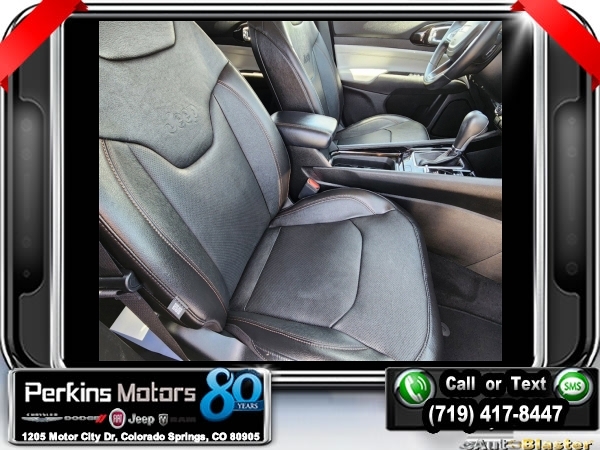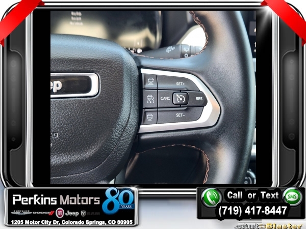 Laser Blue Pearlcoat 4WD 2.4L I4 9-Speed 948TE Automatic<br><br>4WD, 10.1 Touchscreen Display, 115V Auxiliary Power Outlet, 2nd Row Heated Seats, 2nd Row USB Type A/C Charge Only, 4G LTE Wi-Fi Hot Spot, Alexa Built-In, Cluster 10.25 TFT Color Display, Connected Travel & Traffic Services, Disassociated Touchscreen Display, Driver Seat Memory, Elite Group, Foot Activated Open 'N Go Liftgate, For Details, Visit DriveUconnect.com, For More Info, Call 800-643-2112, Global Telematics Box Module (TBM), Gloss Black Door Cladding, Gloss Black Exterior Sill, Gloss Black Fascias, Gloss Black Wheel Flares, GPS Navigation, HD Radio, Integrated Voice Command w/Bluetooth, LED Low/Highbeam Projector Headlamps, No Satellite Coverage HI/AK/PR/VI/GU, Power 2-Way Passenger Lumbar Adjust, Power 8-Way Adjust Front Passenger Seat, Power Liftgate, Premium Leather Trimmed Bucket Seats, Premium LED Fog Lamps, Premium Taillamps, Quick Order Package 2GG, Radio: Uconnect 5 Nav w/10.1 Display, Reversible Carpet/Vinyl Cargo Mat, SiriusXM Guardian - Included Trial (B), SiriusXM Radio Service, SiriusXM Satellite Radio, SiriusXM w/360L, Wheels: 19 x 7.5 Painted Diamond Cut Aluminum.<br><br>Certified. FCA US LLC Certified Pre-Owned Details:<br><br> * Powertrain Limited Warranty: 84 Month/100,000 Mile (whichever comes first) from original in-service date<br> * Roadside Assistance<br> * Warranty Deductible: $100<br> * Includes First Day Rental, Car Rental Allowance, and Trip Interruption Benefits. SiriusXM 3 month trial subscription<br> * Vehicle History<br> * Limited Warranty: 3 Month/3,000 Mile (whichever comes first) after new car warranty expires or from certified purchase date<br> * 125 Point Inspection<br> * Transferable Warranty<br><br><br>CARFAX One-Owner.<br><br>Check us out at www.perkinsmotors.com to see our specials! Since opening our doors in 1944, we’ve been proud to serve Colorado Springs, CO, and the surrounding areas of Pueblo, Castle Rock and Denver, CO. Throughout this time of being family owned for 80 years, we’ve maintained a firm commitment to our customers: to offer a wide selection of New Chrysler, Dodge, Fiat, Jeep, and Ram vehicles and quality pre-owned vehicles, and provide a quick, no-hassle car-buying process that ensures everyone drives off the lot satisfied with their purchase.<br><br><br>Elite Group (10.1 Touchscreen Display, 115V Auxiliary Power Outlet, 2nd Row Heated Seats, 2nd Row USB Type A/C Charge Only, 4G LTE Wi-Fi Hot Spot, Alexa Built-In, Cluster 10.25 TFT Color Display, Connected Travel & Traffic Services, Disassociated Touchscreen Display, Driver Seat Memory, Foot Activated Open 'N Go Liftgate, For Details, Visit DriveUconnect.com, For More Info, Call 800-643-2112, Global Telematics Box Module (TBM), Gloss Black Door Cladding, Gloss Black Exterior Sill, Gloss Black Fascias, Gloss Black Wheel Flares, GPS Navigation, HD Radio, Integrated Voice Command w/Bluetooth, LED Low/Highbeam Projector Headlamps, No Satellite Coverage HI/AK/PR/VI/GU, Power 2-Way Passenger Lumbar Adjust, Power 8-Way Adjust Front Passenger Seat, Power Liftgate, Premium Leather Trimmed Bucket Seats, Premium LED Fog Lamps, Premium Taillamps, Radio: Uconnect 5 Nav w/10.1 Display, Reversible Carpet/Vinyl Cargo Mat, SiriusXM Guardian - Included Trial (B), SiriusXM Radio Service, SiriusXM Satellite Radio, SiriusXM w/360L, Wheels: 19 x 7.5 Painted Diamond Cut Aluminum, and Ventilated Front Seats), Quick Order Package 2GG, FCA US LLC Certified Pre-Owned Certified, 4WD, 3.73 Axle Ratio, 4-Wheel Disc Brakes, 6 Speakers, ABS brakes, Air Conditioning, Alloy wheels, AM/FM radio: SiriusXM, Anti-whiplash front head restraints, Apple CarPlay/Android Auto, Auto High-beam Headlights, Auto-dimming Rear-View mirror, Automatic temperature control, Brake assist, Bumpers: body-color, Compass, Cruise Control, Delay-off headlights, Driver door bin, Driver vanity mirror, Dual front impact airbags, Dual front side impact airbags, Electronic Stability Control