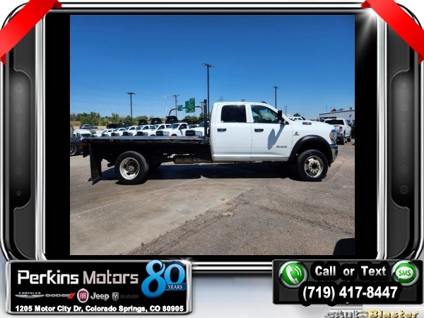 Bright White Clearcoat 4WD Cummins 6.7L I6 Turbodiesel Aisin 6-Speed Automatic<br><br><br>Clean CARFAX.<br><br>Check us out at www.perkinsmotors.com to see our specials! Since opening our doors in 1944, we’ve been proud to serve Colorado Springs, CO, and the surrounding areas of Pueblo, Castle Rock and Denver, CO. Throughout this time of being family owned for 80 years, we’ve maintained a firm commitment to our customers: to offer a wide selection of New Chrysler, Dodge, Fiat, Jeep, and Ram vehicles and quality pre-owned vehicles, and provide a quick, no-hassle car-buying process that ensures everyone drives off the lot satisfied with their purchase.<br><br><br>Chrome Appearance Group (Bright Front Bumper and Chrome Grille Surround), Cold Weather Group (Engine Block Heater and Winter Front Grille Cover), Heavy Duty Snow Plow Prep Group (220 Amp Alternator), Max Tow Package (4.89 Axle Ratio), Quick Order Package 2YA Tradesman (Black Wheel Flares, Glove Box, Halogen Quad Headlamps, and Overhead Cupholder Lamp), 19.5 x 6.0 Steel Wheels, 2 Way Rear Headrest Seat, 4-Wheel Disc Brakes, 4.44 Axle Ratio, 40/20/40 Split Bench Seat, 6 Speakers, 87 mph Maximum Speed, ABS brakes, Air Conditioning, AM/FM radio, Cruise Control, Delay-off headlights, Driver door bin, Dual front impact airbags, Dual rear wheels, Electronic Stability Control, Electronically Controlled Throttle, Front anti-roll bar, Front Armrest w/Cupholders, Front Center Armrest w/Storage, Front Fog Lamps, Front reading lights, Fully automatic headlights, HD Vinyl 40/20/40 Split Bench Seat, Heated door mirrors, Heavy Duty Front Suspension Group, Integrated Voice Command w/Bluetooth, Manual Adjust 4-Way Driver Seat, Manual Adjust 4-Way Front Passenger Seat, Manufacturer's Statement of Origin, Occupant sensing airbag, Passenger door bin, Passenger vanity mirror, Power door mirrors, Power steering, Power windows, Radio data system, Radio: Uconnect 3 w/5 Display, Radio: Uconnect 3.0, Rear anti-roll bar, Remote Keyless Entry, SiriusXM Radio Service, SiriusXM Satellite Radio, Tachometer, Temperature & Compass Gauge, Tilt steering wheel, Traction control, Trailer Brake Control, Turn signal indicator mirrors, USB Host Flip, Variably intermittent wipers, and Voltmeter.