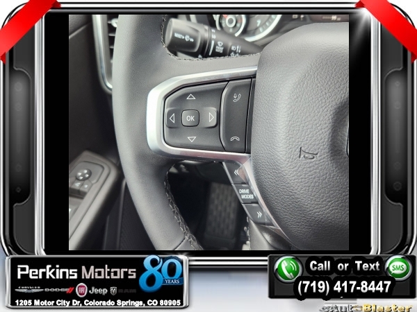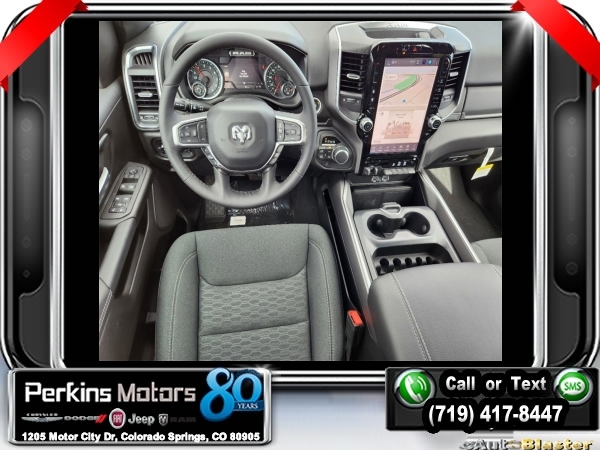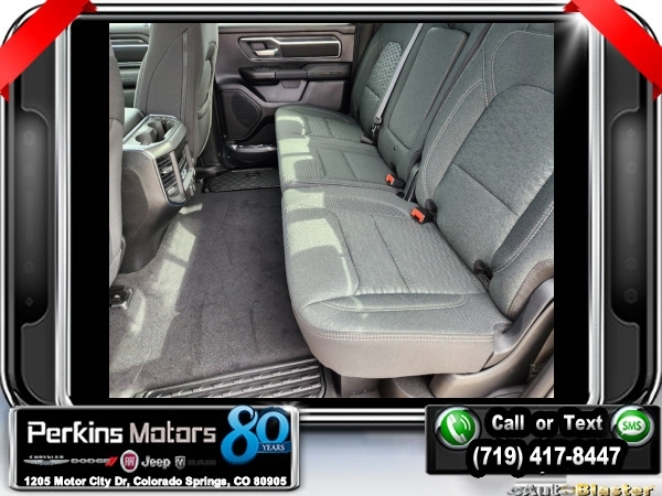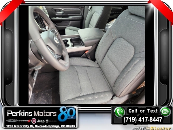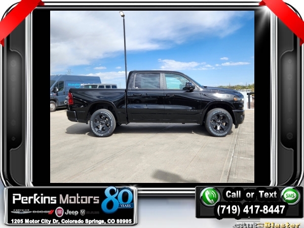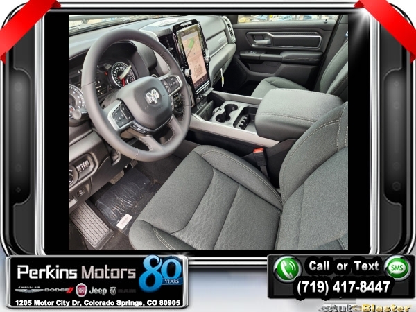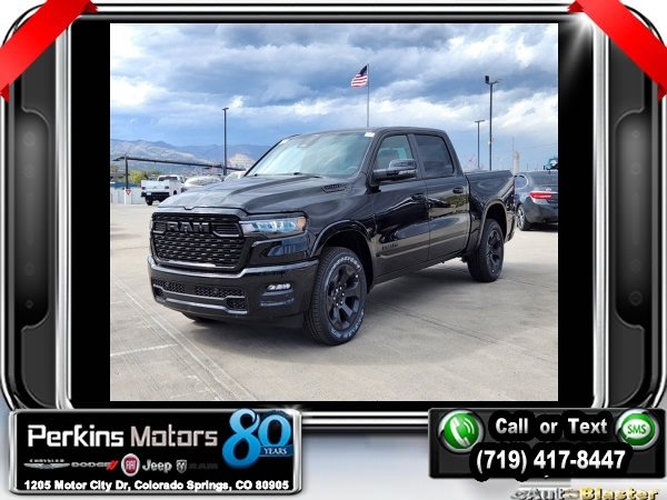 Factory MSRP: $62,515 $10,705 off MSRP! Diamond Black Crystal Pearlcoat 2025 Ram 1500 Big Horn/Lone Star 4WD 8-Speed Automatic 3.0L I6<br>SPRAY IN BEDLINER.<br>Check us out at www.perkinsmotors.com to see our specials! Since opening our doors in 1944, we’ve been proud to serve Colorado Springs, CO, and the surrounding areas of Pueblo, Castle Rock and Denver, CO. Throughout this time of being family owned for 80 years, we’ve maintained a firm commitment to our customers: to offer a wide selection of New Chrysler, Dodge, Fiat, Jeep, and Ram vehicles and quality pre-owned vehicles, and provide a quick, no-hassle car-buying process that ensures everyone drives off the lot satisfied with their purchase.<br><br>Big Horn Level 2 Equipment Group (115V Auxiliary Power Outlet, 115V Auxiliary Rear Power Outlet, 12 Touchscreen Display, 2nd Row In Floor Storage Bins, 400W Inverter, 4G LTE Wi-Fi Hot Spot, 9 Amplified Speakers w/Subwoofer, Air Conditioning ATC w/Dual Zone Control, Apple CarPlay, Auto Power-Folding Mirrors, Auto-Dimming Exterior Driver Mirror, Auto-Dimming Rear-View Mirror, Black Exterior Mirrors, Black Premium Power Mirrors, Cluster 7.0 TFT Color Display, Configurable Drive Mode, Connected Travel & Traffic Services, Connectivity - US/Canada, Convex Wide-Angle Exterior Mirror Insert, Exterior Mirrors Courtesy Lamps, Exterior Mirrors w/Heating Element, Exterior Mirrors w/Supplemental Signals, Glove Box Lamp, Google Android Auto, GPS Antenna Input, GPS Navigation, HD Radio, Heated Front Seats, Heated Steering Wheel, Integrated Voice Command w/Bluetooth, Leather Wrapped Steering Wheel, LED Dome Lamp w/On/Off Switch, LED Footwell Lighting, Media Hub w/2 Charge Only USBs, Overhead LED Lamps, Power 2-Way Driver Lumbar Adjust, Power Adjust 8-Way Driver Seat, Power Adjustable Pedals, Premium Overhead Console, Radio: Uconnect 5 Nav w/12.0 Display, Rear Power Sliding Window, Rear Window Defroster, Remote Tailgate Release, Security Alarm, SiriusXM w/360L, Sun Visors w/Illuminated Vanity Mirrors, Universal Garage Door Opener, and USB Host Flip), Night Edition (3 Rear Seat Head Restraints, 4 Way Front Headrests, Accent Color Door Handles, Accent Color Premium Power Mirrors, Anti-Spin Differential Rear Axle, Black Exterior Truck Badging, Black Headlamp Bezels, Black Interior Accents, Black Painted Exterior Mirrors Caps, Black Tail Lamp Bezels, Body Color Front Bumper, Body Color Rear Bumper w/Step Pads, Bucket Seats, Deluxe Cloth Bucket Seats, Front Seat Back Map Pockets, Full Length Floor Console, Grille Black Surround Black Mesh, Manual Adjust 4-Way Front Passenger Seat, RAM Grille Badge - Black, Rear 60/40 Folding Seat, Rear Center Armrest, and Wheels: 20 x 9.0 Aluminum Painted Clad), Quick Order Package 21Z Big Horn, 3.21 Rear Axle Ratio, 3.55 Rear Axle Ratio, 4-Wheel Disc Brakes, 6 Speakers, ABS brakes, Air Conditioning, Alloy wheels, AM/FM radio, Apple CarPlay/Android Auto, Auto High-beam Headlights, Brake assist, Bumpers: chrome, Cloth Bench Seat, Compass, Cruise Control, Delay-off headlights, Driver door bin, Dual front impact airbags, Dual front side impact airbags, Electronic Stability Control, Engine Block Heater, Front anti-roll bar, Front Center Armrest w/Storage, Front fog lights, Front License Plate Bracket, Front reading lights, Front wheel independent suspension, Fully automatic headlights, Heated door mirrors, Illuminated entry, Low tire pressure warning, Manual Folding Exterior Mirrors, MOPAR Front & Rear Rubber Floor Mats, Occupant sensing airbag, Outside temperature display, Overhead airbag, Overhead console, Panic alarm, ParkView Rear Back-Up Camera, Passenger door bin, Passenger vanity mirror, Power door m Sale price includes all manufacture's incentives and dealer discounts. Sale price not available on lease or compatible with special APR. $2000 - 2025 Denver BC Chrysler Capital Bonus Cash. Exp. 09/03/2024 $3000 - 2025 National Retail Consumer Cash. Exp. 09/03/2024 Price includes $795 in dealer added a