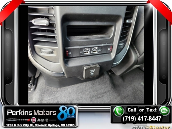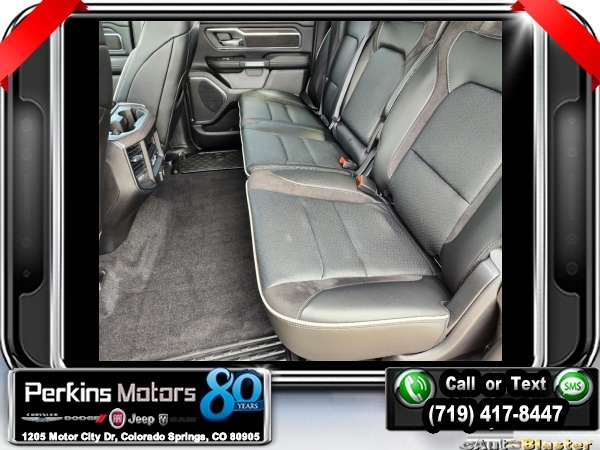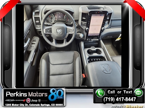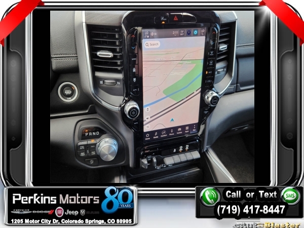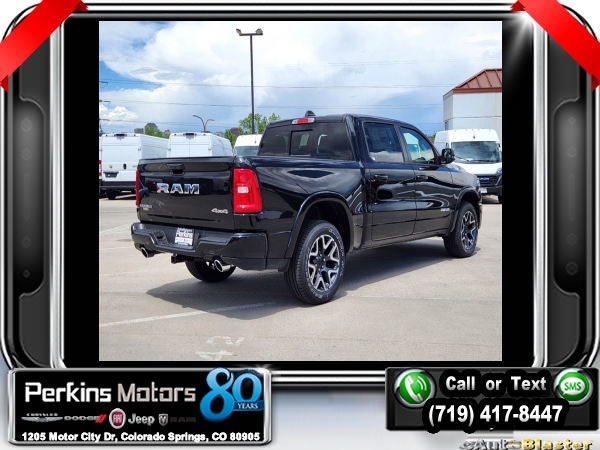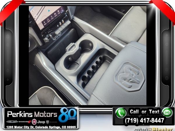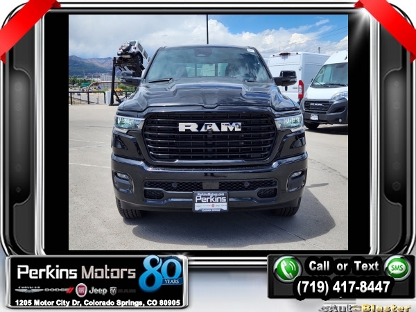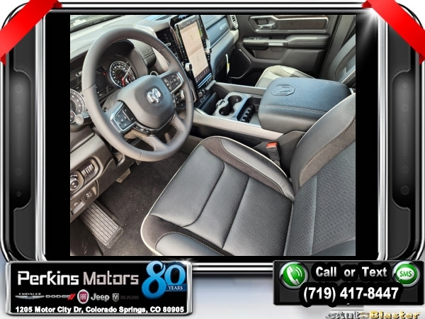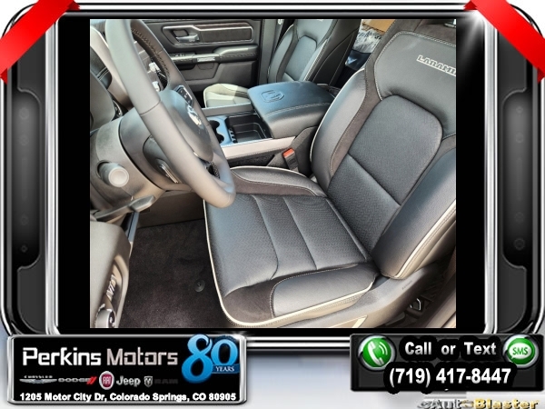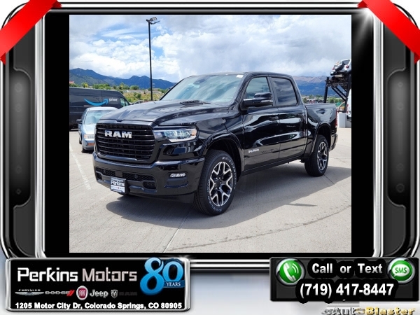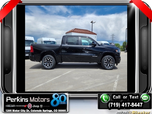 Factory MSRP: $69,660 $6,244 off MSRP! Diamond Black Crystal Pearlcoat 2025 Ram 1500 Laramie 4WD 8-Speed Automatic 3.0L I6<br>SPRAY IN BEDLINER.<br>Check us out at www.perkinsmotors.com to see our specials! Since opening our doors in 1944, we’ve been proud to serve Colorado Springs, CO, and the surrounding areas of Pueblo, Castle Rock and Denver, CO. Throughout this time of being family owned for 80 years, we’ve maintained a firm commitment to our customers: to offer a wide selection of New Chrysler, Dodge, Fiat, Jeep, and Ram vehicles and quality pre-owned vehicles, and provide a quick, no-hassle car-buying process that ensures everyone drives off the lot satisfied with their purchase.<br><br>Laramie Level 1 Equipment Group (Rain Sensitive Windshield Wipers and Remote Tailgate Release), Quick Order Package 21H Laramie, Sport Appearance Package (3 Rear Seat Head Restraints, 4 Way Front Headrests, Accent Color Premium Power Mirrors, Auto Power-Folding Mirrors, Auto-Dimming Exterior Driver Mirror, Black Interior Accents, Black Painted Exterior Mirrors Caps, Body Color Front Bumper, Body Color Rear Bumper w/Step Pads, Bridgestone Brand Tires, Bucket Seats, Center Console Parts Module, Convex Wide-Angle Exterior Mirror Insert, Driver Seat Memory, Exterior Mirrors Courtesy Lamps, Exterior Mirrors w/Heating Element, Exterior Mirrors w/Memory, Exterior Mirrors w/Supplemental Signals, Front Seat Back Map Pockets, Full Length Upgraded Floor Console, Grille Surround 3 Body Color Tex 2 Black, Heated Front Seats, Heated Second Row Seats, Heated Steering Wheel, Leather Trimmed Bucket Seats, Power 2-Way Driver Lumbar Adjust, Power 2-Way Passenger Lumbar Adjust, Power Adjust 8-Way Driver Seat, Power Adjust 8-Way Front Passenger Seat, RAM Grille Badge - Chrome, Rear 60/40 Folding Split Recline Seat, Sport Decal, Sport Performance Hood, and Ventilated Front Seats), 10 Speakers, 3.55 Rear Axle Ratio, 3.92 Rear Axle Ratio, 33 Gallon Fuel Tank, 4-Wheel Disc Brakes, 4G LTE Wi-Fi Hot Spot, ABS brakes, Air Conditioning, Alloy wheels, AM/FM radio: SiriusXM with 360L, Apple CarPlay, Apple CarPlay/Android Auto, Audio memory, Auto High-beam Headlights, Auto-dimming door mirrors, Auto-dimming Rear-View mirror, Automatic temperature control, Brake assist, Bumpers: chrome, Chrome Exterior Mirrors, Compass, Connected Travel & Traffic Services, Connectivity - US/Canada, Cruise Control, Delay-off headlights, Driver door bin, Driver vanity mirror, Dual front impact airbags, Dual front side impact airbags, Electronic Stability Control, Front anti-roll bar, Front Center Armrest w/Storage, Front dual zone A/C, Front fog lights, Front License Plate Bracket, Front reading lights, Front wheel independent suspension, Fully automatic headlights, Garage door transmitter, Global Telematics Box Module (TBM), Google Android Auto, GPS Antenna Input, GPS Navigation, HD Radio, Heated door mirrors, Heated front seats, Heated rear seats, Heated steering wheel, Illuminated entry, Integrated Center Stack Radio, Integrated Voice Command w/Bluetooth, Leather steering wheel, Leather Trim 40/20/40 Bench Seat, Low tire pressure warning, Memory seat, MOPAR Front & Rear Rubber Floor Mats, Navigation System, Occupant sensing airbag, Outside temperature display, Overhead airbag, Overhead console, Panic alarm, ParkView Rear Back-Up Camera, Passenger door bin, Passenger vanity mirror, Power door mirrors, Power driver seat, Power passenger seat, Power steering, Power windows, Radio data system, Radio: Uconnect 5 Nav w/12.0 Display, Rear anti-roll bar, Rear reading lights, Rear seat center armrest, Rear step bumper, Remote keyless entry, Security system, SiriusXM w/360L, Split folding rear seat, Steering wheel mounted audio controls, Tachome Sale price includes all manufacture's incentives and dealer discounts. Sale price not available on lease or compatible with special APR. $1000 - 2025 RAM National Retail Consumer Cash 39CS1. Exp. 06/03/2024 Price includes $795 in dealer added a