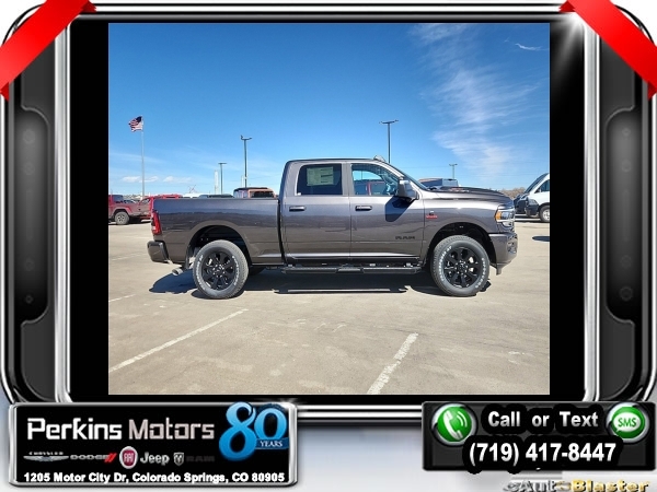 Factory MSRP: $91,270 $10,000 off MSRP! Granite Crystal Metallic Clearcoat 2024 Ram 2500 Laramie 4WD 6-Speed Automatic Cummins 6.7L I6 Turbodiesel<br><br>Check us out at www.perkinsmotors.com to see our specials! Since opening our doors in 1944, we’ve been proud to serve Colorado Springs, CO, and the surrounding areas of Pueblo, Castle Rock and Denver, CO. Throughout this time of being family owned for 80 years, we’ve maintained a firm commitment to our customers: to offer a wide selection of New Chrysler, Dodge, Fiat, Jeep, and Ram vehicles and quality pre-owned vehicles, and provide a quick, no-hassle car-buying process that ensures everyone drives off the lot satisfied with their purchase.<br><br>Bed Utility Group (LED Bed Lighting, MOPAR Deployable Bed Step, and MOPAR Spray In Bedliner), Cold Weather Group (Engine Block Heater and MOPAR Winter Front Grille Cover), Heavy Duty Snow Plow Prep Group (220 Amp Alternator), Laramie Level 1 Equipment Group (12 Touchscreen Display, 2nd Row In Floor Storage Bins, 4G LTE Wi-Fi Hot Spot, Alexa Built-In, Apple CarPlay, Auto Adjust In Reverse Exterior Mirrors, Auto Dim Exterior Mirror, Auto High Beam Headlamp Control, Auto Power-Folding Mirrors, Auto-Dimming Exterior Passenger Mirror, Blind Spot & Cross Path Detection, Center Hub, Chrome Exterior Mirrors, Connected Travel & Traffic Services, Connectivity - US/Canada, Disassociated Touchscreen Display, Exterior Mirrors Courtesy Lamps, Exterior Mirrors w/Heating Element, Exterior Mirrors w/Memory, Exterior Mirrors w/Supplemental Signals, Foam Bottle Insert (Door Trim Panel), For Details, Visit DriveUconnect.com, For More Info, Call 800-643-2112, Forward & Reverse Utility Lights, Front LED Fog Lamps, Global Telematics Box Module (TBM), Google Android Auto, GPS Antenna Input, GPS Navigation, HD Radio, Integrated Voice Command w/Bluetooth, LED Reflector Headlamps, LED Tail Lamps, Mirror Running Lights, Off-Road Information Pages, ParkSense Front/Rear Park Assist System, Power Adjust Mirrors, Power Adjustable Convex Aux Mirrors, Power Adjustable Pedals w/Memory, Power Heated Fold Telescopic Mirrors w/Memory, Power Telescoping Mirrors, Radio: Uconnect 5 Nav w/12.0 Display, Rain Sensitive Windshield Wipers, Rear Power Sliding Window, Rear Window Defroster, Remote Tailgate Release, Selectable Tire Fill Alert, SiriusXM Radio Service, SiriusXM w/360L, Trailer Tow Pages, and Wheels: 18 x 8.0 Polished Aluminum), Night Edition (Black Exterior Truck Badging, Black Headlamp Bezels, Black Interior Accents, Black Ram Head Tailgate Badge, Black Tail Lamp Bezels, Black Wheel Center Hub, Body Color Grille Surround, Gloss Black Grille Billets/Accents, Sport Performance Hood, and Wheels: 20 x 8.0 Black Painted Aluminum), Protection Group (Tow Hooks), Quick Order Package 2HH Laramie, Safety Group (Adaptive Cruise Control w/Stop, Adaptive Steering System, Full Speed Forward Collision Warning Plus, and Lane Keep Assist), Tow Technology Plus Group (Digital 3.0 Rear View Auto Dimming Mirror and Trailer Reverse Steering Control), Towing Technology Group (CTR Stop Lamp w/Cargo View Camera, Surround View Camera System, and Trailer Reverse Guidance), 10 Speakers, 115V Auxiliary Rear Power Outlet, 2 Way Rear Headrest Seat, 3.73 Axle Ratio, 4 Way Front Headrests, 4-Wheel Disc Brakes, 5th Wheel/Gooseneck Towing Prep Group, ABS brakes, Active Noise Control System, Air Conditioning, Alloy wheels, AM/FM radio: SiriusXM with 360L, Apple CarPlay/Android Auto, Auto Level Rear Air Suspension, Automatic temperature control, Brake assist, Bumpers: body-color, Clearance Lamps, Compass, Cruise Control, Delay-off headlights, Driver door bin, Driver vanity mirror, Dual front impact airbags, Dual front side impact airbags, Electronic Stability Control, Electronically Controlled Throttle, Front anti-roll Sale price includes all manufacture's incentives and dealer discounts. Sale price not available on lease or compatible with special APR. $1000 - 2024 Bonus Cash . Exp. 0