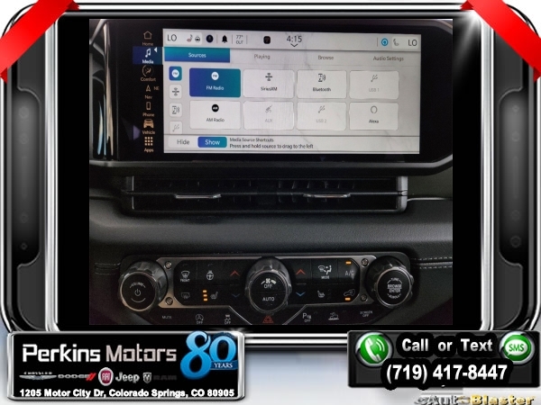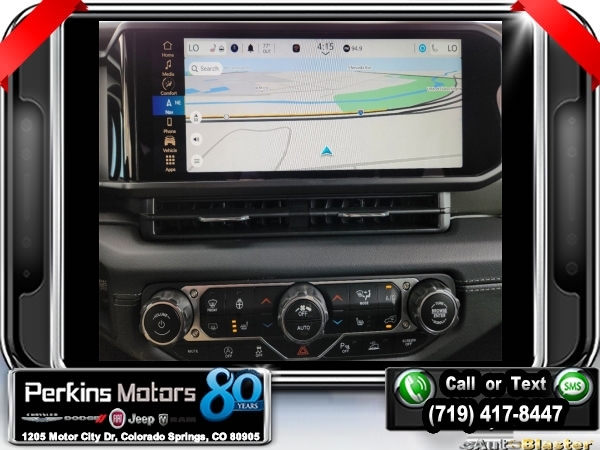 Factory MSRP: $69,805 $19,961 off MSRP! Priced below KBB Fair Purchase Price! Black Clearcoat 2024 Jeep Gladiator Mojave 4WD 8-Speed Automatic 3.6L V6 24V VVT<br><br>Check us out at www.perkinsmotors.com to see our specials! Since opening our doors in 1944, we’ve been proud to serve Colorado Springs, CO, and the surrounding areas of Pueblo, Castle Rock and Denver, CO. Throughout this time of being family owned for 80 years, we’ve maintained a firm commitment to our customers: to offer a wide selection of New Chrysler, Dodge, Fiat, Jeep, and Ram vehicles and quality pre-owned vehicles, and provide a quick, no-hassle car-buying process that ensures everyone drives off the lot satisfied with their purchase.<br><br>Mojave X Package, Quick Order Package 24A Mojave X (12.3 Touchscreen Display, 4G LTE Wi-Fi Hot Spot, Alexa Built-In, Alpine Premium Audio System, Apple CarPlay, Body Color Rubicon Highline Flare, Connected Travel & Traffic Services, Connectivity - US/Canada, Emergency/Assistance Call, Google Android Auto, GPS Antenna Input, HD Radio, Integrated Center Stack Radio, Integrated Off-Road Camera, Leather Trimmed Bucket Seats, ParkSense Rear Park Assist System, Rear Armrest w/Cupholder Seat, Rock Protection Sill Rails, SiriusXM Radio Service, SiriusXM w/360L, Steel Front Bumper, and Steel Rear Bumper), 4-Wheel Disc Brakes, 4.10 Rear Axle Ratio, 8 Speakers, 97 MPH Vehicle Max Speed Calibration, ABS brakes, Air Conditioning, Alloy wheels, AM/FM radio: SiriusXM with 360L, Apple CarPlay/Android Auto, Automatic temperature control, Brake assist, Compass, Cruise Control, Delay-off headlights, Driver door bin, Driver vanity mirror, Dual front impact airbags, Dual front side impact airbags, Electronic Stability Control, Emergency communication system: Jeep Connect, Front anti-roll bar, Front Bucket Seats, Front Center Armrest w/Storage, Front dual zone A/C, Front fog lights, Front License Plate Bracket, Front reading lights, Fully automatic headlights, Heated door mirrors, Heavy Duty Suspension w/Gas Shocks, Illuminated entry, Integrated roll-over protection, Leather steering wheel, Low tire pressure warning, Manufacturer's Statement of Origin (DISC), MOPAR All-Weather Slush Mats, MOPAR Spray In Bedliner, Occupant sensing airbag, Outside temperature display, Overhead airbag, Panic alarm, Passenger door bin, Passenger vanity mirror, Power door mirrors, Power steering, Power windows, Premium Cloth Seats w/Sport Bolsters, Radio data system, Radio: Uconnect 5 w/12.3 Display, Rear anti-roll bar, Rear reading lights, Remote keyless entry, Security system, Split folding rear seat, Steering wheel mounted audio controls, Tachometer, Telescoping steering wheel, Tilt steering wheel, Traction control, Trip computer, Variably intermittent wipers, Voltmeter, Wheels: 17 x 7.5 Dark Gray Painted, and Wheels: 17 x 7.5 Machined/Painted Dark Gray. Sale price includes all manufacture's incentives and dealer discounts. Sale price not available on lease or compatible with special APR. 20% Msrp - 2024 National Standalone 20% Below MSRP (1/B/L/E) . Exp. 02/03/2025