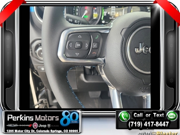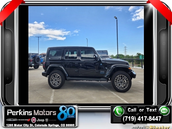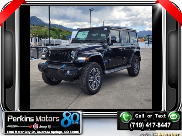 Factory MSRP: $72,325 $9,614 off MSRP! Priced below KBB Fair Purchase Price! Black Clearcoat 2024 Jeep Wrangler High Altitude 4xe 4WD 8-Speed Automatic 2.0L I4 DOHC<br>2.0L I4 DOHC.<br>Check us out at www.perkinsmotors.com to see our specials! Since opening our doors in 1944, we’ve been proud to serve Colorado Springs, CO, and the surrounding areas of Pueblo, Castle Rock and Denver, CO. Throughout this time of being family owned for 80 years, we’ve maintained a firm commitment to our customers: to offer a wide selection of New Chrysler, Dodge, Fiat, Jeep, and Ram vehicles and quality pre-owned vehicles, and provide a quick, no-hassle car-buying process that ensures everyone drives off the lot satisfied with their purchase.<br><br>Quick Order Package 29N High Altitude, Trailer Tow & Aux Switch Group (7 & 4 Pin Wiring Harness, 700 Amp Maintenance Free Battery, Auxiliary Switches, Class II Receiver Hitch, and Integrated Off-Road Camera), 2.0L I4 DOHC, 3.73 Rear Axle Ratio, 4-Wheel Disc Brakes, 9 Speakers, ABS brakes, Air Conditioning, Alloy wheels, AM/FM radio: SiriusXM with 360L, Apple CarPlay/Android Auto, Auto High-beam Headlights, Auto-dimming Rear-View mirror, Automatic temperature control, Brake assist, Bumpers: body-color, Compass, Convertible HardTop, Cruise Control, Delay-off headlights, Driver door bin, Driver vanity mirror, Dual front impact airbags, Dual front side impact airbags, Electronic Stability Control, Front anti-roll bar, Front Bucket Seats, Front Center Armrest w/Storage, Front dual zone A/C, Front fog lights, Front License Plate Bracket, Front reading lights, Fully automatic headlights, Glass rear window, Heated door mirrors, Heated front seats, Heated steering wheel, Illuminated entry, Integrated roll-over protection, Leather Shift Knob, Low tire pressure warning, MOPAR All-Weather Floor Mats, MOPAR Hinge-Gate Reinforcement, Nappa Leather Seats, Navigation System, Occupant sensing airbag, Outside temperature display, Overhead airbag, Panic alarm, ParkView Rear Back-Up Camera, Passenger door bin, Passenger vanity mirror, Power door mirrors, Power driver seat, Power passenger seat, Power steering, Power windows, Radio data system, Radio: Uconnect 5 Nav w/12.3 Display, Rear anti-roll bar, Rear reading lights, Rear seat center armrest, Rear window defroster, Rear window wiper, Remote keyless entry, Security system, Sky 1-Touch Power Top, Split folding rear seat, Sport Suspension, Steering wheel mounted audio controls, Tachometer, Telescoping steering wheel, Tilt steering wheel, Traction control, Trip computer, Turn signal indicator mirrors, Variably intermittent wipers, Voltmeter, and Wheels: 20 x 8 Machined/Painted Gray. Sale price includes all manufacture's incentives and dealer discounts. Sale price not available on lease or compatible with special APR. $3000 - 2024 National Retail Consumer Cash . Exp. 07/01/2024 $3750 - Federal EV Tax Credit. Exp. 12/31/2024