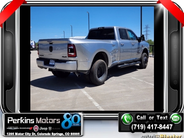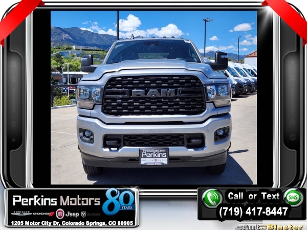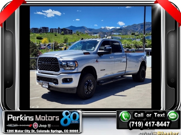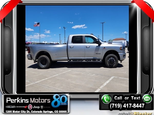 Factory MSRP: $90,670 $10,000 off MSRP! Billet Silver Metallic Clearcoat 2024 Ram 3500 Big Horn 4WD 6-Speed Automatic I6<br><br>Check us out at www.perkinsmotors.com to see our specials! Since opening our doors in 1944, we’ve been proud to serve Colorado Springs, CO, and the surrounding areas of Pueblo, Castle Rock and Denver, CO. Throughout this time of being family owned for 80 years, we’ve maintained a firm commitment to our customers: to offer a wide selection of New Chrysler, Dodge, Fiat, Jeep, and Ram vehicles and quality pre-owned vehicles, and provide a quick, no-hassle car-buying process that ensures everyone drives off the lot satisfied with their purchase.<br><br>Bed Utility Group (MOPAR Spray In Bedliner), Cold Weather Group (Engine Block Heater), Heated Seats & Wheel Group (Leather Wrapped Steering Wheel), Heavy Duty Snow Plow Prep Group (220 Amp Alternator), Level 1 Equipment Group (2 Way Rear Headrest Seat, 4 Way Front Headrests, 40/20/40 Split Bench Seat, 4G LTE Wi-Fi Hot Spot, Black Exterior Mirrors, Bluetooth Handsfree Phone & Audio, Center Hub, Connectivity - US/Canada, Exterior Mirrors Courtesy Lamps, Exterior Mirrors w/Heating Element, Exterior Mirrors w/Supplemental Signals, Foam Bottle Insert (Door Trim Panel), For Details Visit DriveUconnect.com, Forward & Reverse Utility Lights, Front Armrest w/Cupholders, Front Fog Lamps, Global Telematics Box Module (TBM), GPS Antenna Input, Integrated Voice Command w/Bluetooth, Manual Adjust 4-Way Front Passenger Seat, Power Adjust Mirrors, Power Telescoping Mirrors, Power-Adjustable Convex Aux Mirrors, Rear Dome w/On/Off Switch Lamp, Remote USB Port - Charge Only, and Storage Tray), Night Edition (Body Color Door Handles, Body Color Grille Surround, and Painted Rear Bumper), Protection Group, Quick Order Package 21Z Big Horn, Safety Group (Adaptive Steering System, Full Speed Forward Collision Warning Plus, Lane Keep Assist, and Rain Sensitive Windshield Wipers), Tow Technology Plus Group, Towing Technology Group (CTR Stop Lamp w/Cargo View Camera), 3.73 Axle Ratio, 4-Wheel Disc Brakes, 4.10 Axle Ratio, 50 Gallon Fuel Tank, 5th Wheel/Gooseneck Towing Prep Group, 6 Speakers, 6000# Front Axle w/Hub Ext, 9 Alpine Speakers w/Subwoofer, ABS brakes, Active Noise Control System, Air Conditioning, Auto Level Rear Air Suspension, Blind Spot & Cross Path Detection, Brake assist, Bumpers: chrome, Clearance Lamps, Cloth 40/20/40 Bench Seat, Compass, Cruise Control, Delay-off headlights, Driver door bin, Dual front impact airbags, Dual front side impact airbags, Dual Rear Wheels, Electronic Stability Control, Electronically Controlled Throttle, Emergency communication system: SiriusXM Guardian, Front anti-roll bar, Front Center Armrest w/Storage, Front License Plate Bracket, Front reading lights, Fully automatic headlights, Heated door mirrors, Illuminated entry, Low tire pressure warning, Manual Adjust 4-Way Driver Seat, Manufacturer's Statement of Origin, MOPAR Front & Rear Rubber Floor Mats, Occupant sensing airbag, Outside temperature display, Overhead airbag, Overhead console, Painted Flat Cab-Length Side Steps, Panic alarm, ParkSense Front/Rear Park Assist System, ParkView Rear Back-Up Camera, Passenger door bin, Passenger vanity mirror, Power door mirrors, Power steering, Power windows, Radio data system, Radio: Uconnect 3 w/5 Display, Radio: Uconnect 5 Nav w/12.0 Display, Rear Folding Seat, Rear seat center armrest, Rear step bumper, Rear Wheelhouse Liners, Rear Window Defroster, Remote keyless entry, Remote Start System, Tachometer, Tilt steering wheel, Tip Start, Traction control, Trip computer, Turn signal indicator mirrors, Variably intermittent wipers, Voltmeter, Wheels: 17 x 6.0 Black Machined Aluminum, and Wheels: 18 x 8.0 Steel Chrome ClaD.