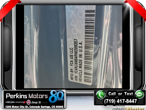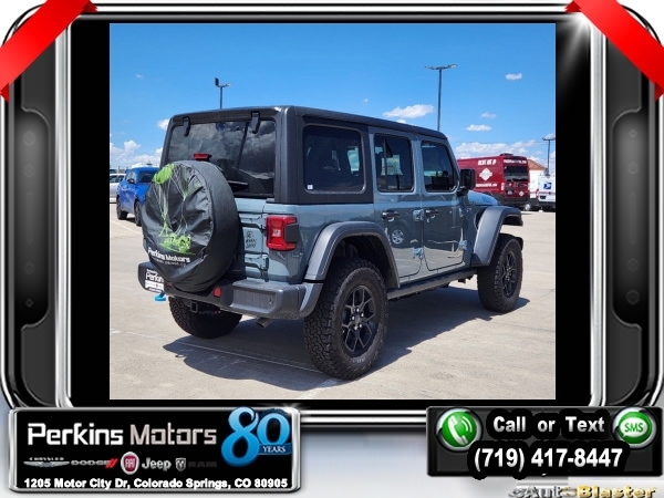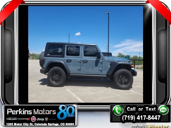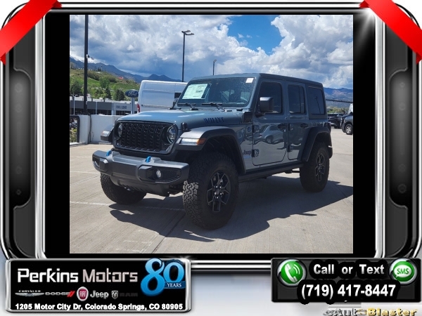 Factory MSRP: $64,305 $10,048 off MSRP! Priced below KBB Fair Purchase Price! Anvil Clear Coat 2024 Jeep Wrangler Willys 4xe 4WD 8-Speed Automatic 2.0L I4 DOHC<br>2.0L I4 DOHC.<br>Check us out at www.perkinsmotors.com to see our specials! Since opening our doors in 1944, we’ve been proud to serve Colorado Springs, CO, and the surrounding areas of Pueblo, Castle Rock and Denver, CO. Throughout this time of being family owned for 80 years, we’ve maintained a firm commitment to our customers: to offer a wide selection of New Chrysler, Dodge, Fiat, Jeep, and Ram vehicles and quality pre-owned vehicles, and provide a quick, no-hassle car-buying process that ensures everyone drives off the lot satisfied with their purchase.<br><br>Convenience Group (2-Door Passive Entry, Front Door Locks and Universal Garage Door Opener), Quick Order Package 29W Willys (7 & 4 Pin Wiring Harness, Black Grille, Conventional Differential Front Axle, Wheels: 17 x 7.5 Painted Black, and Willys 4xe Hood Decal), Safety Group (Auto High Beam Headlamp Control, Blind Spot & Cross Path Detection, and LED Taillamps), Technology Group (Alpine Premium Audio System), 2.0L I4 DOHC, 3.73 Rear Axle Ratio, 4-Wheel Disc Brakes, 8 Speakers, ABS brakes, Air Conditioning, Alloy wheels, Apple CarPlay/Android Auto, Automatic temperature control, Black 3-Piece Hard Top, Brake assist, Cloth Low-Back Bucket Seats, Compass, Cruise Control, Delay-off headlights, Driver door bin, Driver vanity mirror, Dual front impact airbags, Dual front side impact airbags, Electronic Stability Control, Front anti-roll bar, Front Bucket Seats, Front Center Armrest w/Storage, Front dual zone A/C, Front fog lights, Front reading lights, Fully automatic headlights, Heated door mirrors, Illuminated entry, Integrated roll-over protection, Low tire pressure warning, Occupant sensing airbag, Outside temperature display, Overhead airbag, Panic alarm, ParkView Rear Back-Up Camera, Passenger door bin, Passenger vanity mirror, Power door mirrors, Power steering, Power windows, Radio data system, Radio: Uconnect 5 w/12.3 Display, Rear anti-roll bar, Rear reading lights, Remote keyless entry, Security system, Split folding rear seat, Sport Suspension, Steering wheel mounted audio controls, Tachometer, Telescoping steering wheel, Tilt steering wheel, Traction control, Trip computer, Variably intermittent wipers, Voltmeter, and Wheels: 20 x 8 Machined/Painted Gray. Sale price includes all manufacture's incentives and dealer discounts. Sale price not available on lease or compatible with special APR. $3000 - 2024 DJR National Retail Consumer Cash 24CR1. Exp. 06/03/2024 $3750 - Federal EV Tax Credit. Exp. 12/31/2024