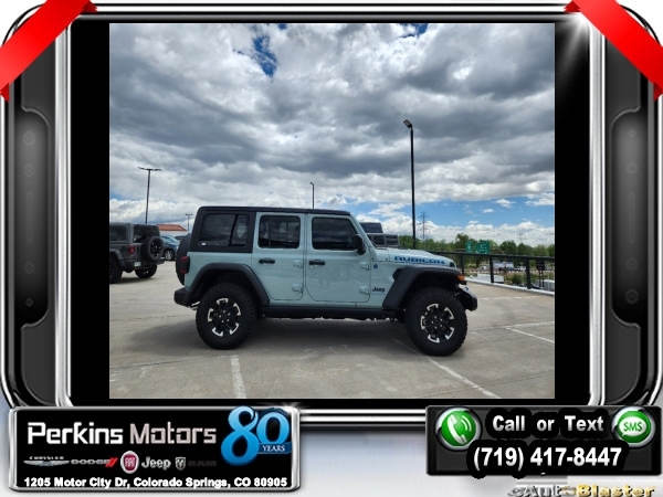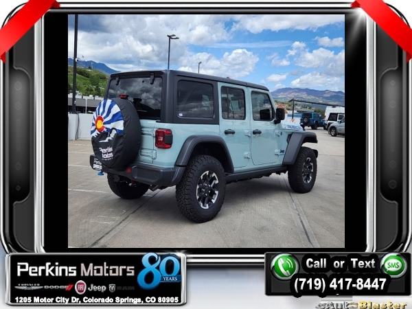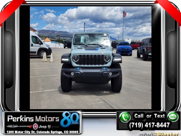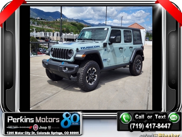 Factory MSRP: $69,225 $10,124 off MSRP! Priced below KBB Fair Purchase Price! Earl Clearcoat 2024 Jeep Wrangler Rubicon 4xe 4WD 8-Speed Automatic 2.0L I4 DOHC<br>2.0L I4 DOHC.<br>Check us out at www.perkinsmotors.com to see our specials! Since opening our doors in 1944, we’ve been proud to serve Colorado Springs, CO, and the surrounding areas of Pueblo, Castle Rock and Denver, CO. Throughout this time of being family owned for 80 years, we’ve maintained a firm commitment to our customers: to offer a wide selection of New Chrysler, Dodge, Fiat, Jeep, and Ram vehicles and quality pre-owned vehicles, and provide a quick, no-hassle car-buying process that ensures everyone drives off the lot satisfied with their purchase.<br><br>Convenience Group (Heated Front Seats and Universal Garage Door Opener), Quick Order Package 29V Rubicon, Safety Group, Technology Group (12.3 Touchscreen Display, 4G LTE Wi-Fi Hot Spot, Apple CarPlay, Connectivity - US/Canada, Disassociated Touchscreen Display, Google Android Auto, GPS Navigation, HD Radio, Integrated Center Stack Radio, Integrated Off-Road Camera, Integrated Voice Command w/Bluetooth, Radio: Uconnect 5 Nav w/12.3 Display, SiriusXM Radio Service, and SiriusXM w/360L), 2.0L I4 DOHC, 4-Wheel Disc Brakes, 4.10 Rear Axle Ratio, 8 Speakers, ABS brakes, Air Conditioning, Alloy wheels, AM/FM radio: SiriusXM, Apple CarPlay/Android Auto, Automatic temperature control, Black 3-Piece Hard Top, Brake assist, Compass, Cruise Control, Delay-off headlights, Driver door bin, Driver vanity mirror, Dual front impact airbags, Dual front side impact airbags, Electronic Stability Control, Freedom Panel Storage Bag, Front anti-roll bar, Front Bucket Seats, Front Center Armrest w/Storage, Front dual zone A/C, Front fog lights, Front reading lights, Fully automatic headlights, Garage door transmitter, Heated door mirrors, Illuminated entry, Integrated roll-over protection, Low tire pressure warning, MOPAR All-Weather Floor Mats, No Soft Top, Occupant sensing airbag, Outside temperature display, Overhead airbag, Panic alarm, ParkView Rear Back-Up Camera, Passenger door bin, Passenger vanity mirror, Performance Suspension, Power door mirrors, Power steering, Power windows, Radio data system, Radio: Uconnect 5 w/12.3 Display, Rear anti-roll bar, Rear reading lights, Remote keyless entry, Security system, Split folding rear seat, Steering wheel mounted audio controls, Sustainable Premium Cloth Seats, Tachometer, Telescoping steering wheel, Tilt steering wheel, Traction control, Trip computer, Variably intermittent wipers, Voltmeter, and Wheels: 17 x 7.5 Machined w/Black Pockets. Sale price includes all manufacture's incentives and dealer discounts. Sale price not available on lease or compatible with special APR. $3000 - 2024 National Retail Consumer Cash . Exp. 07/01/2024 $3750 - Federal EV Tax Credit. Exp. 12/31/2024