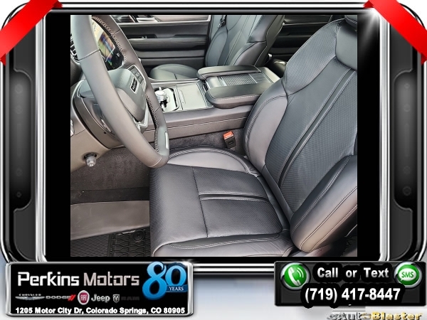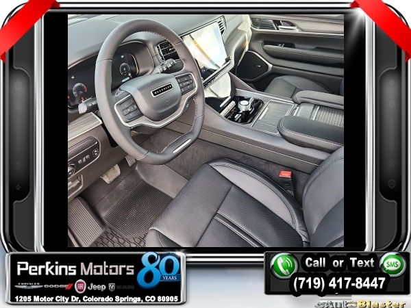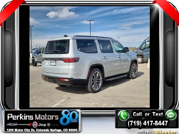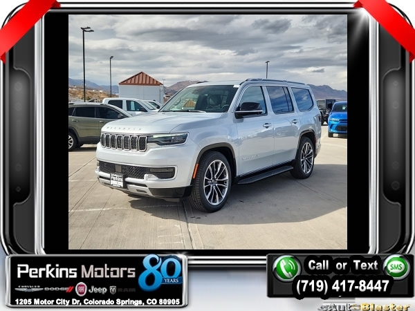 Factory MSRP: $84,370 $6,305 off MSRP! Silver Zynith Clearcoat 2024 Jeep Wagoneer Series II 4WD 8-Speed Automatic 3.0L I6<br><br>Check us out at www.perkinsmotors.com to see our specials! Since opening our doors in 1944, we’ve been proud to serve Colorado Springs, CO, and the surrounding areas of Pueblo, Castle Rock and Denver, CO. Throughout this time of being family owned for 80 years, we’ve maintained a firm commitment to our customers: to offer a wide selection of New Chrysler, Dodge, Fiat, Jeep, and Ram vehicles and quality pre-owned vehicles, and provide a quick, no-hassle car-buying process that ensures everyone drives off the lot satisfied with their purchase.<br><br>Convenience Group I (2nd Row Manual Window Shades, Auto High Beam Headlamp Control, Drowsy Driver Detection, Heads-Up Display, Intersection Collision Assist System, P&P Park & Unpark Assist w/Stop System, Side Distance Warning, Surround View Camera System, and Traffic Sign Recognition), Flexible Seating Group (60/40 Power Recline 3rd Row Seat), MOPAR Interior Protection Package (All-Season Floor Mats and Cargo Tray), Premium Group I (3 Panel Sunroof, Adjustable Roof Rail Crossbars, Cargo Cover, and Reversible Carpet/Vinyl Cargo Mat), Quick Order Package 25J, 10 Speakers, 118 MPH Maximum Speed Calibration, 3.55 Rear Axle Ratio, 3rd row seats: bench, 4-Wheel Disc Brakes, ABS brakes, Adjustable pedals, Air Conditioning, Alloy wheels, AM/FM radio: SiriusXM with 360L, Anti-whiplash front head restraints, Apple CarPlay/Android Auto, Audio memory, Auto-dimming door mirrors, Auto-dimming Rear-View mirror, Auto-leveling suspension, Automatic temperature control, Brake assist, Bumpers: body-color, Compass, Cruise Control, Delay-off headlights, Driver door bin, Driver vanity mirror, Driver's Seat Mounted Armrest, Dual front impact airbags, Dual front side impact airbags, Electronic Stability Control, Emergency communication system: Wagoneer Connect, Exterior Parking Camera Rear, Four wheel independent suspension, Front anti-roll bar, Front Bucket Seats, Front Center Armrest w/Storage, Front dual zone A/C, Front fog lights, Front reading lights, Fully automatic headlights, Garage door transmitter, Genuine wood console insert, Genuine wood dashboard insert, Genuine wood door panel insert, Heated door mirrors, Heated front seats, Heated steering wheel, Illuminated entry, Knee airbag, Leather Trimmed Bucket Seats, Low tire pressure warning, Memory seat, Navigation System, Normal Duty Suspension, Occupant sensing airbag, Outside temperature display, Overhead airbag, Overhead console, Panic alarm, Passenger door bin, Passenger seat mounted armrest, Passenger vanity mirror, Pedal memory, Power adjustable front head restraints, Power door mirrors, Power driver seat, Power Liftgate, Power passenger seat, Power steering, Power windows, Radio data system, Radio: Uconnect 5 Nav w/10.1 Display, Rain sensing wipers, Rear air conditioning, Rear anti-roll bar, Rear dual zone A/C, Rear reading lights, Rear seat center armrest, Rear window defroster, Rear window wiper, Reclining 3rd row seat, Remote keyless entry, Roof rack: rails only, Security system, Speed-sensing steering, Speed-Sensitive Wipers, Split folding rear seat, Steering wheel memory, Steering wheel mounted audio controls, Tachometer, Telescoping steering wheel, Tilt steering wheel, Traction control, Trip computer, Turn signal indicator mirrors, Variably intermittent wipers, Ventilated front seats, Voltmeter, Wheels: 20 x 9.0 Premium 2 Aluminum, and Wheels: 22 x 9.0 Premium 3 Aluminum. Sale price includes all manufacture's incentives and dealer discounts. Sale price not available on lease or compatible with special APR. $1000 - 2024 Conquest Bonus Cash. Exp. 07/31/2024