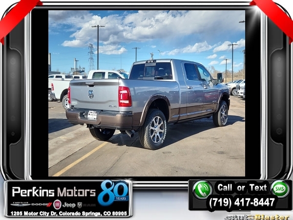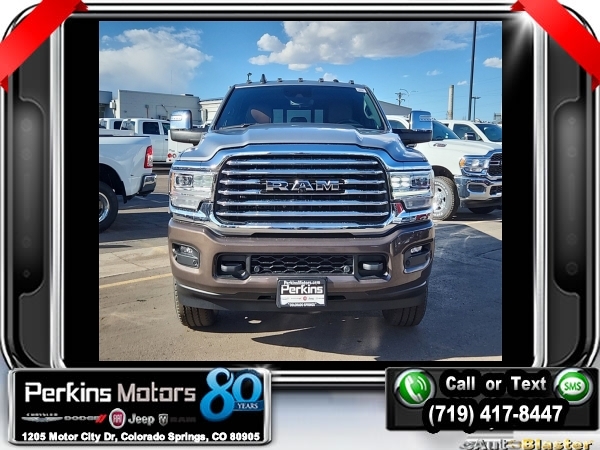 Factory MSRP: $100,485 $8,000 off MSRP! Billet Silver Metallic Clearcoat 2024 Ram 2500 Longhorn 4WD 6-Speed Automatic Cummins 6.7L I6 Turbodiesel<br><br>Check us out at www.perkinsmotors.com to see our specials! Since opening our doors in 1944, we’ve been proud to serve Colorado Springs, CO, and the surrounding areas of Pueblo, Castle Rock and Denver, CO. Throughout this time of being family owned for 80 years, we’ve maintained a firm commitment to our customers: to offer a wide selection of New Chrysler, Dodge, Fiat, Jeep, and Ram vehicles and quality pre-owned vehicles, and provide a quick, no-hassle car-buying process that ensures everyone drives off the lot satisfied with their purchase.<br><br>Cold Weather Group (Engine Block Heater), Longhorn Level 1 Equipment Group (12 Touchscreen Display, 4G LTE Wi-Fi Hot Spot, Alexa Built-In, Apple CarPlay, Blind Spot & Cross Path Detection, Connected Travel & Traffic Services, Connectivity - US/Canada, Disassociated Touchscreen Display, For Details, Visit DriveUconnect.com, For More Info, Call 800-643-2112, Global Telematics Box Module (TBM), Google Android Auto, GPS Antenna Input, GPS Navigation, HD Radio, Integrated Voice Command w/Bluetooth, Off-Road Information Pages, Radio: Uconnect 5 Nav w/12.0 Display, Selectable Tire Fill Alert, SiriusXM Radio Service, SiriusXM w/360L, and Trailer Tow Pages), Protection Group, Quick Order Package 2HK Longhorn, Safety Group (Adaptive Steering System, Full Speed Forward Collision Warning Plus, and Lane Keep Assist), Snow Chief Group (Anti-Spin Differential Rear Axle, Auxiliary Switches Prep, and Clearance Lamps), Tow Technology Plus Group (Digital 3.0 Rear View Auto Dimming Mirror), Towing Technology Group (Center Stop Lamp w/Cargo View Camera), 10 Speakers, 115V Auxiliary Rear Power Outlet, 2 Way Rear Headrest Seat, 220 Amp Alternator, 3.73 Axle Ratio, 4 Way Front Headrests, 4-Wheel Disc Brakes, 5th Wheel/Gooseneck Towing Prep Group, ABS brakes, Active Noise Control System, Air Conditioning, Alloy wheels, AM/FM radio: SiriusXM with 360L, Apple CarPlay/Android Auto, Audio memory, Auto High-beam Headlights, Auto Level Rear Air Suspension, Auto-dimming door mirrors, Auto-dimming Rear-View mirror, Automatic temperature control, Brake assist, Bucket Seats, Bumpers: body-color, Center Hub, Compass, Cruise Control, Delay-off headlights, Driver door bin, Driver vanity mirror, Dual Alternators Rated At 440 Amps, Dual front impact airbags, Dual front side impact airbags, Electronic Stability Control, Electronically Controlled Throttle, Front anti-roll bar, Front Bucket Seats, Front Center Armrest w/Storage, Front dual zone A/C, Front fog lights, Front License Plate Bracket, Front reading lights, Front Seat Back Map Pockets, Full Length Premium Upgraded Floor Console, Fully automatic headlights, Garage door transmitter, Genuine wood console insert, Genuine wood dashboard insert, Genuine wood door panel insert, Heated door mirrors, Heated Front Seats, Heated front seats, Heated rear seats, Heated Second Row Seats, Heated Steering Wheel, Heated steering wheel, High Back Seats, Illuminated entry, Leather steering wheel, Low tire pressure warning, Manufacturer's Statement of Origin, Memory seat, MOPAR Deployable Bed Step, Navigation System, Occupant sensing airbag, Outside temperature display, Overhead airbag, Overhead console, Panic alarm, ParkView Rear Back-Up Camera, Passenger door bin, Passenger vanity mirror, Power 2-Way Driver Lumbar Adjust, Power 2-Way Passenger Lumbar Adjust, Power Adjust 8-Way Driver Seat, Power Adjust 8-Way Front Passenger Seat, Power door mirrors, Power driver seat, Power passenger seat, Power steering, Power Sunroof, Power windows, Premium Filigree Leather Seats, Radio data system, Radio: Uconnect 5 Nav w/8.4 Display, Radio/Driver Seat/Mirrors/Pedals Memory, Rain sensing wipers, Rear 60/40 Folding Seat, Rear anti-roll bar, Rear reading lights, Rear seat center armrest, Rear step bumper, Rear window defroster, Remote keyles