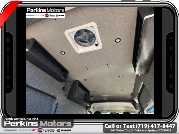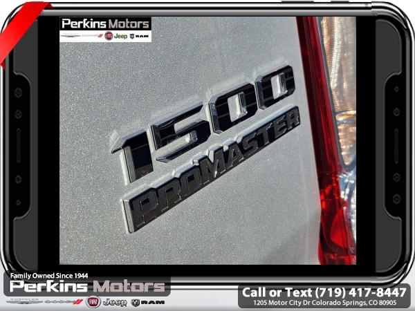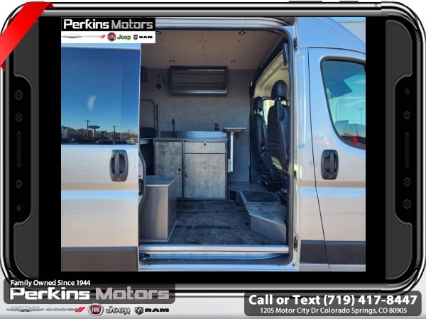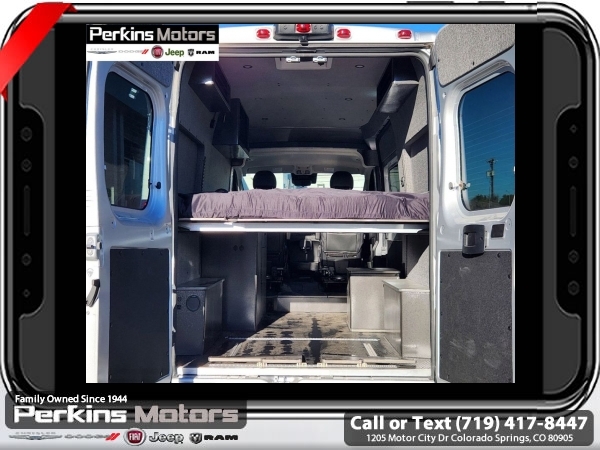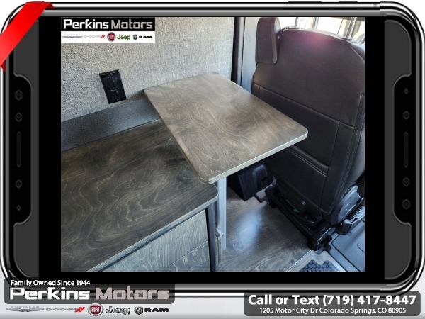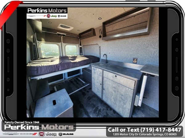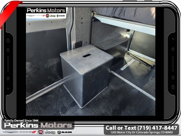Factory MSRP: $61,120 Bright Silver Metallic Clearcoat 2024 Ram ProMaster 1500 Camper Van FWD 9-Speed 948TE Automatic 3.6L V6 24V VVT<br>Aerie Camper Van Conversion.<br>Check us out at www.perkinsmotors.com to see our specials! Since opening our doors in 1944, we’ve been proud to serve Colorado Springs, CO, and the surrounding areas of Pueblo, Castle Rock and Denver, CO. Throughout this time of being family owned for 80 years, we’ve maintained a firm commitment to our customers: to offer a wide selection of New Chrysler, Dodge, Fiat, Jeep, and Ram vehicles and quality pre-owned vehicles, and provide a quick, no-hassle car-buying process that ensures everyone drives off the lot satisfied with their purchase.<br><br>Leather Interior Group (6-Way Manual Adjust Driver Seat, Black/Gray Seats, Driver Seat Armrest, Driver Swivel Seat, Leather Trimmed Bucket Seats, Leather Wrapped Steering Wheel, Manual 2-Way Driver Lumbar Adjust, Manual 2-Way Passenger Lumbar Adjust, Passenger Bucket Seat, Passenger Seat Armrest, and Passenger Swivel Seat), Quick Order Package 22H SLT+ (100 Amp Battery, 115V Auxiliary Power Outlet, 12V Rear Auxiliary Power Outlet, 220 Amp Alternator, 6-Way Manual Adjust Front Passenger Seat, Auto High Beam Headlamp Control, Automatic Headlamps, Blind Spot & Cross Path Detection, Connected Travel & Traffic Services, Cowl Aesthetic Cover, Digital Rearview Mirror w/Autodim, Exterior Mirrors w/Heating Element, Front LED Fog Lamps, GPS Navigation, HD Radio, Instrument Panel Bright Bezels, Intelligent Speed Assist (ISA), Lane Departure Warning Plus, LED Daytime Running Headlamps, LED Reflector Headlamps, ParkSense Front/Rear Park Assist System, Passive Entry, Power Adjust Mirrors, Power Folding/Heated Mirrors, Power-Adjustable Convex Aux Mirrors, Radio: Uconnect 5 Nav w/10.1 Display, Rain Sensitive Windshield Wipers, Remote Start System, Security Alarm, SiriusXM w/360L, Traffic Sign Information, Wheels: 16 x 6.0 Aluminum Painted Silver, and Wireless Charging Pad), Rear Heater - A/C Prep Package, 4 Speakers, 4-Wheel Disc Brakes, 4.08 Axle Ratio, ABS brakes, Air Conditioning, AM/FM radio: SiriusXM, Apple CarPlay/Android Auto, Black Seats, Bodyside moldings, Brake assist, Class IV Receiver Hitch, Cloth Bucket Seats, Deep Tint Sunscreen Glass, Driver door bin, Driver's Seat Mounted Armrest, Electronic Stability Control, Exterior Mirrors w/Supplemental Signals, Front anti-roll bar, Front Bucket Seats, Front License Plate Bracket, Front reading lights, Front wheel independent suspension, Illuminated entry, Low tire pressure warning, Manufacturer's Statement of Origin, Medium Duty Suspension, Outside temperature display, Overhead airbag, Overhead console, ParkView Rear Back-Up Camera, Passenger door bin, Passenger Sliding Door w/Window (Polycarb), Polycarbonate Window Material, Power steering, Power windows, Radio: Uconnect 5 w/7 Display, Rear Hinged Doors w/Fixed Glass, Rear View Day/Night Mirror, Rear Window Defroster, Remote keyless entry, Steering wheel mounted audio controls, Tachometer, Telescoping steering wheel, Traction control, Trip computer, Turn signal indicator mirrors, Variably intermittent wipers, Wheel Center Cap, and Wheels: 16 x 6.0 Steel. Sale price includes all manufacture's incentives and dealer discounts. Sale price not available on lease or compatible with special APR. $2000 - 2024 Bonus Cash . Exp. 06/30/2025 $5029 - 2024 National Minimum Employee Pricing Discount . Exp. 06/30/2025 Price includes $25,995 in dealer added accessories.