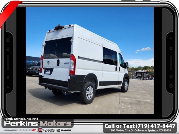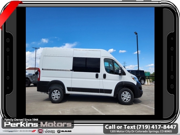 Factory MSRP: $60,825 Bright White Clearcoat 2024 Ram ProMaster 1500 Camper Van FWD 9-Speed 948TE Automatic 3.6L V6 24V VVT<br>ABS brakes, Electronic Stability Control, Illuminated entry, Low tire pressure warning, ParkView Rear Back-Up Camera, Remote keyless entry, Traction control.<br>Check us out at www.perkinsmotors.com to see our specials! Since opening our doors in 1944, we’ve been proud to serve Colorado Springs, CO, and the surrounding areas of Pueblo, Castle Rock and Denver, CO. Throughout this time of being family owned for 80 years, we’ve maintained a firm commitment to our customers: to offer a wide selection of New Chrysler, Dodge, Fiat, Jeep, and Ram vehicles and quality pre-owned vehicles, and provide a quick, no-hassle car-buying process that ensures everyone drives off the lot satisfied with their purchase.<br><br>ABS brakes, Electronic Stability Control, Illuminated entry, Low tire pressure warning, ParkView Rear Back-Up Camera, Remote keyless entry, Traction control, 4 Speakers, 4-Wheel Disc Brakes, 4.08 Axle Ratio, Air Conditioning, AM/FM radio: SiriusXM, Apple CarPlay/Android Auto, Black/Gray Seats, Bodyside moldings, Brake assist, Cloth Bucket Seats, Driver door bin, Driver Seat Armrest, Driver's Seat Mounted Armrest, Exterior Mirrors w/Supplemental Signals, Front anti-roll bar, Front Bucket Seats, Front reading lights, Front wheel independent suspension, Medium Duty Suspension, Outside temperature display, Overhead airbag, Overhead console, Passenger door bin, Power steering, Power windows, Radio: Uconnect 5 w/7 Display, Steering wheel mounted audio controls, Tachometer, Telescoping steering wheel, Trip computer, Turn signal indicator mirrors, Variably intermittent wipers, Wheel Center Cap, and Wheels: 16 x 6.0 Steel. Sale price includes all manufacture's incentives and dealer discounts. Sale price not available on lease or compatible with special APR. $2000 - 2024 Bonus Cash . Exp. 06/30/2025 $5029 - 2024 National Minimum Employee Pricing Discount . Exp. 06/30/2025 Price includes $25,995 in dealer added accessories.