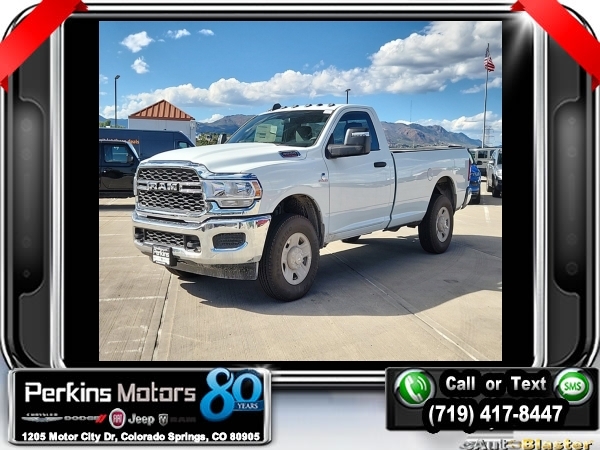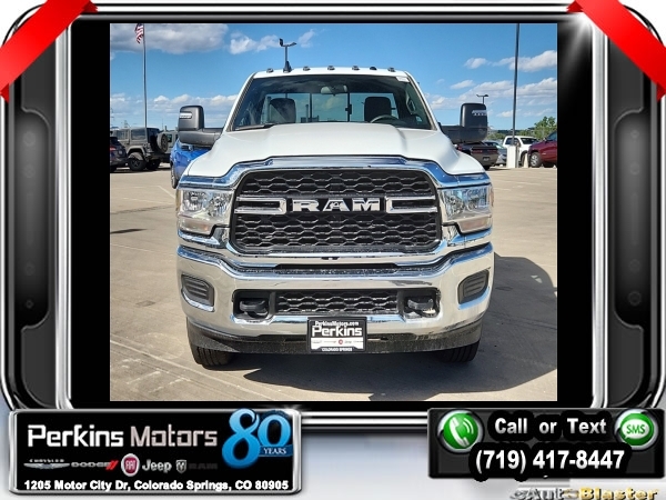 Factory MSRP: $65,410 $7,000 off MSRP! Priced below KBB Fair Purchase Price! Bright White Clearcoat 2024 Ram 3500 Tradesman 4WD 6-Speed Automatic I6<br><br>Check us out at www.perkinsmotors.com to see our specials! Since opening our doors in 1944, we’ve been proud to serve Colorado Springs, CO, and the surrounding areas of Pueblo, Castle Rock and Denver, CO. Throughout this time of being family owned for 80 years, we’ve maintained a firm commitment to our customers: to offer a wide selection of New Chrysler, Dodge, Fiat, Jeep, and Ram vehicles and quality pre-owned vehicles, and provide a quick, no-hassle car-buying process that ensures everyone drives off the lot satisfied with their purchase.<br><br>Chrome Appearance Group (Bright Front Bumper, Bright Rear Bumper, Chrome Grille Surround, and Matte Black Mesh w/Chrome Grille), Cold Weather Group (Engine Block Heater and MOPAR Winter Front Grille Cover), Heavy Duty Snow Plow Prep Group (220 Amp Alternator), Protection Group, Quick Order Package 2HA Tradesman, Tradesman Level 2 Equipment Group (40/20/40 Split Bench Seat, Black Exterior Mirrors, Carpet Floor Covering, Cloth 40/20/40 Bench Seat, Exterior Mirrors Courtesy Lamps, Exterior Mirrors w/Heating Element, Exterior Mirrors w/Supplemental Signals, For More Info, Call 800-643-2112, Front Armrest w/Cupholders, Front Floor Mats, Manual Adjust 4-Way Driver Seat, Manual Adjust 4-Way Front Passenger Seat, Manual Folding Exterior Mirrors, Manual Telescoping Mirrors, Mirror Running Lights, Overhead Console, Overhead Cupholder Lamp, Power Adjust Mirrors, Power Heat Fold Telescope Mirrors, Power-Adjustable Convex Aux Mirrors, Rear Sliding Window, Remote Keyless Entry, Remote USB Port - Charge Only, SiriusXM Radio Service, SiriusXM Satellite Radio, and Upgraded Door Trim Panel), 2-Way Front Head Restraints, 3.73 Axle Ratio, 4 Speakers, 4-Wheel Disc Brakes, 4G LTE Wi-Fi Hot Spot, 8.4 Touchscreen Display, ABS brakes, Air Conditioning, All R1 Low Radios, All Radio-Equipped Vehicles, AM/FM radio, Apple CarPlay, Auto Power-Folding Mirrors, Bluetooth Handsfree Phone & Audio, Brake assist, Center Hub, Center Stop Lamp w/Cargo View Camera, Clearance Lamps, Compass, Connectivity - US/Canada, Cruise Control, Dash Pass Thru Wire Circuits, Delay-off headlights, Driver door bin, Dual front impact airbags, Dual front side impact airbags, Electric Shift-On-The-Fly Transfer Case, Electronic Stability Control, Electronically Controlled Throttle, Emergency communication system: SiriusXM Guardian, For Details Visit DriveUconnect.com, Forward & Reverse Utility Lights, Front anti-roll bar, Front Bumper Sight Shields, Front Center Armrest w/Storage, Front License Plate Bracket, Front reading lights, Fully automatic headlights, Global Telematics Box Module (TBM), Google Android Auto, GPS Antenna Input, HD Vinyl 40/20/40 Split Bench Seat, I/P Mounted Auxiliary Switches, Illuminated entry, Integrated Center Stack Radio, Integrated Voice Command w/Bluetooth, Low tire pressure warning, Manufacturer's Statement of Origin, MOPAR Front Rubber Floor Mats, Occupant sensing airbag, Outside temperature display, Overhead airbag, ParkView Rear Back-Up Camera, Passenger door bin, Passenger vanity mirror, Power Heated Fold Telescope Mirrors, Power steering, Power Telescoping Mirrors, Radio data system, Radio: Uconnect 3 w/5 Display, Radio: Uconnect 5 w/8.4 Display, Rear step bumper, Selectable Tire Fill Alert, Tachometer, Tilt steering wheel, Tip Start, Traction control, Trailer Brake Control, Trailer Light Check, Variably intermittent wipers, Voltmeter, Wheels: 18 x 8.0 Steel, and Wheels: 18 x 8.0 Steel Chrome ClaD.