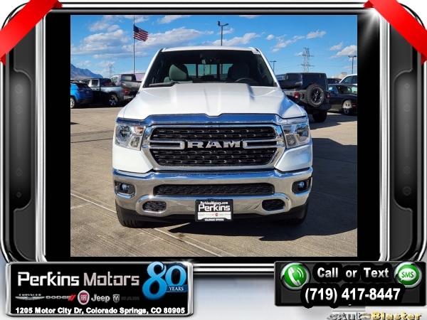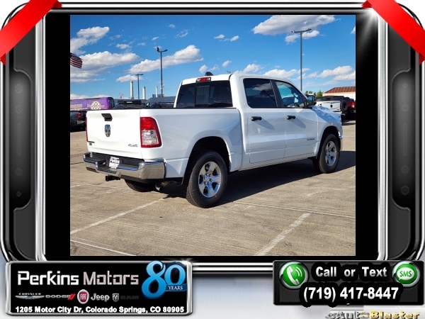 Factory MSRP: $55,050 $12,000 off MSRP! Priced below KBB Fair Purchase Price! Bright White Clearcoat 2024 Ram 1500 Big Horn/Lone Star 4WD 8-Speed Automatic 3.6L V6 24V VVT<br><br>Check us out at www.perkinsmotors.com to see our specials! Since opening our doors in 1944, we’ve been proud to serve Colorado Springs, CO, and the surrounding areas of Pueblo, Castle Rock and Denver, CO. Throughout this time of being family owned for 80 years, we’ve maintained a firm commitment to our customers: to offer a wide selection of New Chrysler, Dodge, Fiat, Jeep, and Ram vehicles and quality pre-owned vehicles, and provide a quick, no-hassle car-buying process that ensures everyone drives off the lot satisfied with their purchase.<br><br>Big Horn Level 1 Equipment Group (2nd Row In Floor Storage Bins, 4G LTE Wi-Fi Hot Spot, Apple CarPlay, Auto-Dimming Exterior Driver Mirror, Auto-Dimming Rear-View Mirror, Black Premium Power Mirrors, Bluetooth Handsfree Phone & Audio, Class IV Receiver Hitch, Connectivity - US/Canada, Convex Wide-Angle Exterior Mirror Insert, Electric Shift-On-Demand Transfer Case, Exterior Mirrors Courtesy Lamps, Exterior Mirrors w/Heating Element, Exterior Mirrors w/Supplemental Signals, For Details, Visit DriveUconnect.com, For More Info, Call 800-643-2112, Front Fog Lamps, Global Telematics Box Module (TBM), Glove Box Lamp, Google Android Auto, Heated Front Seats, Heated Steering Wheel, Passenger Sun Visor w/Illuminated Mirror, Power-Folding Mirrors, Radio: Uconnect 5 W w/8.4 Display, Rear Dome w/On/Off Switch Lamp, Rear Power Sliding Window, Rear Window Defroster, SiriusXM Radio Service, SiriusXM Satellite Radio, and USB Host Flip), Quick Order Package 23Z Big Horn (Big Horn Badge), 3 Rear Seat Head Restraints, 3.21 Rear Axle Ratio, 4 Way Front Headrests, 4-Wheel Disc Brakes, 48V Belt Starter Generator, 6 Speakers, ABS brakes, Air Conditioning, Alloy wheels, AM/FM radio, Brake assist, Bumpers: chrome, Cloth Bench Seat, Compass, Cruise Control, Delay-off headlights, Driver door bin, Dual front impact airbags, Dual front side impact airbags, Electronic Stability Control, Emergency communication system: RAM Connect, Front anti-roll bar, Front Center Armrest w/Storage, Front License Plate Bracket, Front reading lights, Front Seat Back Map Pockets, Front wheel independent suspension, Fully automatic headlights, Heated door mirrors, Illuminated entry, Integrated Voice Command w/Bluetooth, Leather steering wheel, Low tire pressure warning, Manufacturer's Statement of Origin, MOPAR Front & Rear Rubber Floor Mats, Occupant sensing airbag, Outside temperature display, Overhead airbag, Overhead console, Panic alarm, ParkView Rear Back-Up Camera, Passenger door bin, Passenger vanity mirror, Power door mirrors, Power steering, Power windows, Radio data system, Radio: Uconnect 3 w/5 Display, RAM Grille Badge - Chrome, Rear 60/40 Folding Seat, Rear anti-roll bar, Rear seat center armrest, Rear step bumper, Rear Wheelhouse Liners, Remote keyless entry, Split folding rear seat, Steering wheel mounted audio controls, Tachometer, Telescoping steering wheel, Tilt steering wheel, Traction control, Trailer Brake Control, Trip computer, Variably intermittent wipers, Voltmeter, and Wheels: 18 x 8 Cast-Aluminum PainteD. Sale price includes all manufacture's incentives and dealer discounts. Sale price not available on lease or compatible with special APR. $2000 - 2024 SFS Bonus Cash . Exp. 07/31/2024 $2500 - 2024 National Retail Consumer Cash . Exp. 07/31/2024