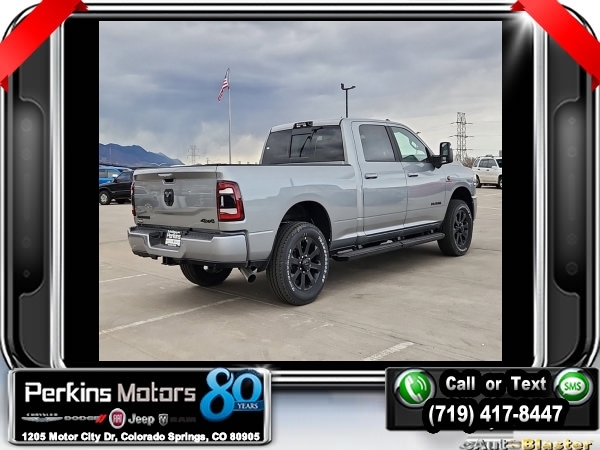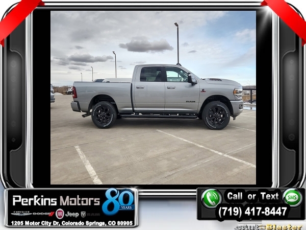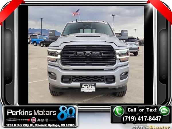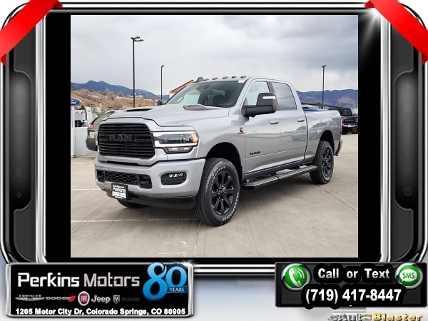 Factory MSRP: $91,955 $14,735 off MSRP! Billet Silver Metallic Clearcoat 2024 Ram 2500 Laramie 4WD 6-Speed Automatic Cummins 6.7L I6 Turbodiesel<br><br>Check us out at www.perkinsmotors.com to see our specials! Since opening our doors in 1944, we’ve been proud to serve Colorado Springs, CO, and the surrounding areas of Pueblo, Castle Rock and Denver, CO. Throughout this time of being family owned for 80 years, we’ve maintained a firm commitment to our customers: to offer a wide selection of New Chrysler, Dodge, Fiat, Jeep, and Ram vehicles and quality pre-owned vehicles, and provide a quick, no-hassle car-buying process that ensures everyone drives off the lot satisfied with their purchase.<br><br>Bed Utility Group (LED Bed Lighting, MOPAR Deployable Bed Step, and MOPAR Spray In Bedliner), Cold Weather Group (Engine Block Heater and MOPAR Winter Front Grille Cover), Heavy Duty Snow Plow Prep Group (220 Amp Alternator), Laramie Level 1 Equipment Group (12 Touchscreen Display, 2nd Row In Floor Storage Bins, 4G LTE Wi-Fi Hot Spot, Alexa Built-In, Apple CarPlay, Auto Adjust In Reverse Exterior Mirrors, Auto Dim Exterior Mirror, Auto High Beam Headlamp Control, Auto Power-Folding Mirrors, Auto-Dimming Exterior Passenger Mirror, Blind Spot & Cross Path Detection, Center Hub, Chrome Exterior Mirrors, Connected Travel & Traffic Services, Connectivity - US/Canada, Disassociated Touchscreen Display, Exterior Mirrors Courtesy Lamps, Exterior Mirrors w/Heating Element, Exterior Mirrors w/Memory, Exterior Mirrors w/Supplemental Signals, Foam Bottle Insert (Door Trim Panel), For Details, Visit DriveUconnect.com, For More Info, Call 800-643-2112, Forward & Reverse Utility Lights, Front LED Fog Lamps, Global Telematics Box Module (TBM), Google Android Auto, GPS Antenna Input, GPS Navigation, HD Radio, Integrated Voice Command w/Bluetooth, LED Reflector Headlamps, LED Tail Lamps, Mirror Running Lights, Off-Road Information Pages, ParkSense Front/Rear Park Assist System, Power Adjust Mirrors, Power Adjustable Convex Aux Mirrors, Power Adjustable Pedals w/Memory, Power Heated Fold Telescopic Mirrors w/Memory, Power Telescoping Mirrors, Radio: Uconnect 5 Nav w/12.0 Display, Rain Sensitive Windshield Wipers, Rear Power Sliding Window, Rear Window Defroster, Remote Tailgate Release, Selectable Tire Fill Alert, SiriusXM Radio Service, SiriusXM w/360L, Trailer Tow Pages, and Wheels: 18 x 8.0 Polished Aluminum), Night Edition (Black Exterior Truck Badging, Black Headlamp Bezels, Black Interior Accents, Black Ram Head Tailgate Badge, Black Tail Lamp Bezels, Black Wheel Center Hub, Body Color Grille Surround, Gloss Black Grille Billets/Accents, Sport Performance Hood, and Wheels: 20 x 8.0 Black Painted Aluminum), Protection Group (Tow Hooks), Quick Order Package 2HH Laramie, Safety Group (Adaptive Cruise Control w/Stop, Adaptive Steering System, Full Speed Forward Collision Warning Plus, and Lane Keep Assist), Tow Technology Plus Group (Digital 3.0 Rear View Auto Dimming Mirror and Trailer Reverse Steering Control), Towing Technology Group (CTR Stop Lamp w/Cargo View Camera, Surround View Camera System, and Trailer Reverse Guidance), 10 Speakers, 115V Auxiliary Rear Power Outlet, 2 Way Rear Headrest Seat, 3.73 Axle Ratio, 4 Way Front Headrests, 4-Wheel Disc Brakes, 5th Wheel/Gooseneck Towing Prep Group, ABS brakes, Active Noise Control System, Air Conditioning, Alloy wheels, AM/FM radio: SiriusXM with 360L, Apple CarPlay/Android Auto, Auto Level Rear Air Suspension, Automatic temperature control, Brake assist, Bumpers: body-color, Clearance Lamps, Compass, Cruise Control, Delay-off headlights, Driver door bin, Driver vanity mirror, Dual front impact airbags, Dual front side impact airbags, Electronic Stability Control, Electronically Controlled Throttle, Front anti-roll ba Sale price includes all manufacture's incentives and dealer discounts. Sale price not available on lease or compatible with special APR. $1000 - 2024 Bonus Cash . Exp. 1