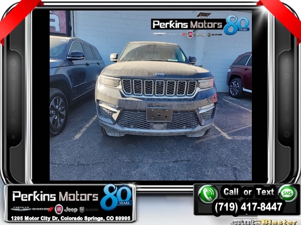 Midnight Sky 4WD 2.0L I4 DOHC 8-Speed Automatic<br><br>2.0L I4 DOHC, 4WD, 10 Speakers, 2nd-Row Manual Window Shades, 7 & 4 Pin Wiring Harness, Auto-Dimming Exterior Driver Mirror, Automatic Headlamp Levelling System, Capri Leatherette w/Axis II Seats, Class IV Receiver Hitch, Integrated Off-Road Camera, Intersection Collision Assist System, Luxury Tech Group II, Memory Steering Column, Navigation System, ParkSense Front/Rear Park Assist w/Stop, Passive Entry - Front/Rear Doors, Liftgate, Power moonroof, Power Tilt/Telescope Steering Column, Quick Order Package 27F, Radio: Uconnect 5 Nav w/10.1 Display, Rain Sensitive Windshield Wipers, Rear Back Up Camera Washer, Rear Load Levelling Suspension, Rearview Autodim Digital Display Mirror, Surround View Camera System, Trailer Tow Package, Ventilated Front Seats, Wheels: 20 x 8.5 Machined Painted Aluminum, Wireless Charging Pad.<br><br><br>Clean CARFAX.<br><br>Check us out at www.perkinsmotors.com to see our specials! Since opening our doors in 1944, we’ve been proud to serve Colorado Springs, CO, and the surrounding areas of Pueblo, Castle Rock and Denver, CO. Throughout this time of being family owned for 80 years, we’ve maintained a firm commitment to our customers: to offer a wide selection of New Chrysler, Dodge, Fiat, Jeep, and Ram vehicles and quality pre-owned vehicles, and provide a quick, no-hassle car-buying process that ensures everyone drives off the lot satisfied with their purchase.<br><br><br>Luxury Tech Group II (2nd-Row Manual Window Shades, Auto-Dimming Exterior Driver Mirror, Capri Leatherette w/Axis II Seats, Integrated Off-Road Camera, Intersection Collision Assist System, Memory Steering Column, ParkSense Front/Rear Park Assist w/Stop, Passive Entry - Front/Rear Doors, Liftgate, Power Tilt/Telescope Steering Column, Rain Sensitive Windshield Wipers, Rear Back Up Camera Washer, Rearview Autodim Digital Display Mirror, Surround View Camera System, Ventilated Front Seats, and Wireless Charging Pad), Quick Order Package 27F, Trailer Tow Package (7 & 4 Pin Wiring Harness, Automatic Headlamp Levelling System, Class IV Receiver Hitch, and Rear Load Levelling Suspension), 2.0L I4 DOHC, 4WD, 10 Speakers, Navigation System, Power moonroof, Radio: Uconnect 5 Nav w/10.1 Display, Wheels: 20 x 8.5 Machined Painted Aluminum, 3.70 Rear Axle Ratio, 4-Wheel Disc Brakes, ABS brakes, Air Conditioning, Alloy wheels, AM/FM radio: SiriusXM with 360L, Anti-whiplash front head restraints, Audio memory, Auto High-beam Headlights, Automatic temperature control, Brake assist, Bumpers: body-color, Capri Leatherette Seats, Compass, Cruise Control, Delay-off headlights, Driver door bin, Driver vanity mirror, Dual front impact airbags, Dual front side impact airbags, Electronic Stability Control, Four wheel independent suspension, Front anti-roll bar, Front Bucket Seats, Front Center Armrest w/Storage, Front dual zone A/C, Front fog lights, Front License Plate Bracket, Front reading lights, Fully automatic headlights, Garage door transmitter, Heated door mirrors, Heated front seats, Heated rear seats, Heated steering wheel, Heavy Duty Suspension, Illuminated entry, Knee airbag, Low tire pressure warning, Memory seat, Occupant sensing airbag, Outside temperature display, Overhead airbag, Overhead console, Panic alarm, ParkView Rear Back-Up Camera, Passenger door bin, Passenger vanity mirror, Power door mirrors, Power driver seat, Power Liftgate, Power passenger seat, Power steering, Power windows, Radio data system, Rear anti-roll bar, Rear reading lights, Rear window defroster, Rear window wiper, Remote keyless entry, Roof rack: rails only, Security system, Speed-Sensitive Wipers, Split folding rear seat, Spoiler, Steering wheel mounted audio controls, Tachometer, Telescoping steering wheel, Tilt steering wheel, Traction control, Trip computer, Turn signal indicator mirrors, Variably intermittent wipers, Voltmeter, and Wheels: 18 x 8 Fully Painted Aluminum.