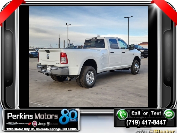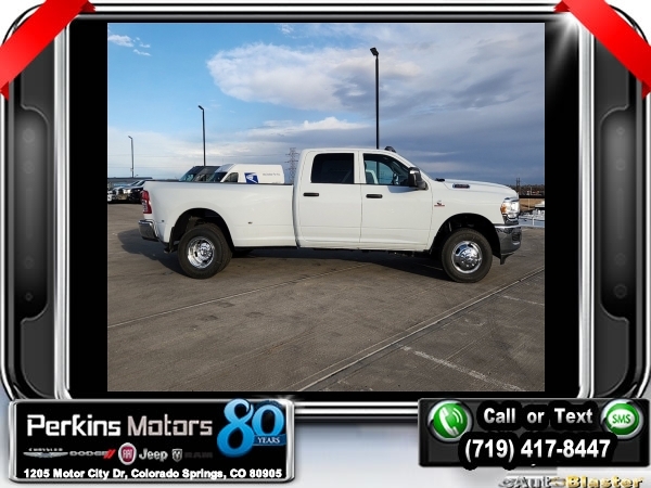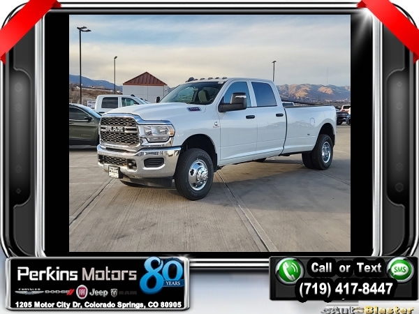 Factory MSRP: $75,945 $12,000 off MSRP! Bright White Clearcoat 2024 Ram 3500 Tradesman 4WD Aisin 6-Speed Automatic I6<br><br>Check us out at www.perkinsmotors.com to see our specials! Since opening our doors in 1944, we’ve been proud to serve Colorado Springs, CO, and the surrounding areas of Pueblo, Castle Rock and Denver, CO. Throughout this time of being family owned for 80 years, we’ve maintained a firm commitment to our customers: to offer a wide selection of New Chrysler, Dodge, Fiat, Jeep, and Ram vehicles and quality pre-owned vehicles, and provide a quick, no-hassle car-buying process that ensures everyone drives off the lot satisfied with their purchase.<br><br>Chrome Appearance Group (Bright Front Bumper, Bright Rear Bumper, Center Hub, Chrome Grille Surround, and Matte Black Mesh w/Chrome Grille), Cold Weather Group (Engine Block Heater and MOPAR Winter Front Grille Cover), Heavy Duty Snow Plow Prep Group (220 Amp Alternator), Protection Group, Quick Order Package 21A Tradesman, Tradesman Level 2 Equipment Group (2 Way Rear Headrest Seat, 4 Way Front Headrests, 40/20/40 Split Bench Seat, Black Exterior Mirrors, Carpet Floor Covering, Cloth 40/20/40 Bench Seat, Exterior Mirrors Courtesy Lamps, Exterior Mirrors w/Heating Element, Exterior Mirrors w/Supplemental Signals, Front & Rear Floor Mats, Front Armrest w/Cupholders, Manual Adjust 4-Way Driver Seat, Manual Adjust 4-Way Front Passenger Seat, Manual Folding Exterior Mirrors, Manual Telescoping Mirrors, Mirror Running Lights, Power Adjust Mirrors, Power Heat Fold Telescopic Mirrors, Power-Adjustable Convex Aux Mirrors, Rear Folding Seat, Rear Window Defroster, Remote USB Port - Charge Only, and Storage Tray), 3.73 Axle Ratio, 4-Wheel Disc Brakes, 4.10 Axle Ratio, 50 Gallon Fuel Tank, 5th Wheel/Gooseneck Towing Prep Group, 6 Speakers, 6000# Front Axle w/Hub Ext, ABS brakes, Active Noise Control System, Air Conditioning, AM/FM radio, Auto Level Rear Air Suspension, Box & Rear Fender Clearance Lamps, Brake assist, Clearance Lamps, Compass, Cruise Control, CTR Stop Lamp w/Cargo View Camera, Dash Pass Thru Wire Circuits, Delay-off headlights, Driver door bin, Dual front impact airbags, Dual front side impact airbags, Dual Rear Wheels, Electric Shift-On-The-Fly Transfer Case, Electronic Stability Control, Electronically Controlled Throttle, Emergency communication system: SiriusXM Guardian, For Details Visit DriveUconnect.com, Front anti-roll bar, Front Center Armrest w/Storage, Front License Plate Bracket, Front reading lights, Fully automatic headlights, Global Telematics Box Module (TBM), GPS Antenna Input, HD Vinyl 40/20/40 Split Bench Seat, I/P Mounted Auxiliary Switches, Illuminated entry, Integrated Center Stack Radio, Integrated Voice Command w/Bluetooth, Low tire pressure warning, Manufacturer's Statement of Origin, MOPAR Front & Rear Rubber Floor Mats, Occupant sensing airbag, Outside temperature display, Overhead airbag, Overhead console, ParkView Rear Back-Up Camera, Passenger door bin, Passenger vanity mirror, Power steering, Power windows, Radio data system, Radio: Uconnect 3 w/5 Display, Radio: Uconnect 5 w/8.4 Display, Rear step bumper, Rear Wheelhouse Liners, SiriusXM Radio Service, Tachometer, Tilt steering wheel, Tip Start, Traction control, Trailer Brake Control, Trailer Light Check, Variably intermittent wipers, Voltmeter, Wheels: 17 x 6.0 Steel Argent, Wheels: 17 x 6.0 Steel Chrome Clad, and Wheels: 18 x 8.0 SteeL. Sale price includes all manufacture's incentives and dealer discounts. Sale price not available on lease or compatible with special APR. $1000 - 2024 Bonus Cash . Exp. 09/03/2024 $5,000 - Exp. 09/30/2024