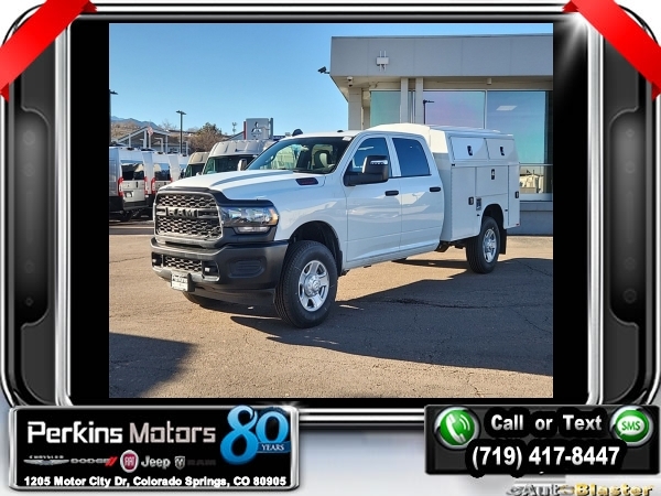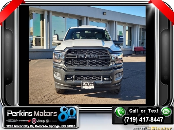 Factory MSRP: $57,195 Bright White Clearcoat 2024 Ram 3500 Tradesman 4WD 8-Speed Automatic 6.4L V8<br>KNAPHEIDE KUV 62 HEIGHT.<br>Check us out at www.perkinsmotors.com to see our specials! Since opening our doors in 1944, we’ve been proud to serve Colorado Springs, CO, and the surrounding areas of Pueblo, Castle Rock and Denver, CO. Throughout this time of being family owned for 80 years, we’ve maintained a firm commitment to our customers: to offer a wide selection of New Chrysler, Dodge, Fiat, Jeep, and Ram vehicles and quality pre-owned vehicles, and provide a quick, no-hassle car-buying process that ensures everyone drives off the lot satisfied with their purchase.<br><br>Heavy Duty Snow Plow Prep Group (220 Amp Alternator), Protection Group, Quick Order Package 2GA Tradesman, Tradesman Level 1 Equipment Group, 2 Way Rear Headrest Seat, 3.73 Axle Ratio, 4 Way Front Headrests, 4-Wheel Disc Brakes, 40/20/40 Split Bench Seat, 4G LTE Wi-Fi Hot Spot, 6 Speakers, 8.4 Touchscreen Display, ABS brakes, Active Noise Control System, Air Conditioning, All R1 Low Radios, All Radio Equipped Vehicles, AM/FM radio, Apple CarPlay, Auto Power-Folding Mirrors, Black Exterior Mirrors, Bluetooth Handsfree Phone & Audio, Brake assist, Center Hub, Compass, Connectivity - US/Canada, Cruise Control, Dash Pass Thru Wire Circuits, Delay-off headlights, Driver door bin, Dual front impact airbags, Dual front side impact airbags, Electric Shift-On-The-Fly Transfer Case, Electronic Stability Control, Electronically Controlled Throttle, Emergency communication system: SiriusXM Guardian, Exterior Mirrors Courtesy Lamps, Exterior Mirrors w/Heating Element, Exterior Mirrors w/Supplemental Signals, For Details Visit DriveUconnect.com, For More Info, Call 800-643-2112, Forward & Reverse Utility Lights, Front anti-roll bar, Front Armrest w/Cupholders, Front Center Armrest w/Storage, Front License Plate Bracket, Front reading lights, Fully automatic headlights, Global Telematics Box Module (TBM), Google Android Auto, GPS Antenna Input, HD Vinyl 40/20/40 Split Bench Seat, I/P Mounted Auxiliary Switches, Illuminated entry, Integrated Center Stack Radio, Integrated Voice Command w/Bluetooth, Low tire pressure warning, Manual Adjust 4-Way Driver Seat, Manual Adjust 4-Way Front Passenger Seat, Manual Folding Exterior Mirrors, Manual Telescoping Mirrors, Manufacturer's Statement of Origin, Mirror Running Lights, Occupant sensing airbag, Outside temperature display, Overhead airbag, Overhead console, ParkView Rear Back-Up Camera, Passenger door bin, Passenger vanity mirror, Power Adjust Mirrors, Power Heated Fold Telescopic Mirrors, Power steering, Power Telescoping Mirrors, Power windows, Power-Adjustable Convex Aux Mirrors, Radio data system, Radio: Uconnect 3 w/5 Display, Radio: Uconnect 5 w/8.4 Display, Rear Folding Seat, Rear step bumper, Remote USB Port - Charge Only, Selectable Tire Fill Alert, SiriusXM Radio Service, SiriusXM Satellite Radio, Storage Tray, Tachometer, Tilt steering wheel, Tip Start, Traction control, Trailer Brake Control, Trailer Light Check, Variably intermittent wipers, Voltmeter, and Wheels: 18 x 8.0 SteeL. Price includes $23,495 in dealer added accessories.