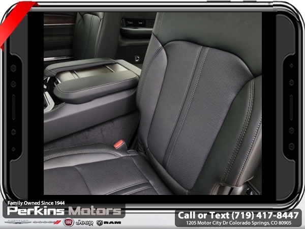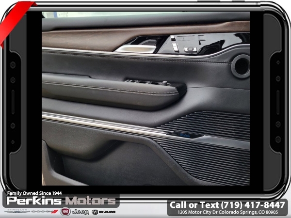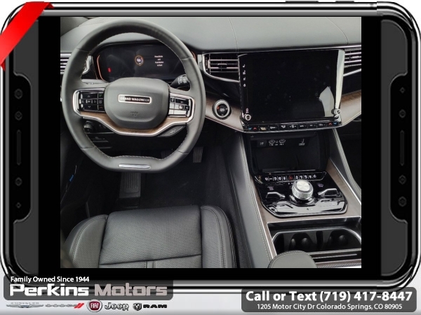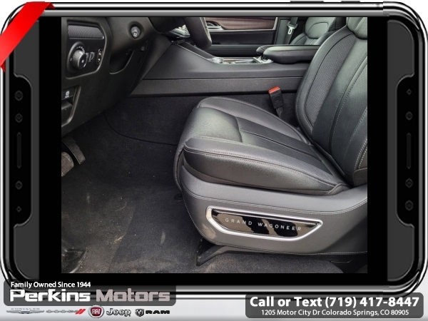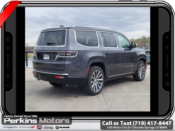 Factory MSRP: $101,700 $13,775 off MSRP! Baltic Gray Metallic Clearcoat 2024 Jeep Grand Wagoneer 4WD 8-Speed Automatic 3.0L I6<br><br>Check us out at www.perkinsmotors.com to see our specials! Since opening our doors in 1944, we’ve been proud to serve Colorado Springs, CO, and the surrounding areas of Pueblo, Castle Rock and Denver, CO. Throughout this time of being family owned for 80 years, we’ve maintained a firm commitment to our customers: to offer a wide selection of New Chrysler, Dodge, Fiat, Jeep, and Ram vehicles and quality pre-owned vehicles, and provide a quick, no-hassle car-buying process that ensures everyone drives off the lot satisfied with their purchase.<br><br>HD Trailer Tow Package (Chrome Tow Hooks, Heavy-Duty Engine Cooling, Locking In-Vehicle Safe, Removable Rear Tow Hook, Trailer Brake Control, and Trailer Hitch Zoom), Quick Order Package 28S, Two Tone Paint Group, 19 Speakers, 3.92 Rear Axle Ratio, 3rd row seats: bench, 4-Wheel Disc Brakes, ABS brakes, Adjustable pedals, Air Conditioning, Alloy wheels, AM/FM radio: SiriusXM with 360L, Anti-whiplash front head restraints, Apple CarPlay/Android Auto, Audio memory, Auto High-beam Headlights, Auto-dimming door mirrors, Auto-dimming Rear-View mirror, Auto-leveling suspension, Automatic temperature control, Brake assist, Bumpers: body-color, Compass, Cruise Control, Delay-off headlights, Driver door bin, Driver vanity mirror, Driver's Seat Mounted Armrest, Dual front impact airbags, Dual front side impact airbags, Electronic Stability Control, Emergency communication system: Wagoneer Connect, Four wheel independent suspension, Front anti-roll bar, Front Bucket Seats, Front Center Armrest w/Storage, Front dual zone A/C, Front fog lights, Front Passenger Interactive Display, Front reading lights, Fully automatic headlights, Garage door transmitter, Genuine wood console insert, Genuine wood dashboard insert, Genuine wood door panel insert, Heads-Up Display, Heated door mirrors, Heated front seats, Heated rear seats, Heated steering wheel, Illuminated entry, Knee airbag, Leather steering wheel, Leather Trimmed Bucket Seats, Low tire pressure warning, Memory seat, Navigation System, Normal Duty Suspension, Occupant sensing airbag, Outside temperature display, Overhead airbag, Overhead console, Panic alarm, Passenger door bin, Passenger seat mounted armrest, Passenger vanity mirror, Pedal memory, Power adjustable front head restraints, Power door mirrors, Power driver seat, Power Liftgate, Power moonroof, Power passenger seat, Power steering, Power windows, Radio data system, Radio: Uconnect 5 Nav w/12.0 Display, Rain sensing wipers, Rear air conditioning, Rear anti-roll bar, Rear dual zone A/C, Rear reading lights, Rear seat center armrest, Rear window defroster, Rear window wiper, Reclining 3rd row seat, Remote keyless entry, Security system, Speed-sensing steering, Speed-Sensitive Wipers, Split folding rear seat, Steering wheel memory, Steering wheel mounted audio controls, Tachometer, Telescoping steering wheel, Tilt steering wheel, Traction control, Trip computer, Turn signal indicator mirrors, Variably intermittent wipers, Ventilated front seats, Voltmeter, Wheels: 20 x 9.0 Premium 3 Aluminum, and Wheels: 22 x 9.0 Premium 1 Aluminum.